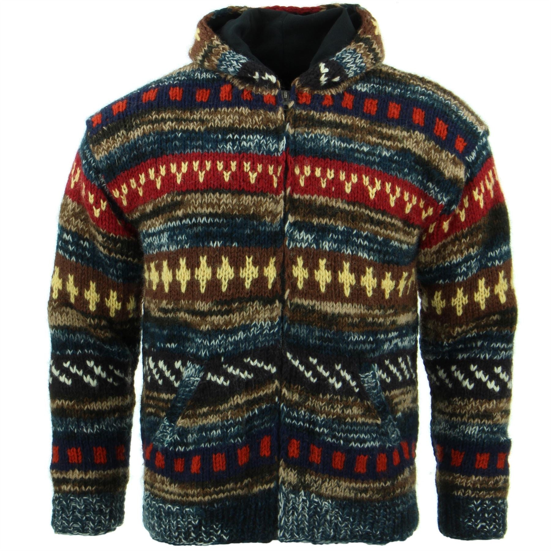 Practical, loose fitting hooded zip jacket with a front pouch pocket, inside pocket, removeable zipped hood and full fleece lining. Made from a chunky wool knit.