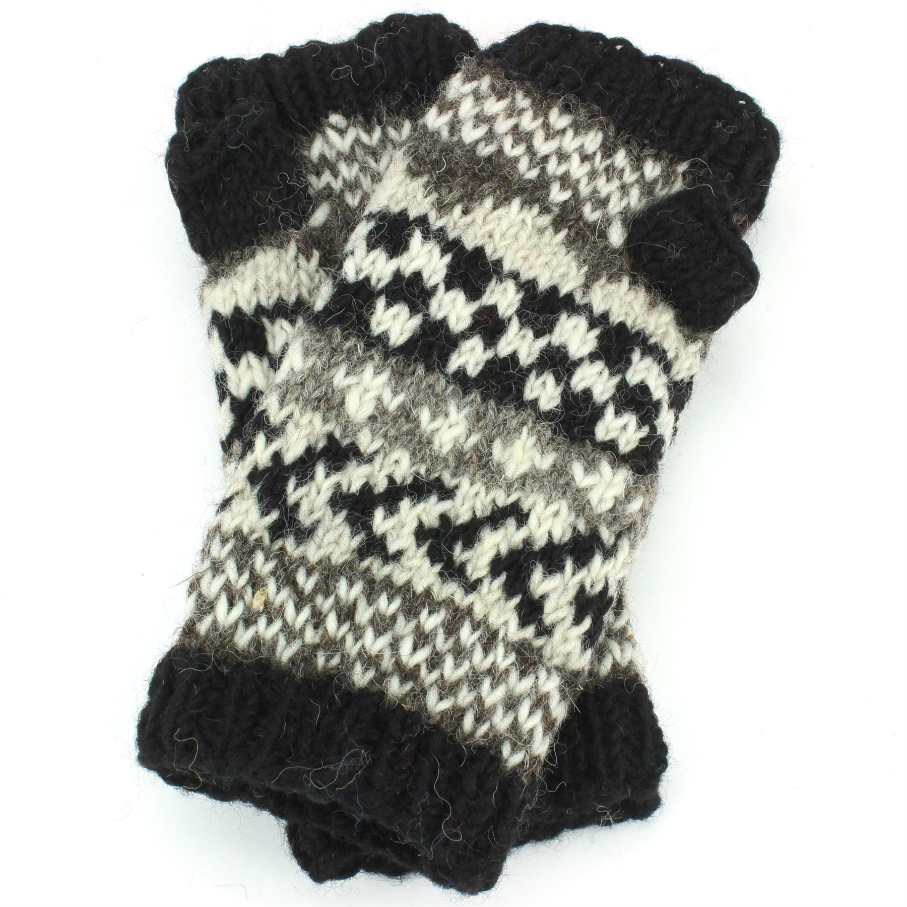 Chunky Wool Knit Arm Warmers - Chevron - Black