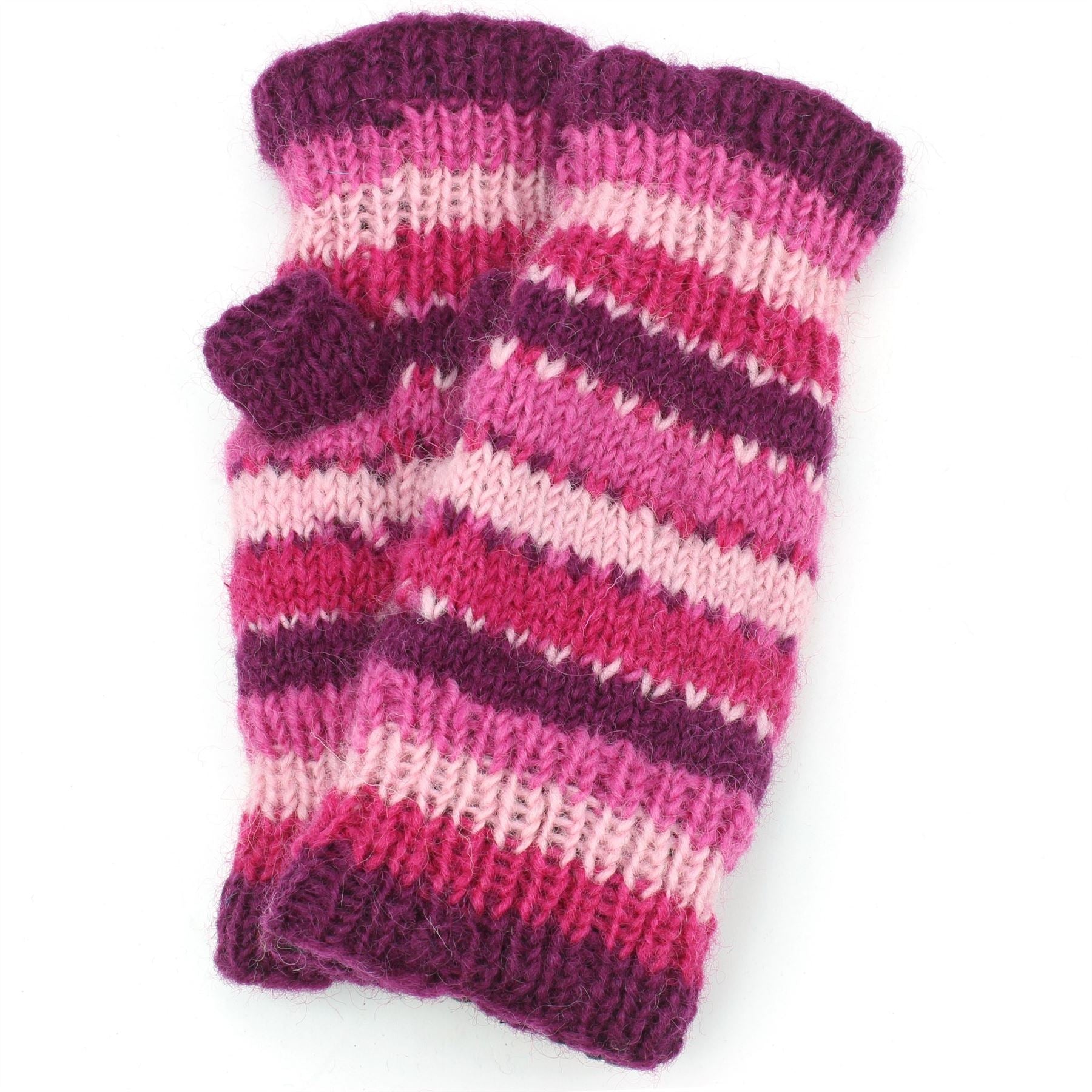 Wool knit arm warmers with a striped design and a lovely warm fleece lining.
