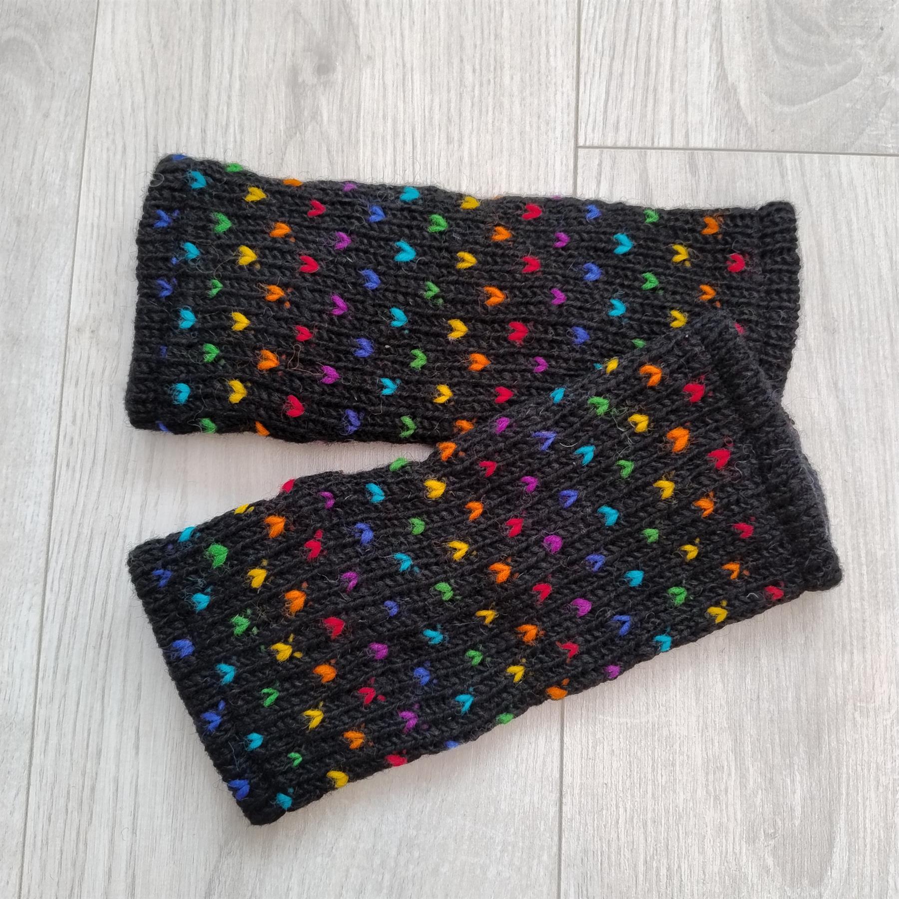 Warm and woolly but certainly not itchy! Made from hand knitted wool on the outside and a soft fleece lining on the inside.