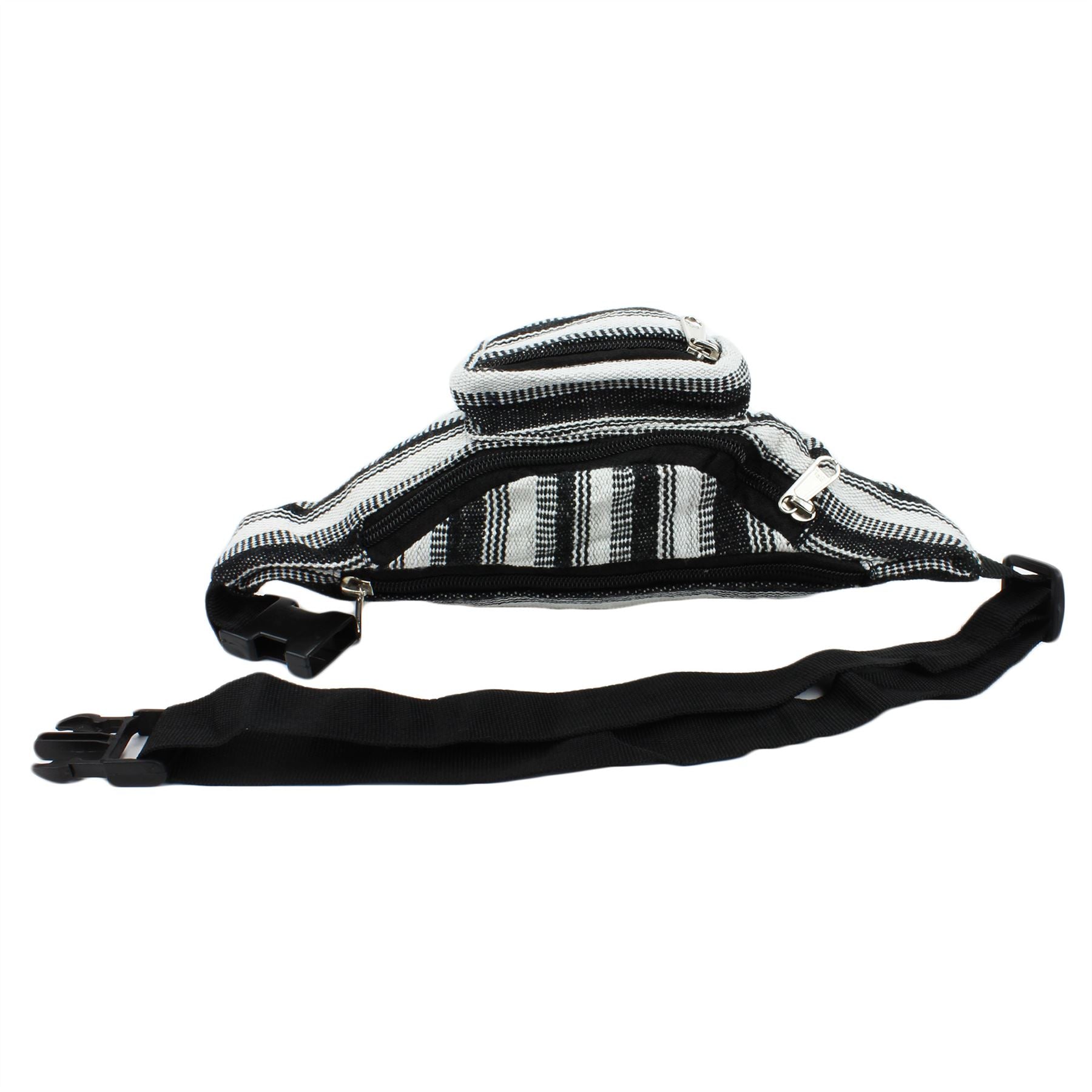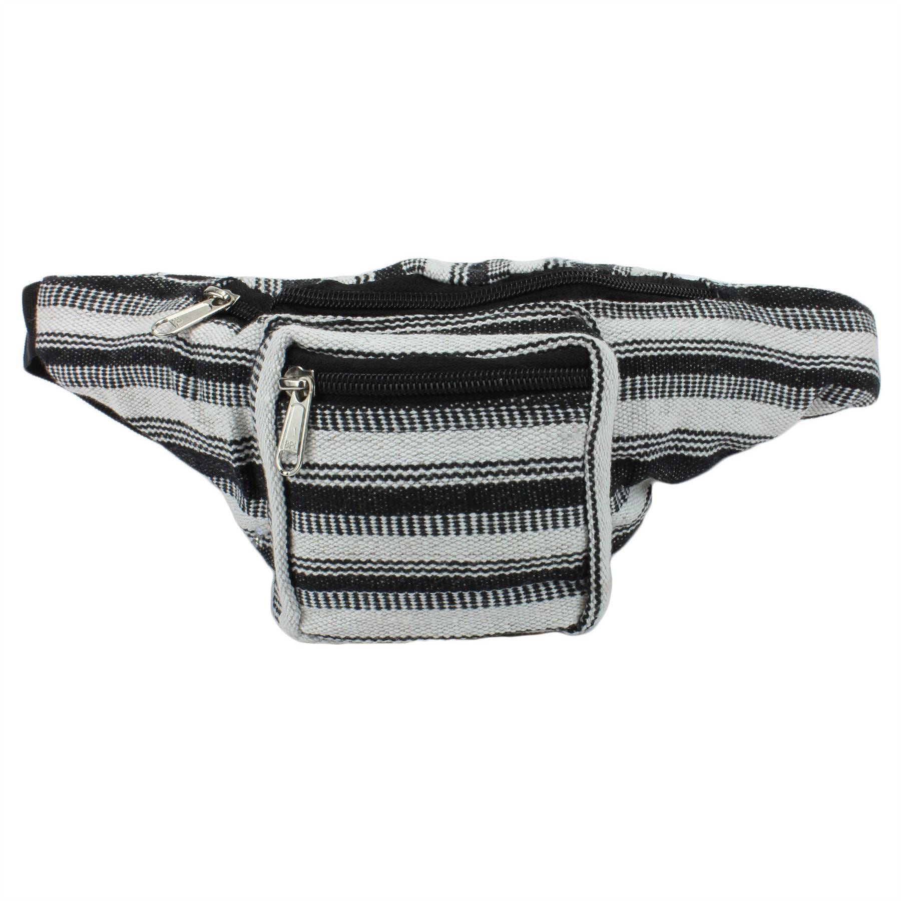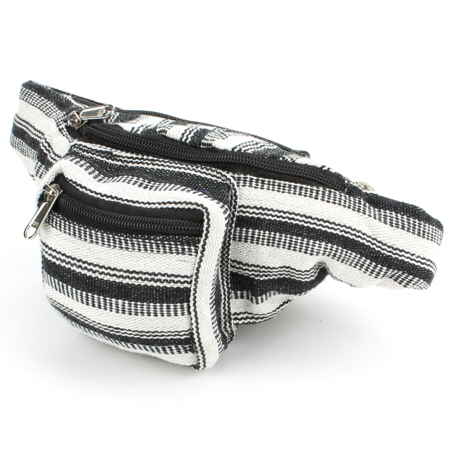 Canvas Bum Bag Money Belt Fanny Pack Black & White
