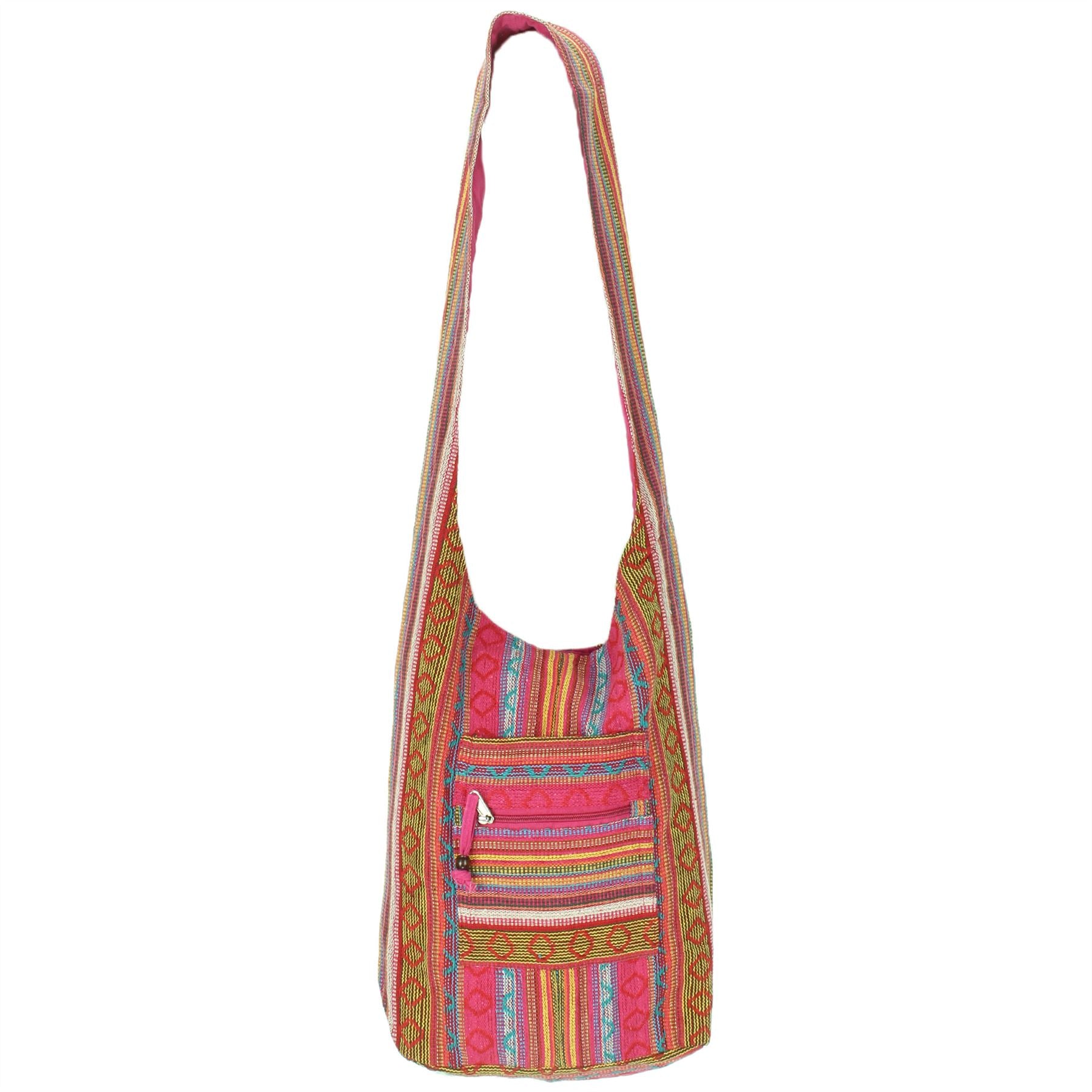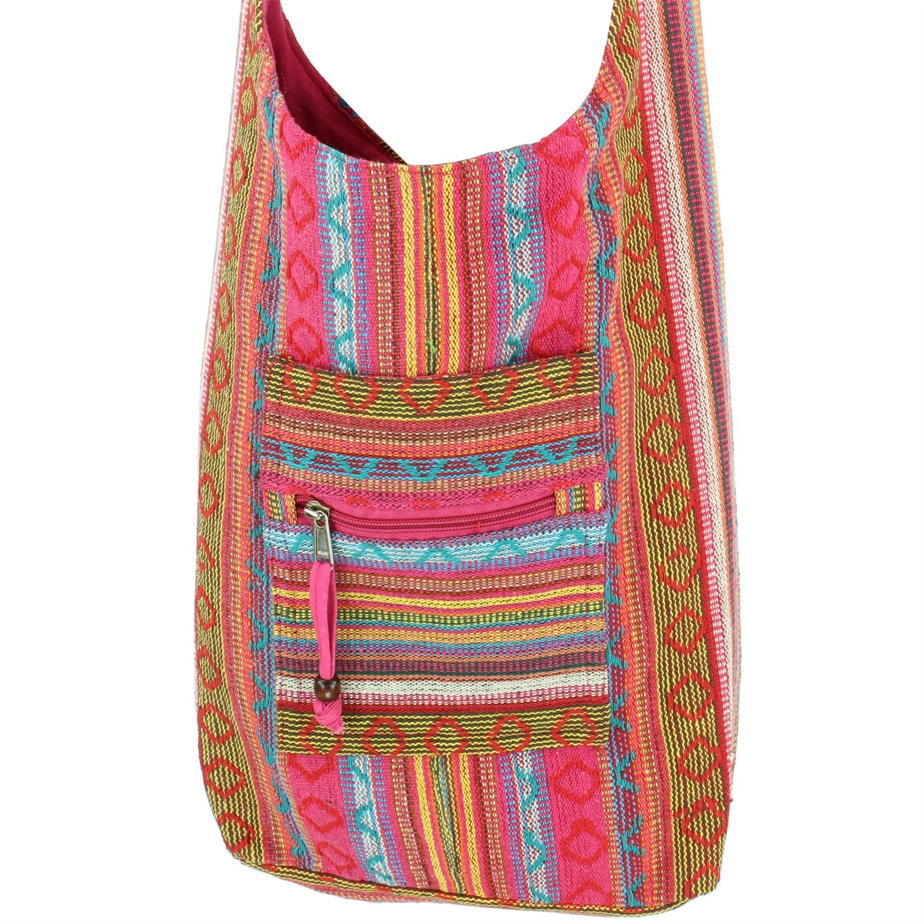 Diamond Pattern Canvas Sling Shoulder Bag - Pink
