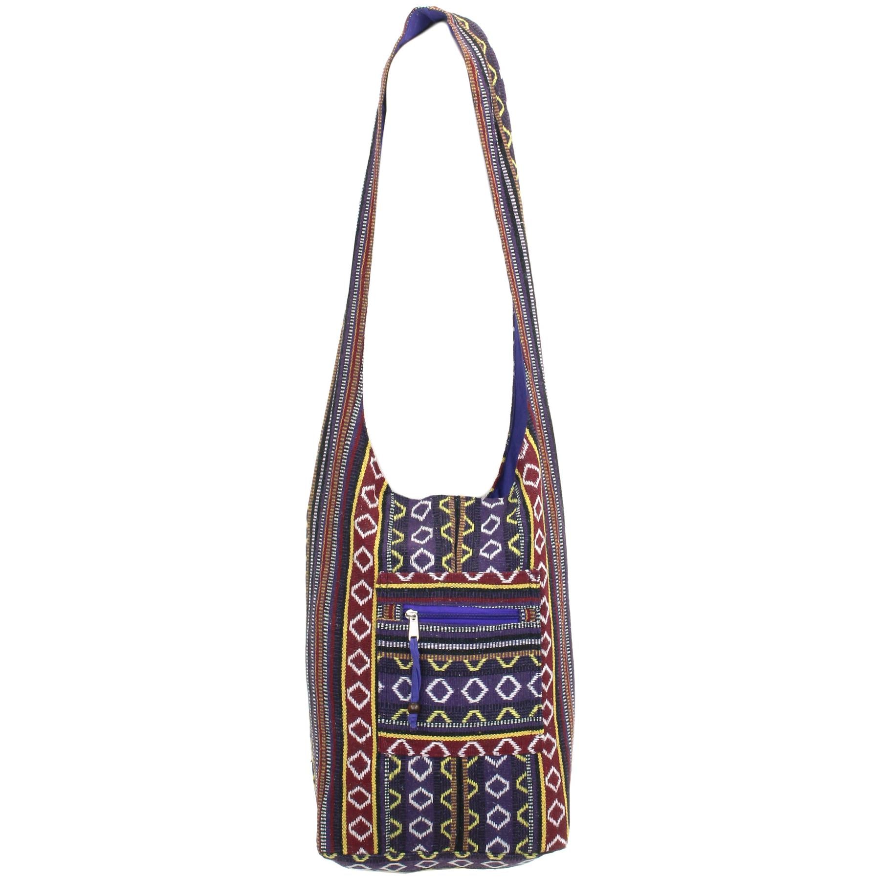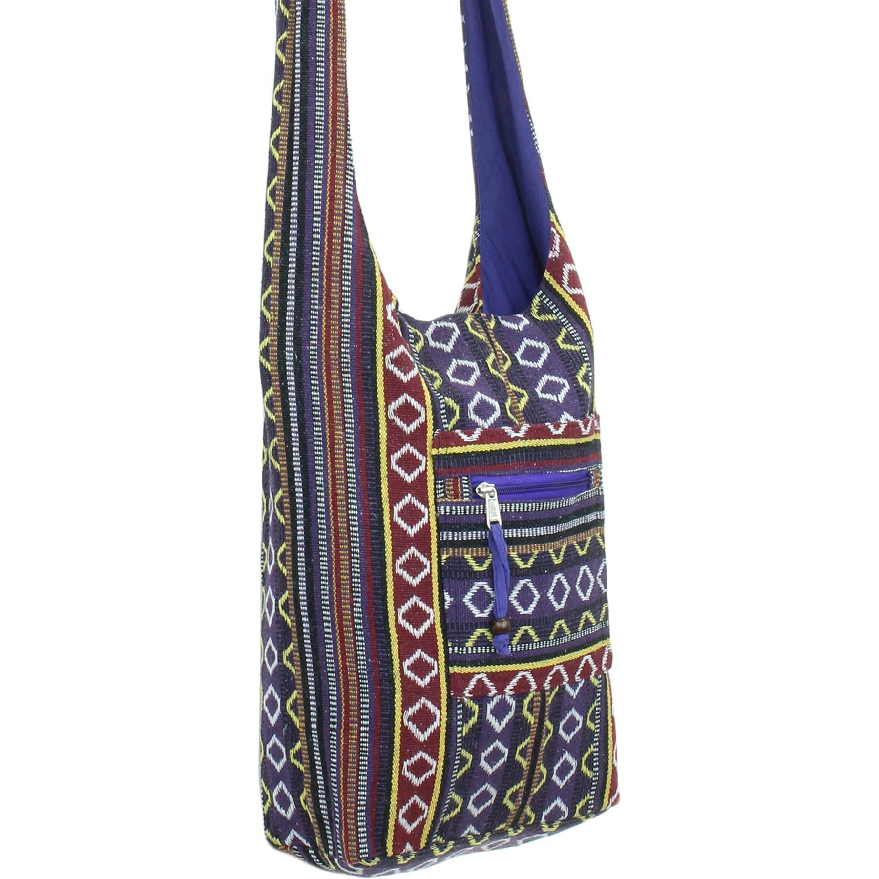 Diamond Pattern Canvas Sling Shoulder Bag - Purple