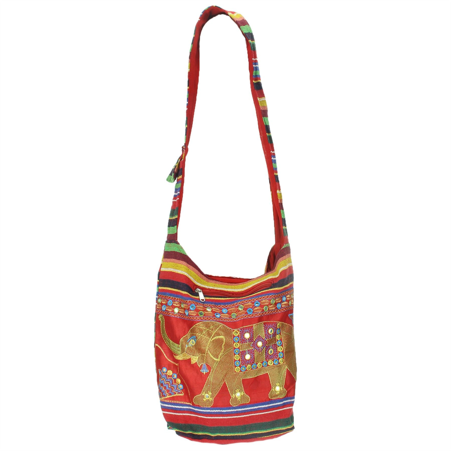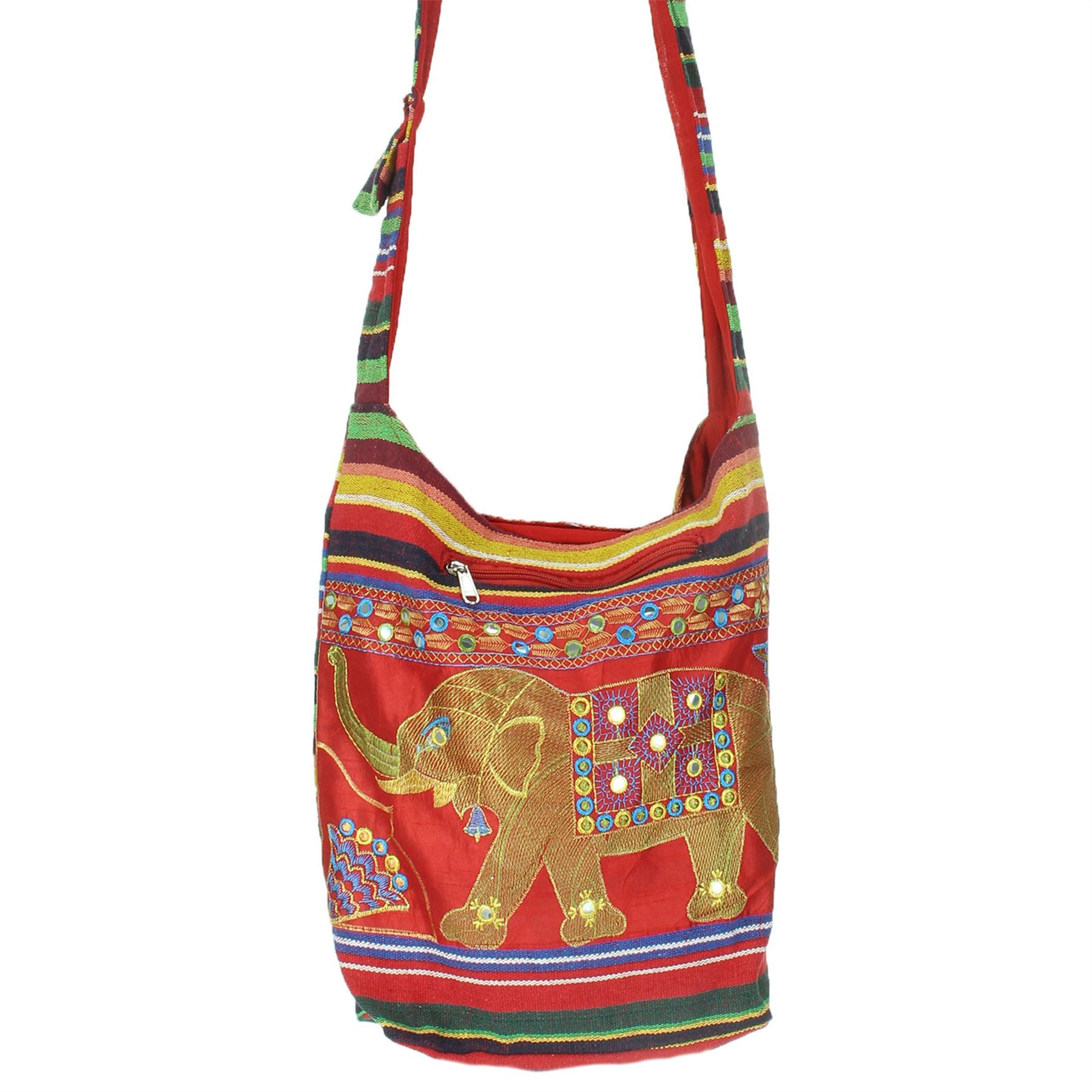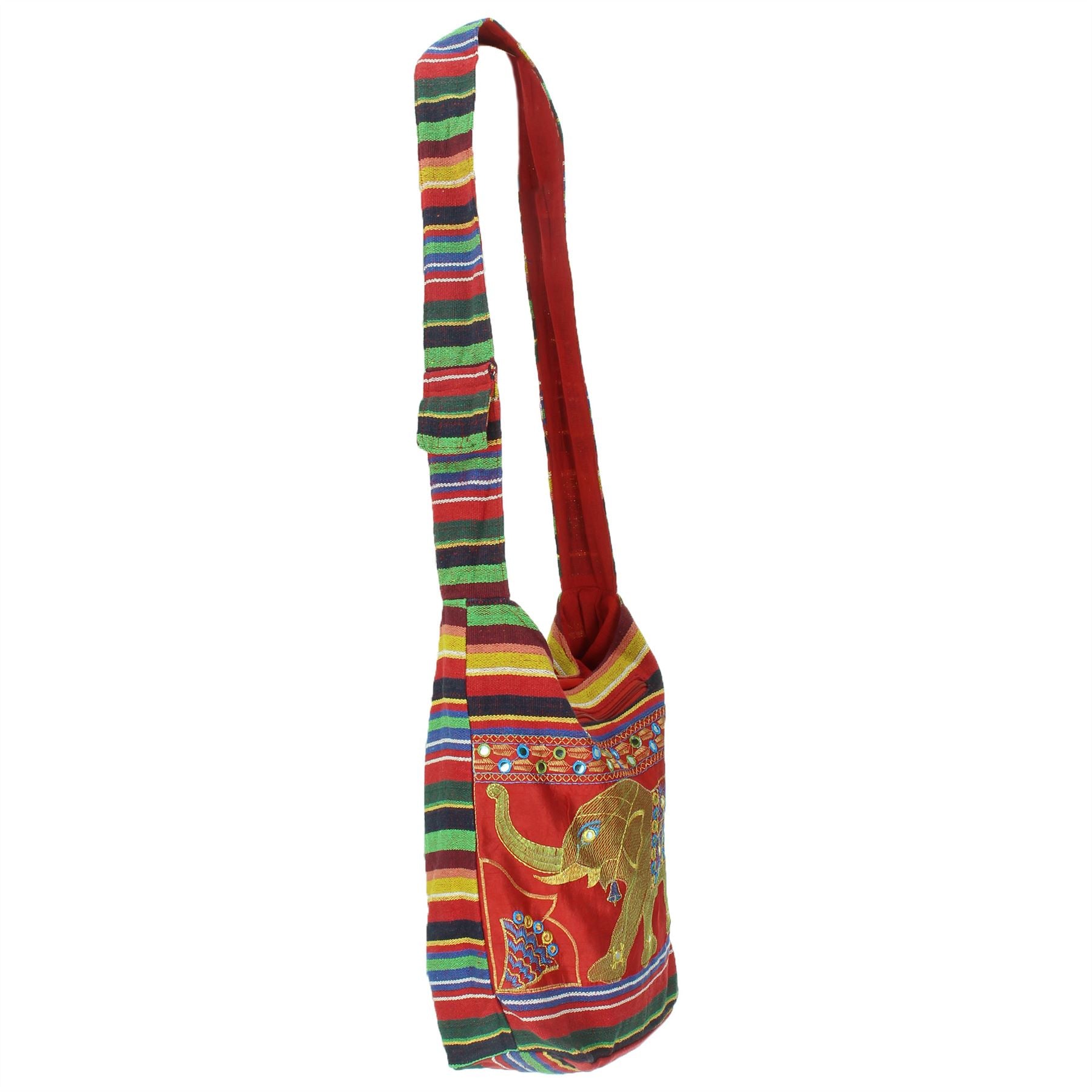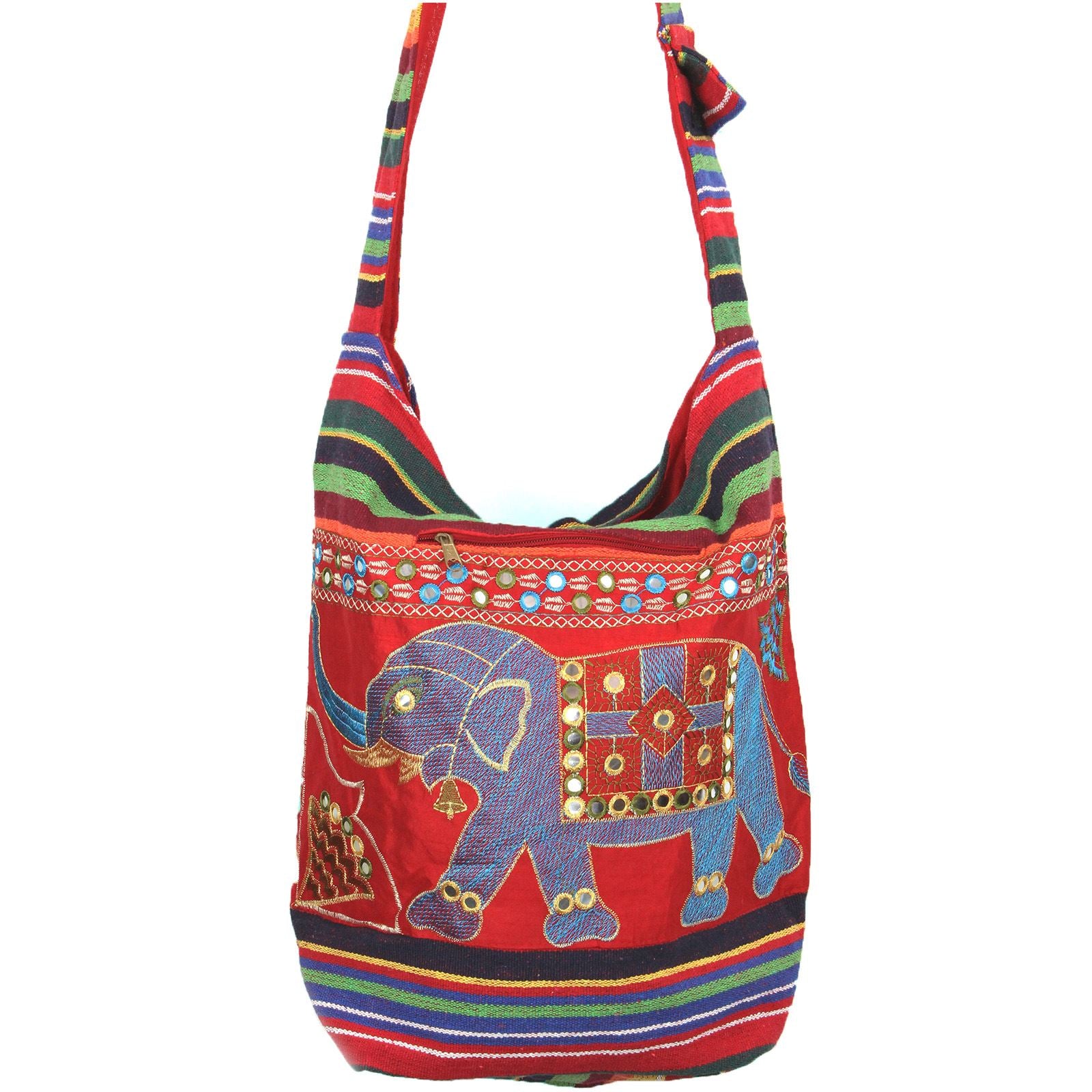 Embroidered Elephant Canvas Sling Shoulder Bag - Red