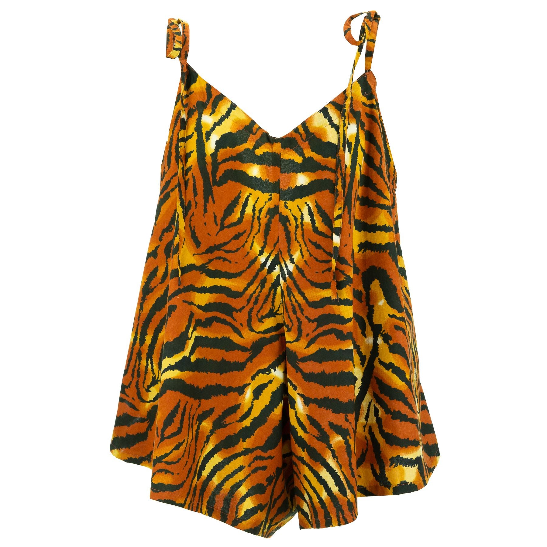 Strappy, cute playsuit, perfect for the beach and can be worn over a bikini. Features spaghetti straps and wide legs.