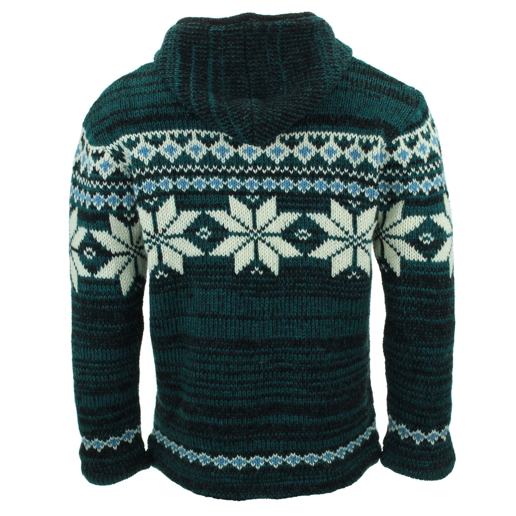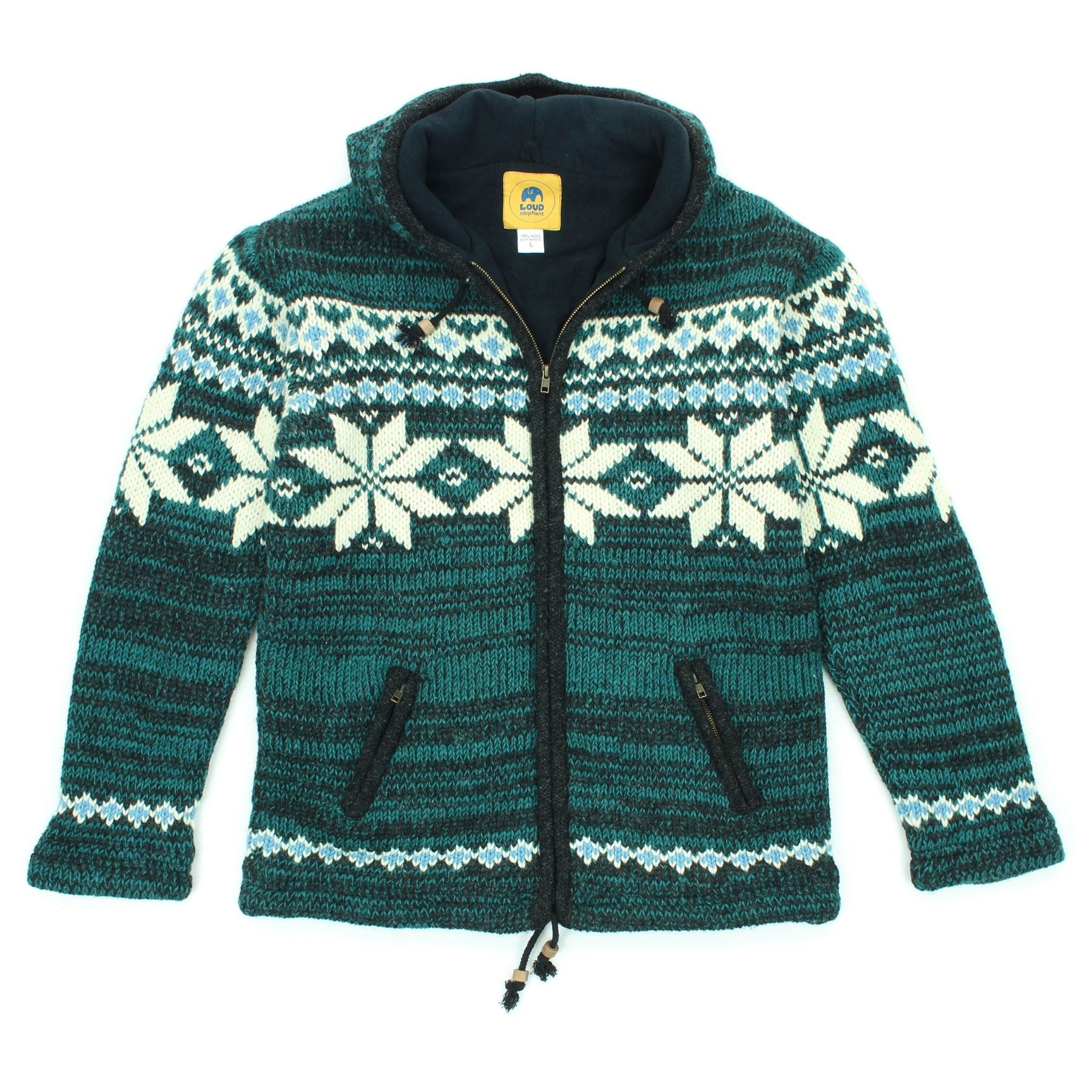 Hand Knitted Wool Hooded Jacket Cardigan - Fairisle Teal