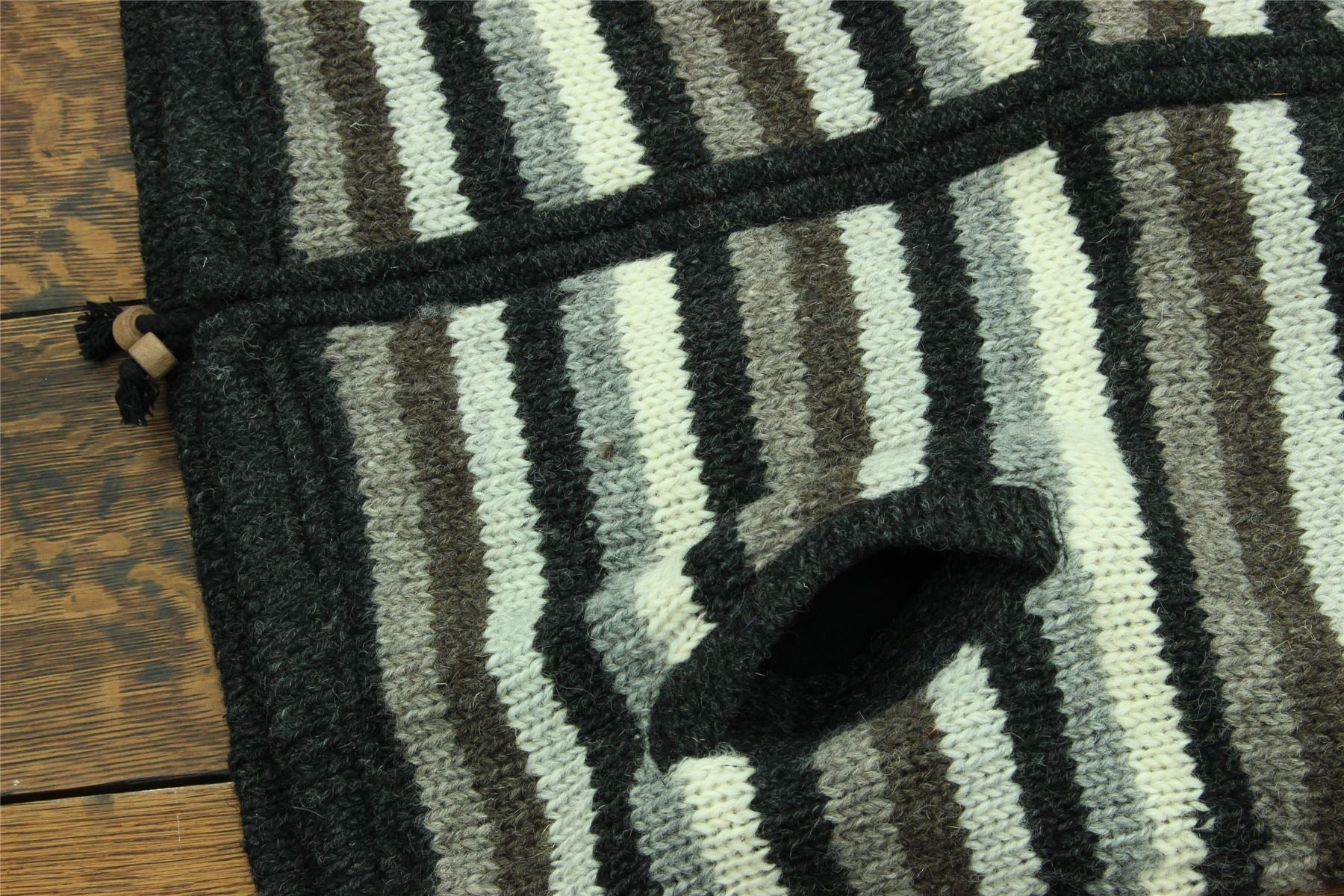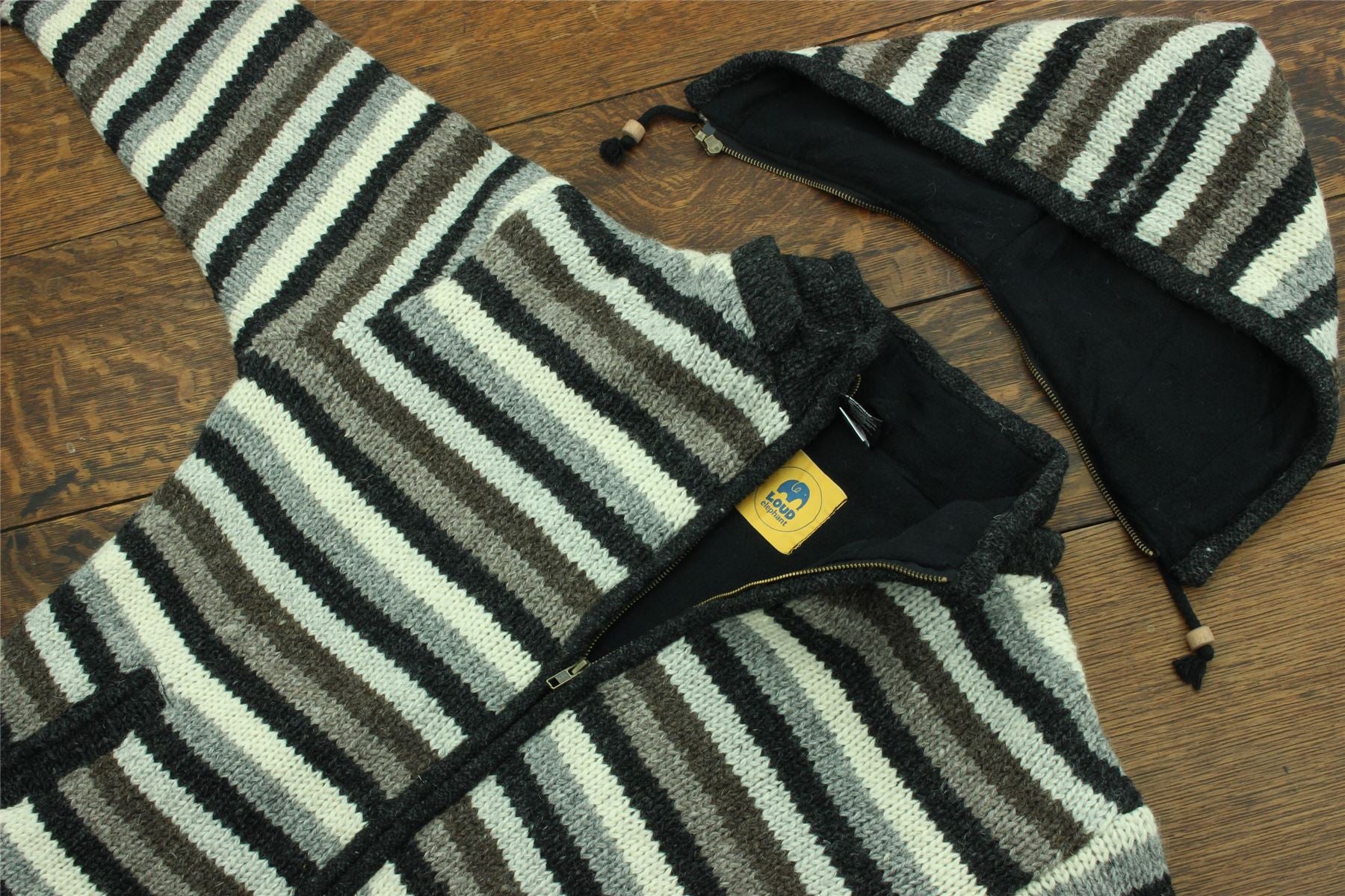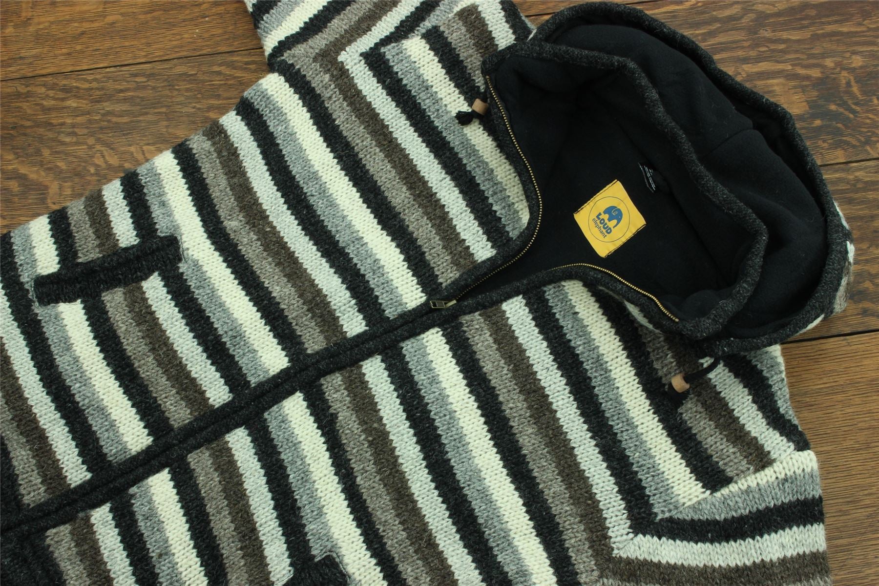 Hand Knitted Wool Hooded Jacket Cardigan - Stripe Natural