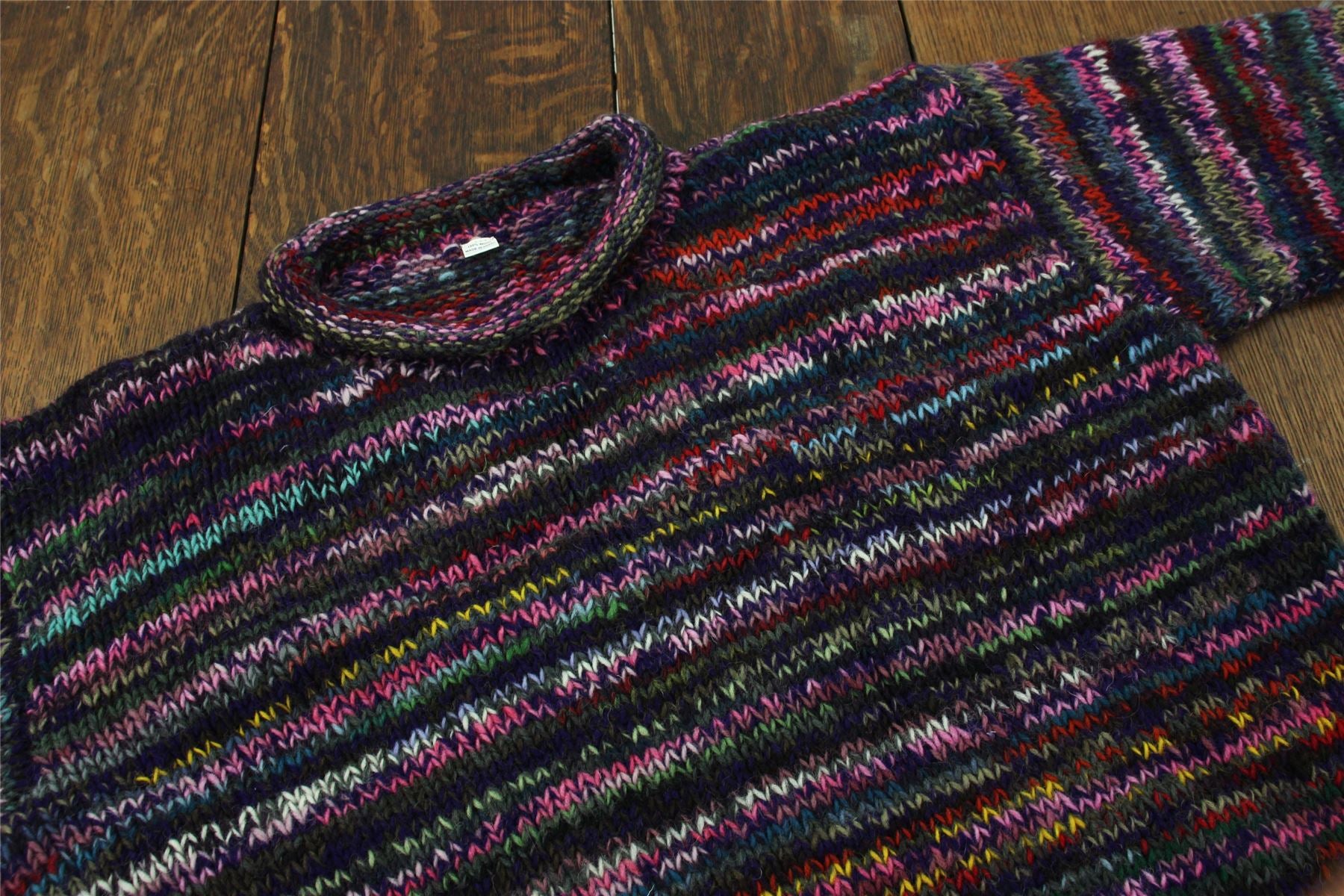 Comfortable and loose, hand-knitted wool jumpers featuring a rolled crew neck and double knit hem and cuffs. A lovely and cosy woolen pullover, perfect for layering up on cold days or just for lounging around the house.