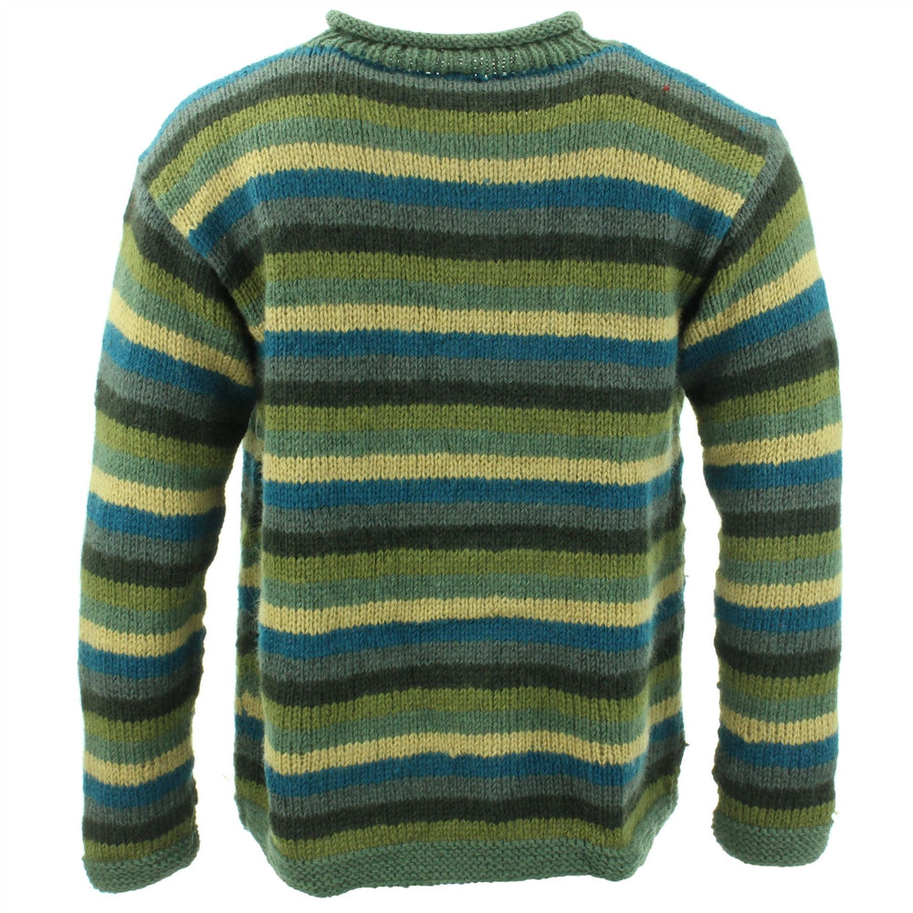 Chunky Wool Knit Jumper - Stripe Green Blue