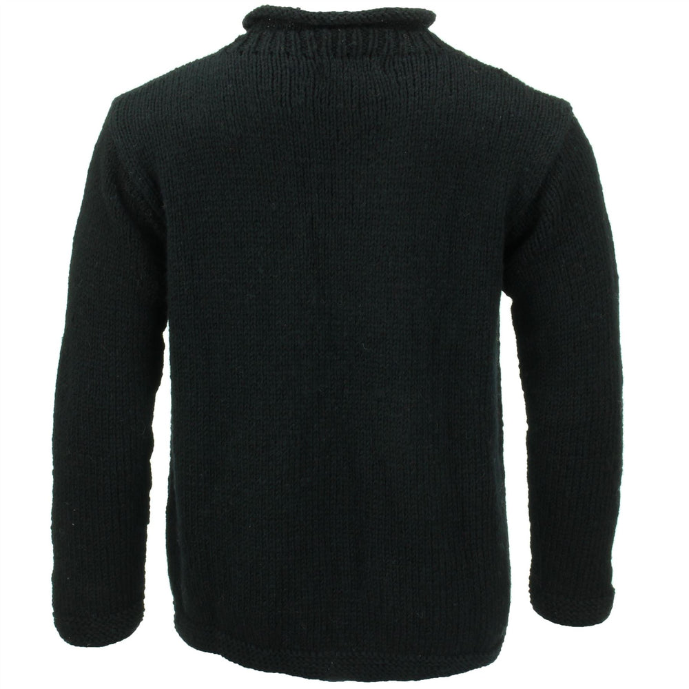 Comfortable and loose, hand-knitted wool jumpers featuring a rolled crew neck and double knit hem and cuffs. A lovely and cosy woollen pullover, perfect for layering up on cold days or just for lounging around the house.