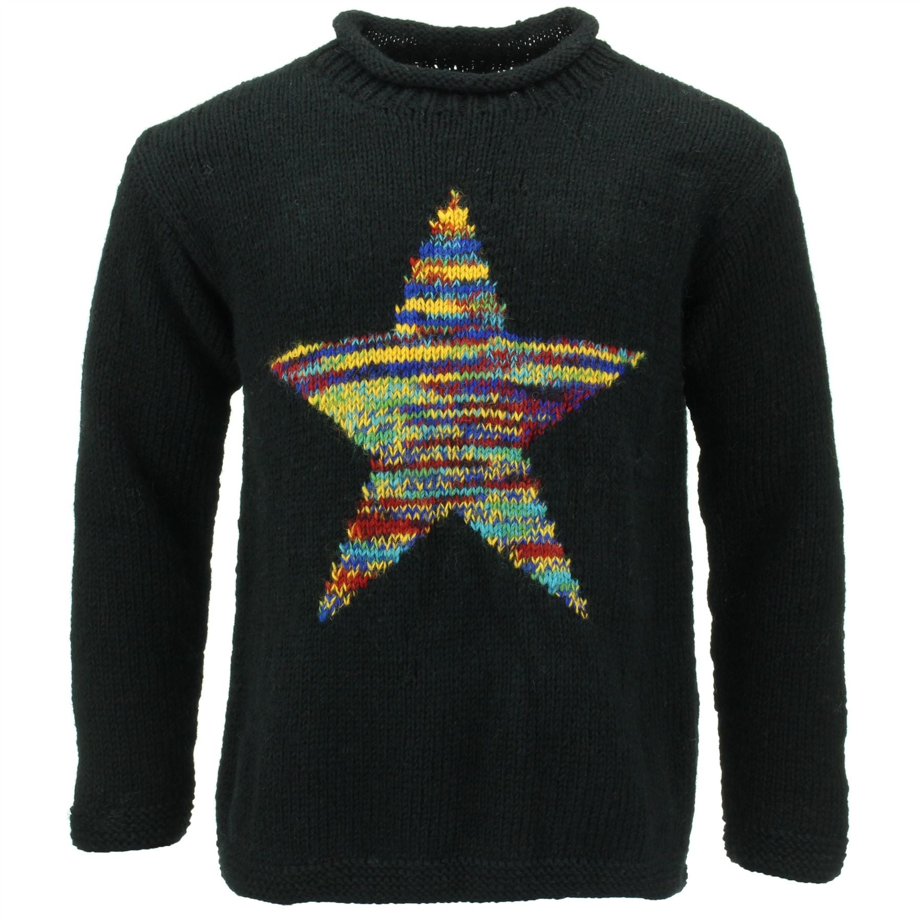 Chunky Wool Knit Star Jumper - Black & Rainbow Space Dye