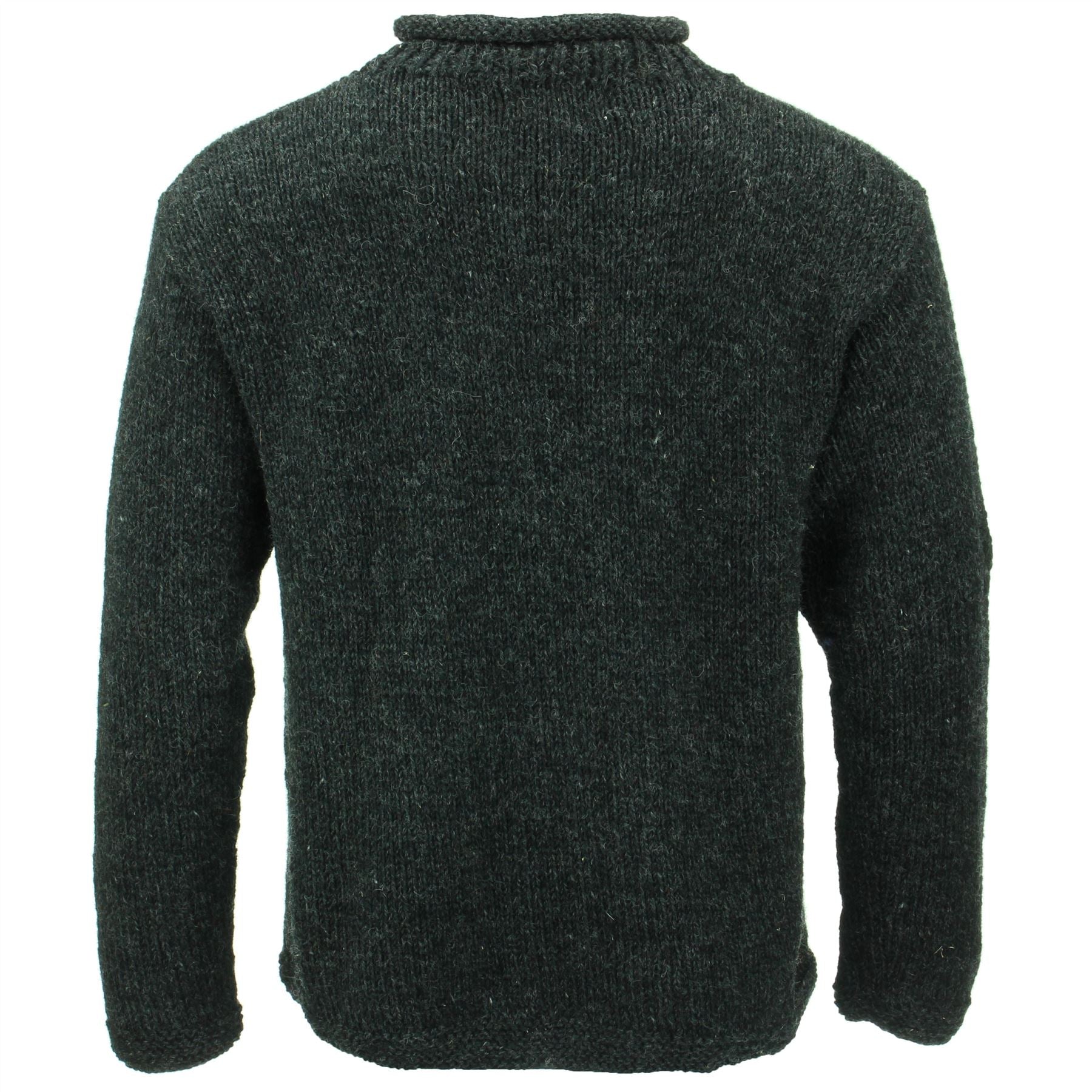 Comfortable and loose, hand-knitted wool jumpers featuring a rolled crew neck and double knit hem and cuffs. A lovely and cosy woollen pullover, perfect for layering up on cold days or just for lounging around the house.