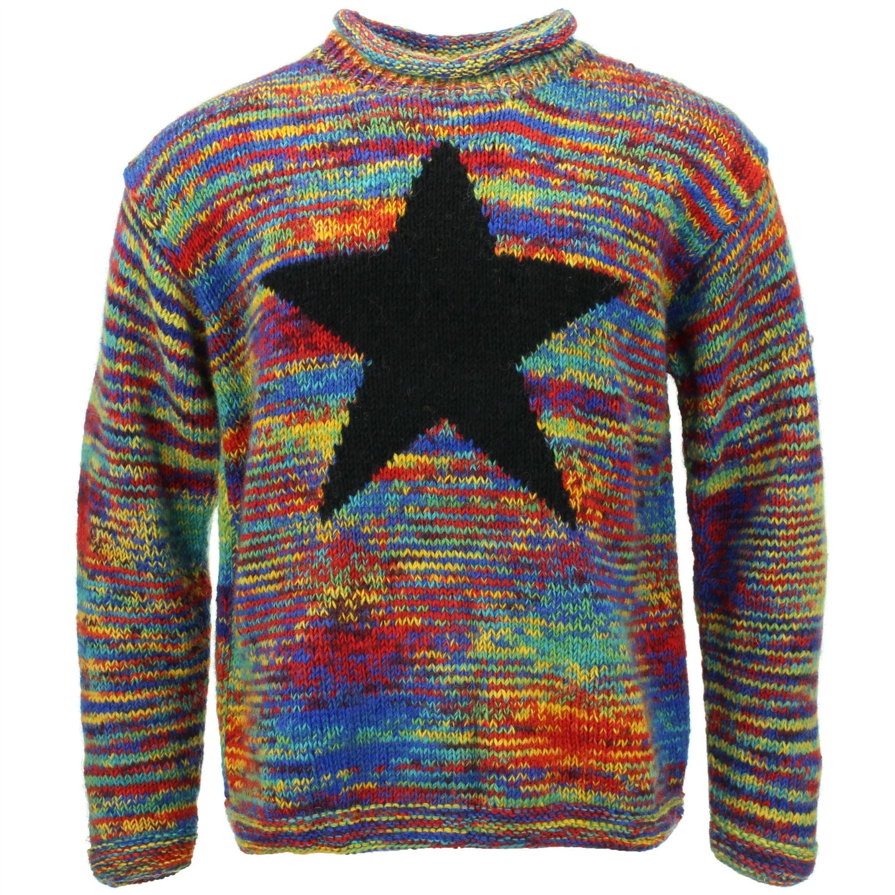 Chunky Wool Knit Star Jumper - Rainbow Space Dye & Black