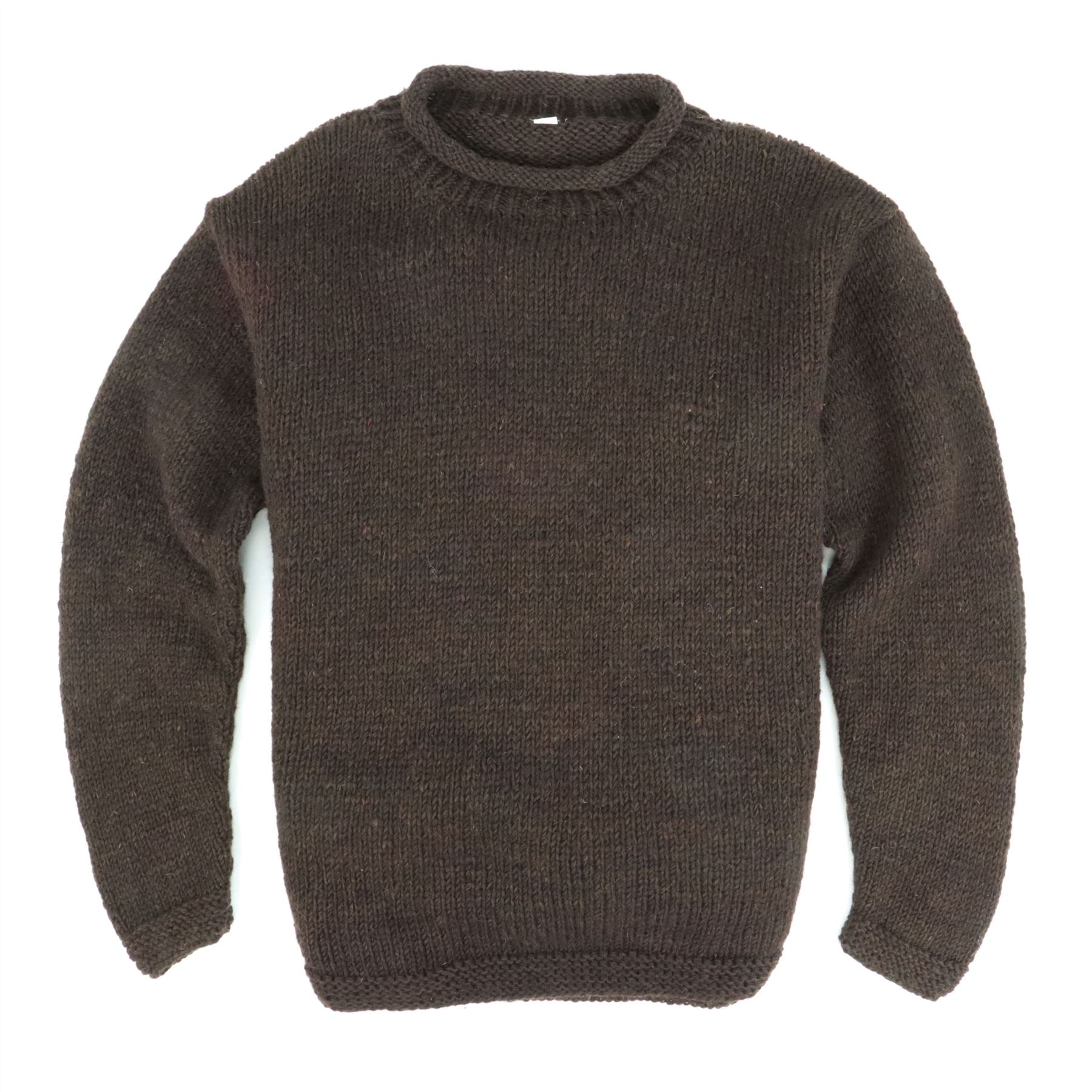 Comfortable and loose hand-knitted wool jumpers featuring a rolled crew neck and double knit hem and cuffs. A lovely and cosy woolen pullover made from high-quality natural wool, it ensures durability, breathability, and warmth for cooler days. Whether you're lounging at home or stepping out, this jumper combines comfort and style in one beautiful garment.