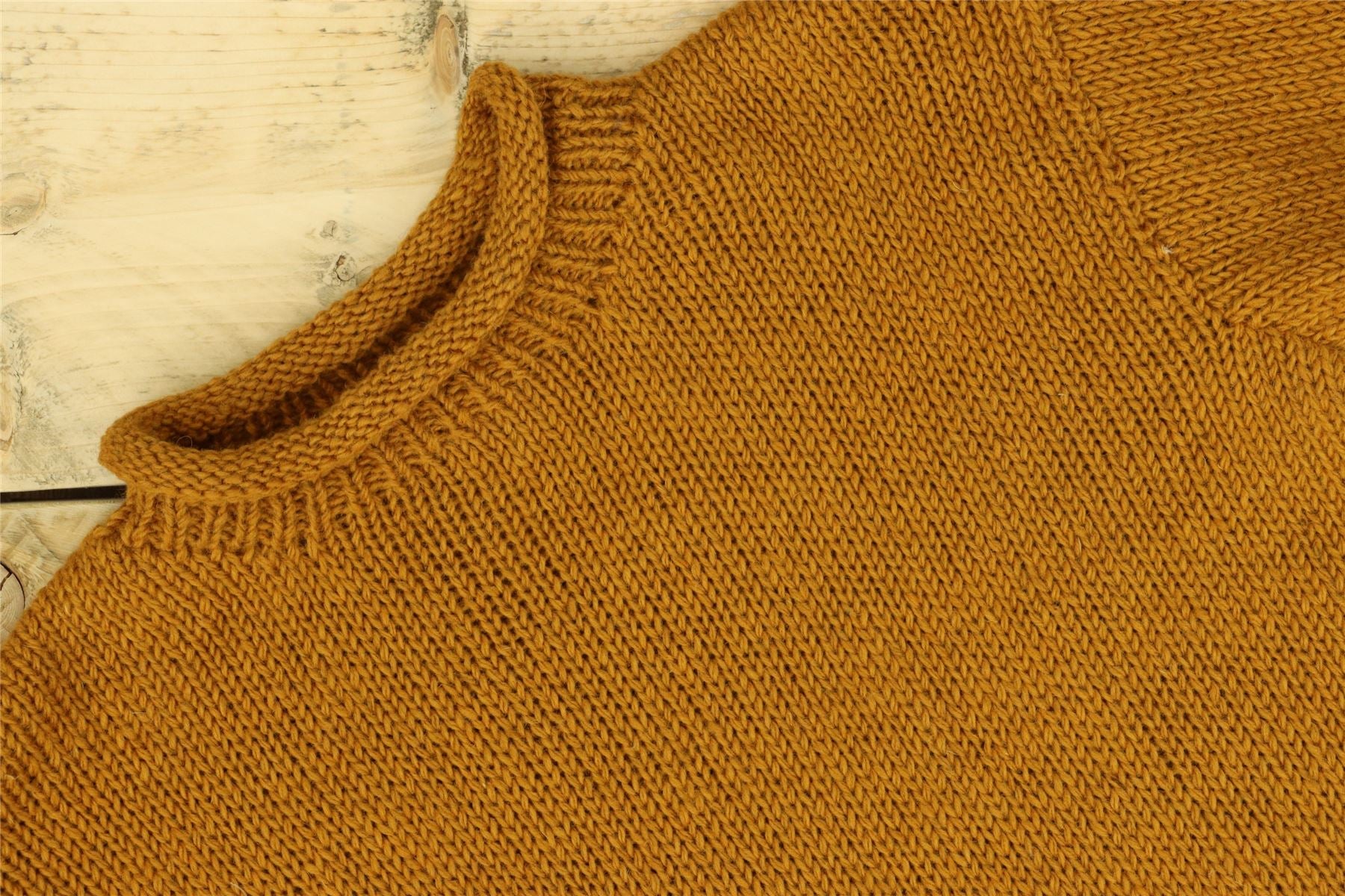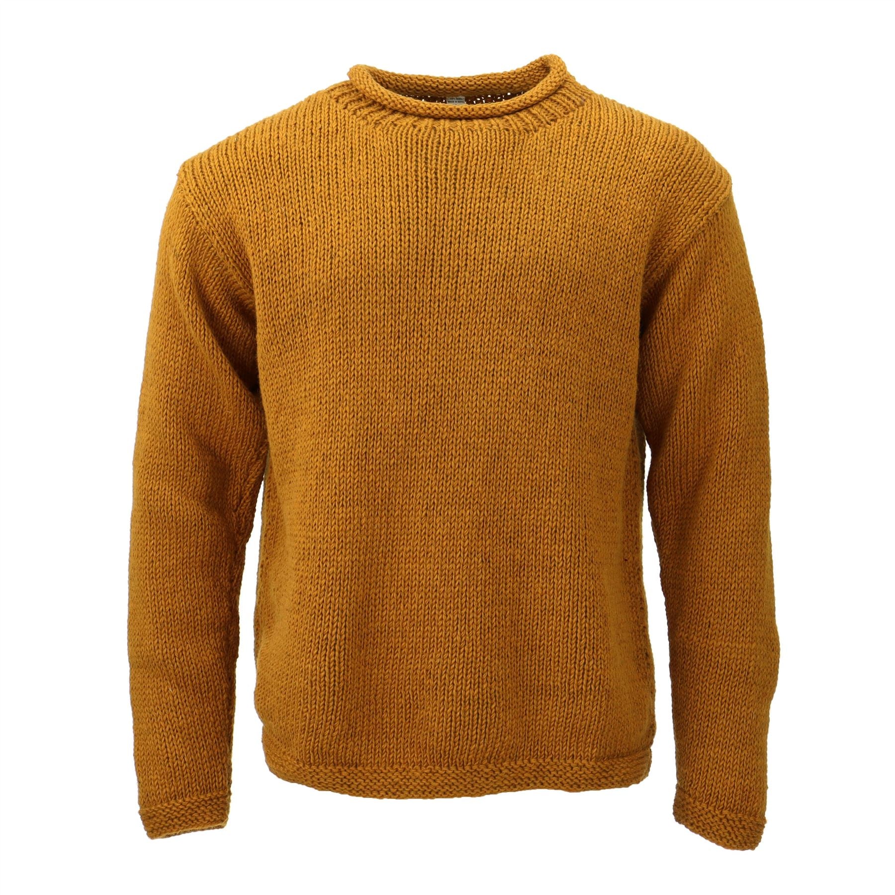 Comfortable and loose hand-knitted wool jumpers featuring a rolled crew neck and double knit hem and cuffs. A lovely and cosy woolen pullover made from high-quality natural wool, it ensures durability, breathability, and warmth for cooler days. Whether you're lounging at home or stepping out, this jumper combines comfort and style in one beautiful garment.