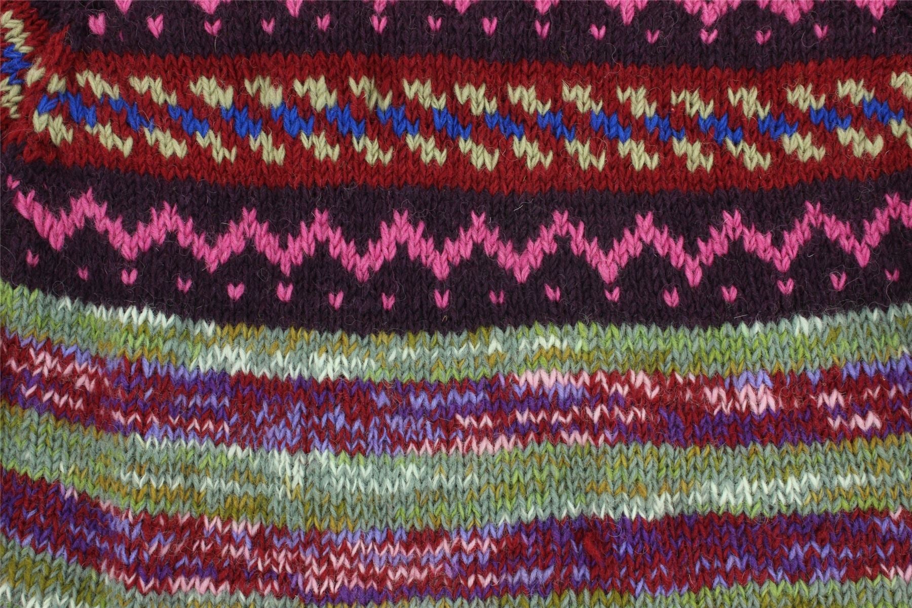 Made from 100% New Zealand sheep's wool and hand crafted in Nepal by artisans living and working in remote areas of the Kathmandu Valley, the wool is brought to the villages so that the knitters can maintain their close knit families and communities rather than going away to work in Kathmandu for large portions of the year.
