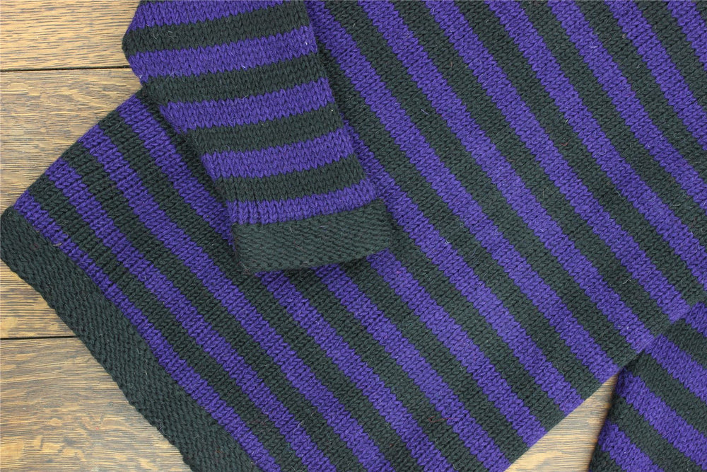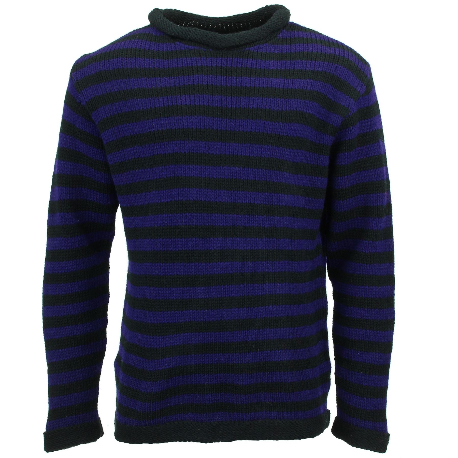 Hand Knitted Wool Jumper - Stripe Purple Black