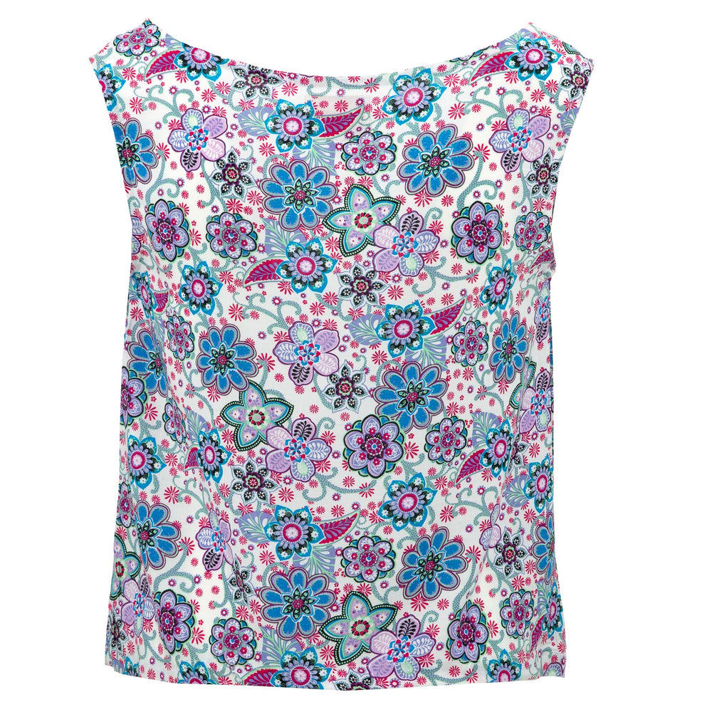 Longer at the back, this top is sleeveless and looks equally good with jeans, trousers, shorts or a skirt. A versatile style in a varirty of exciting prints.