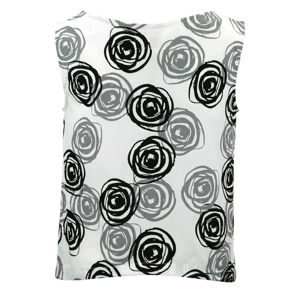 Longer at the back, this top is sleeveless and looks equally good with jeans, trousers, shorts or a skirt. A versatile style in a varirty of exciting prints.