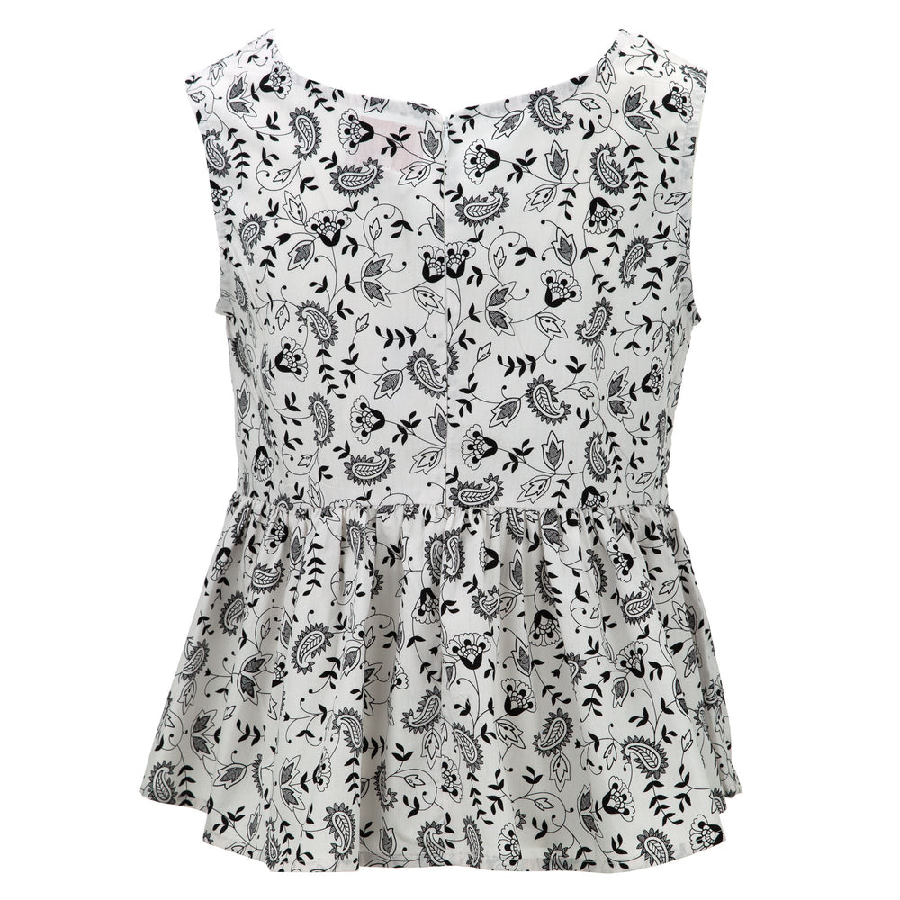 Ruched Box Top - White Paisley Flower