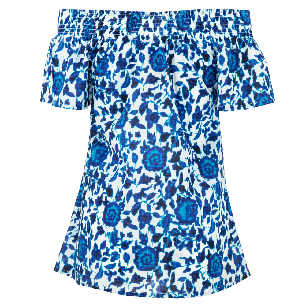 Our most versatile top has a shirred neckline and can be worn or off the shoulder. Looks great with shorts, a skirt or trousers.