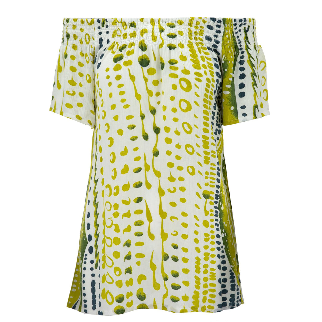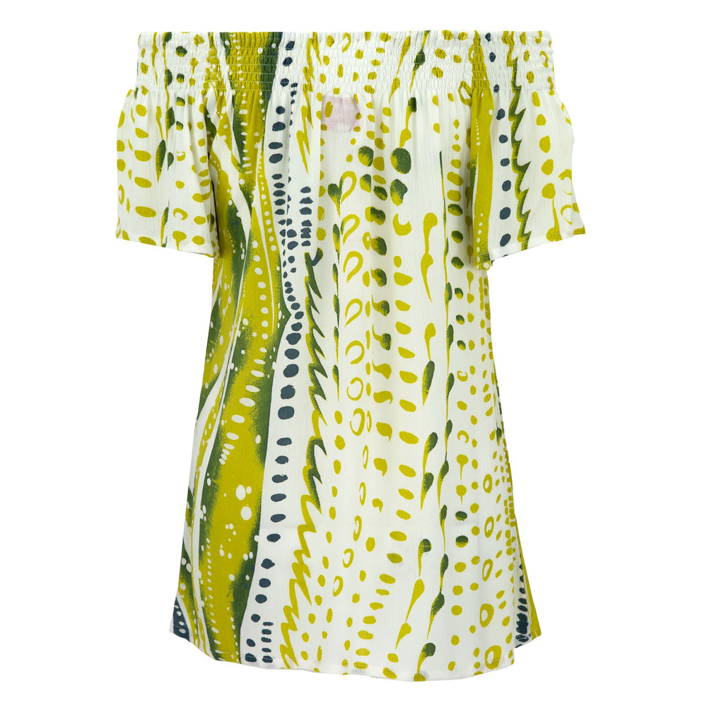 Our most versatile top has a shirred neckline and can be worn or off the shoulder. Looks great with shorts, a skirt or trousers.