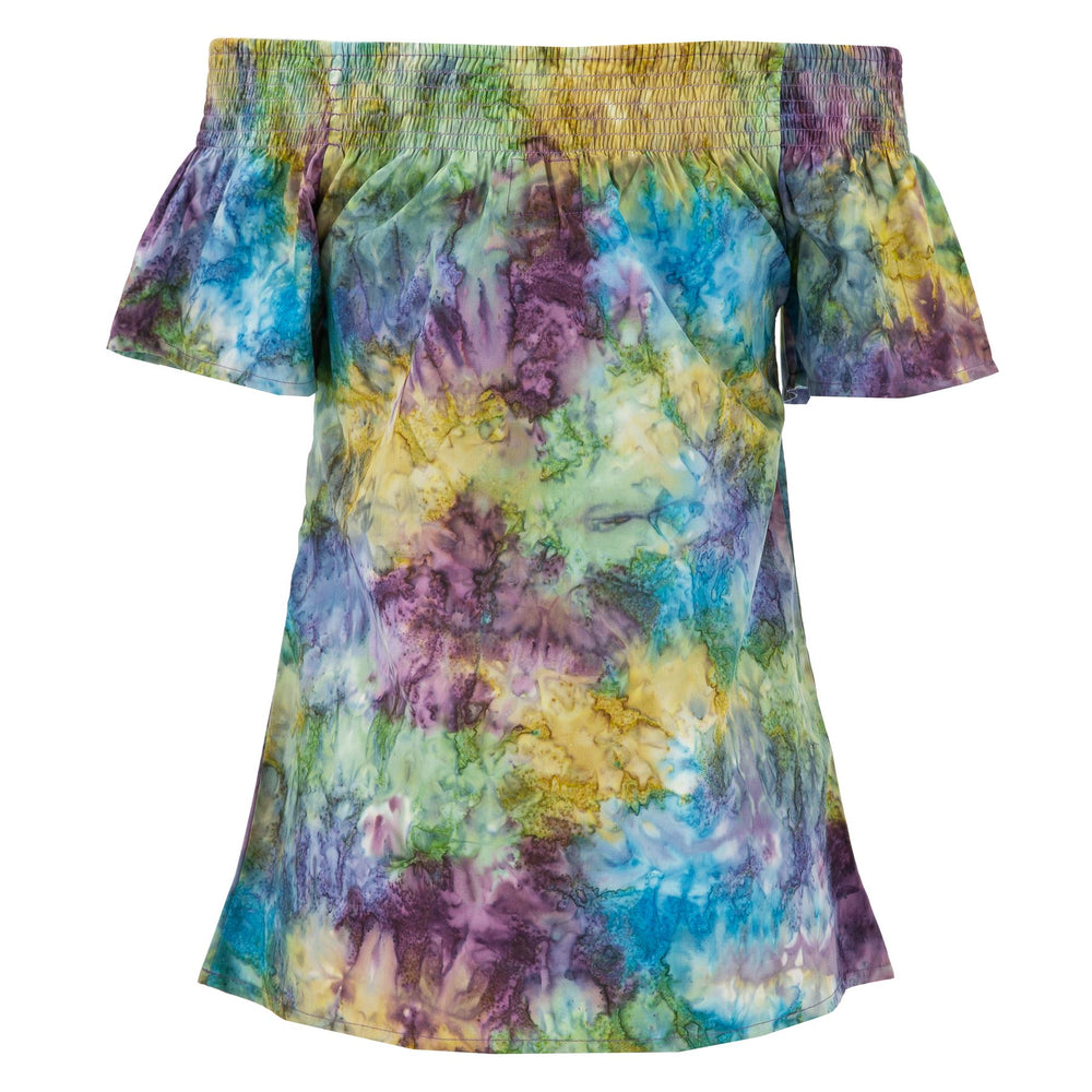 Our most versatile top has a shirred neckline and can be worn or off the shoulder. Looks great with shorts, a skirt or trousers.