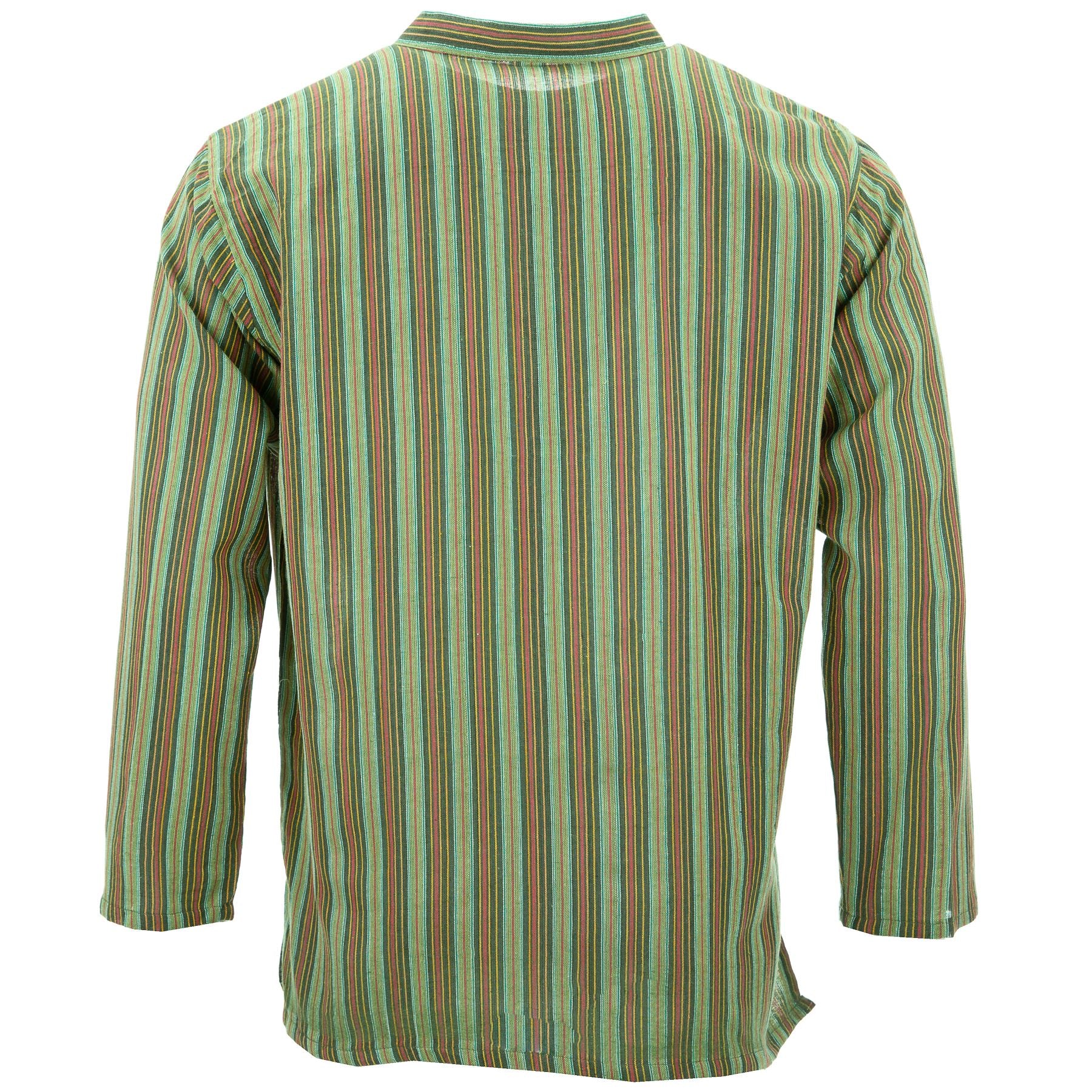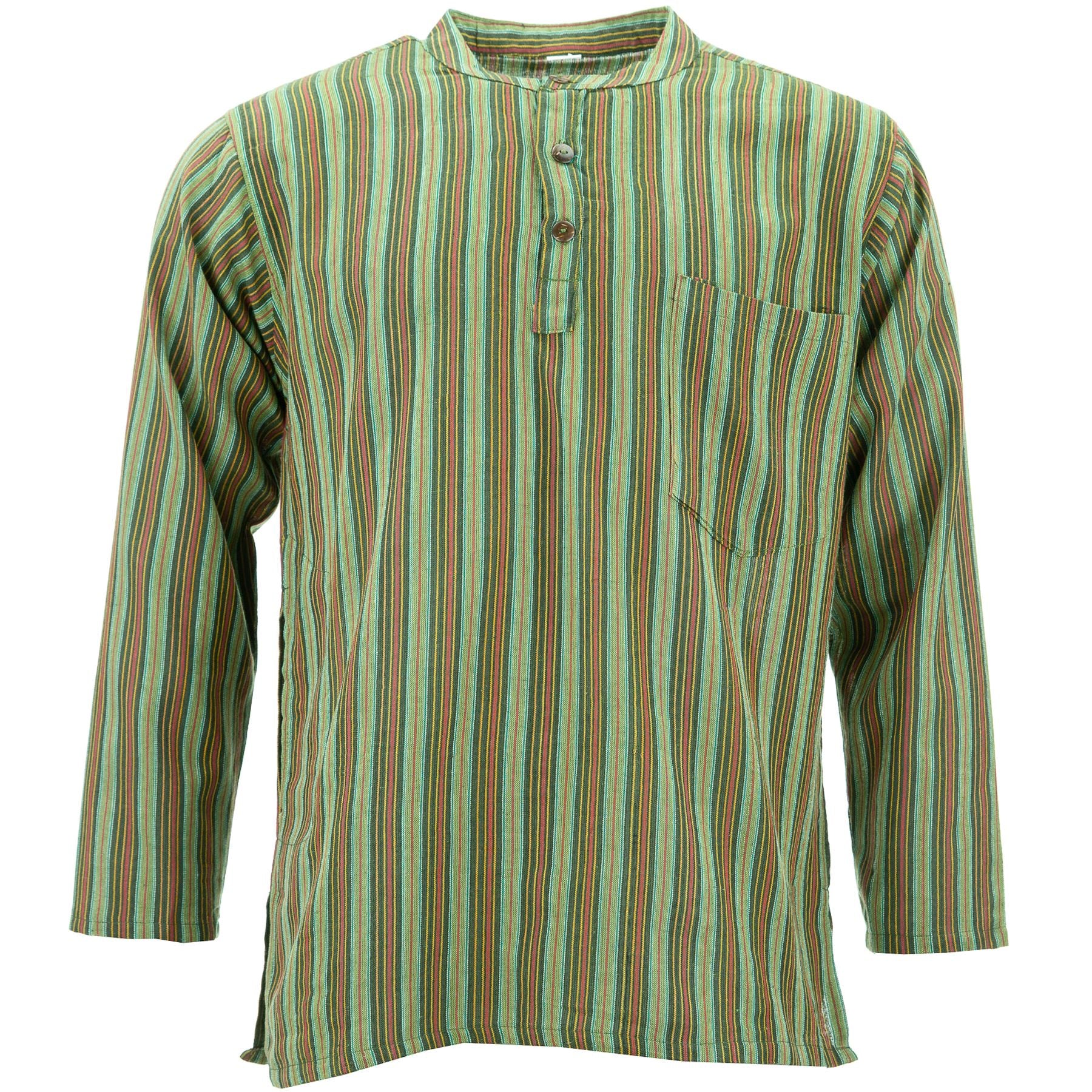 This shirt is crafted from lightweight cotton and features a grandad collar, long sleeves, a chest pocket, and a side seam pocket. The neckline is secured with buttons made from natural coconut wood.