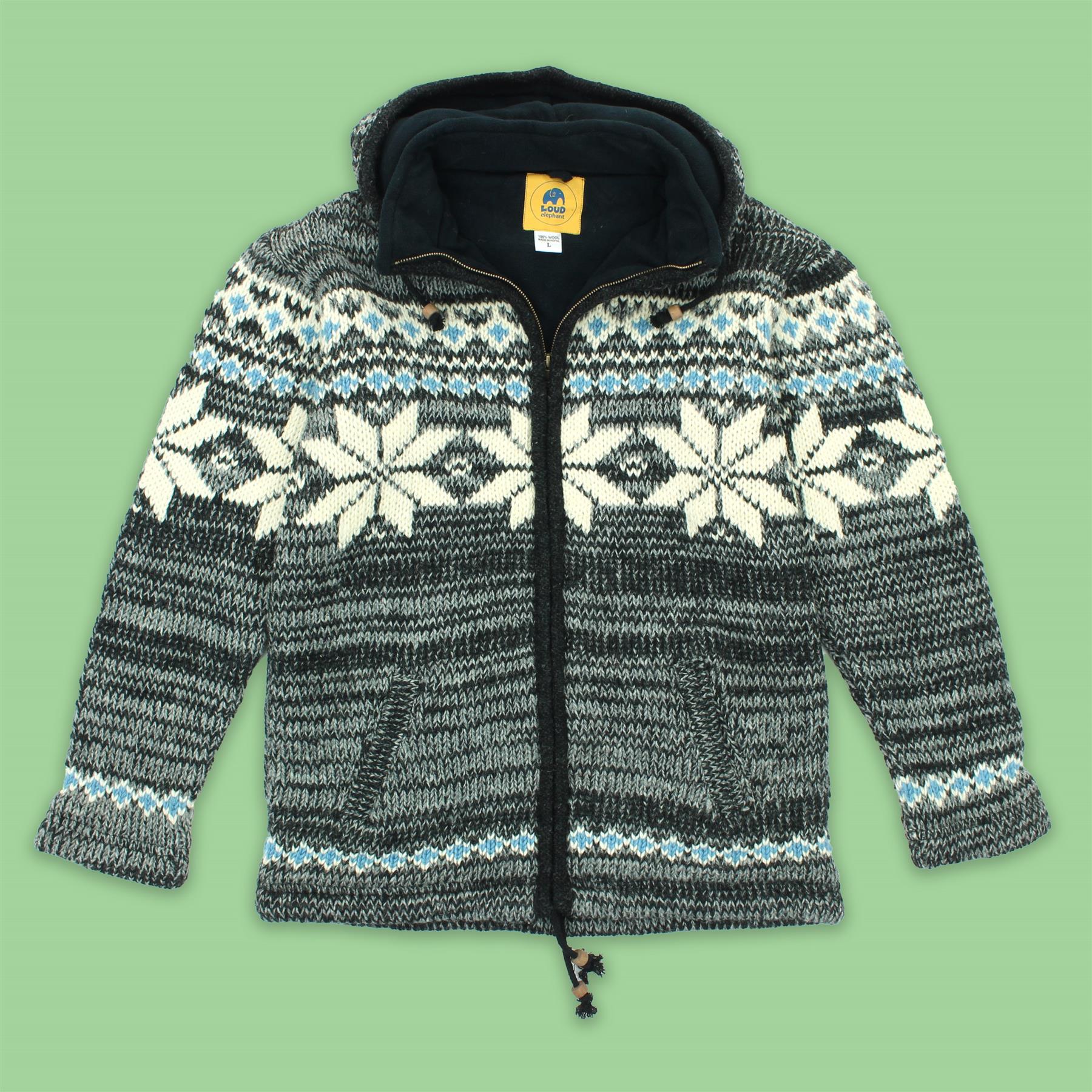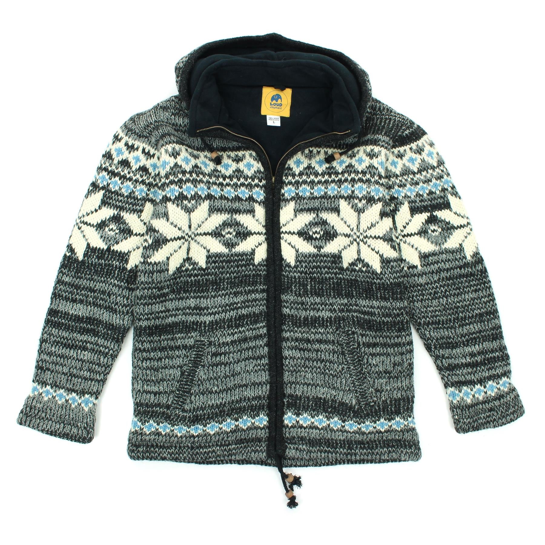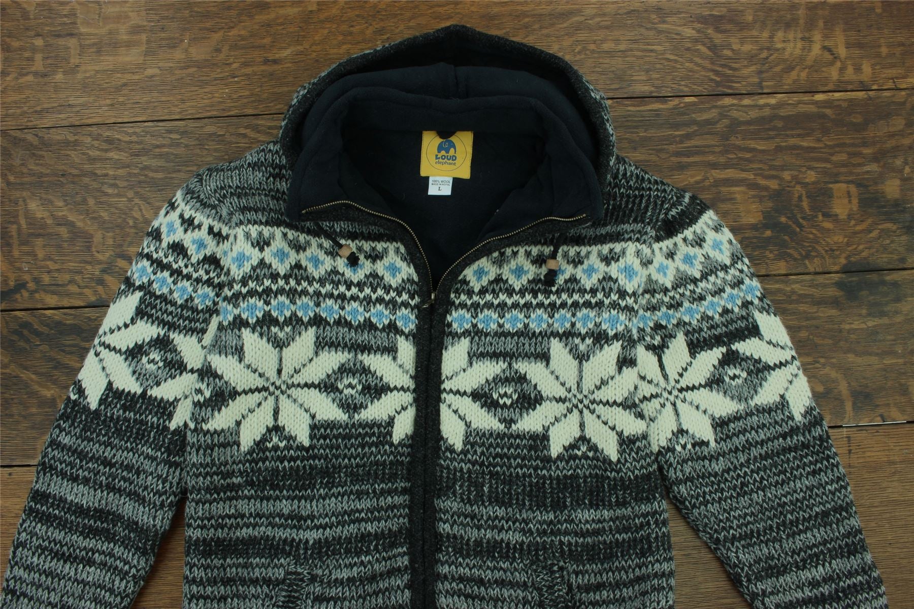 Hand Knitted Wool Hooded Jacket Cardigan - Fairisle Grey
