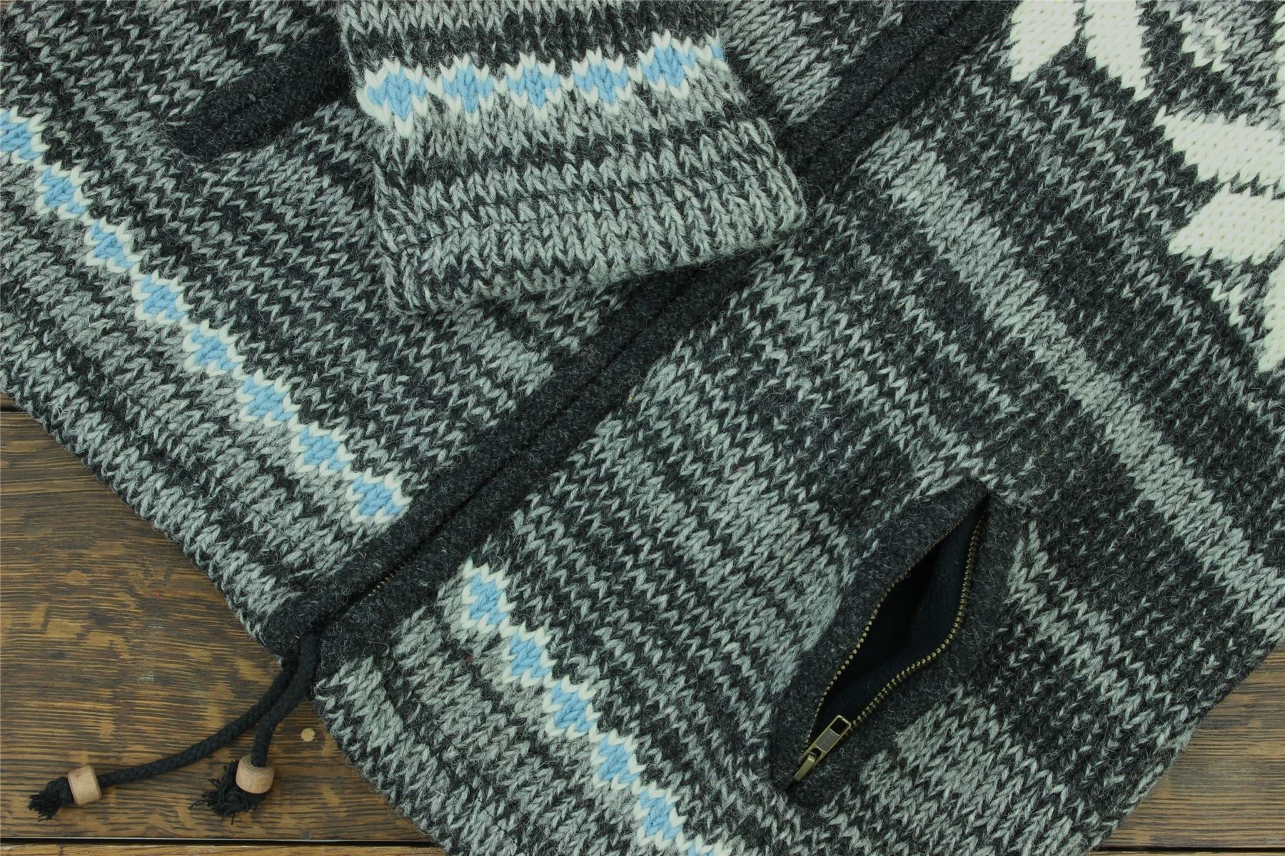 Handmade wool knit hooded zip jacket with a warm fleece lining, zip side pockets, and an inside pocket. A practical hoodie cardigan, great for laying up throughout the colder months and keeping warm around the fire during cool summer evenings.