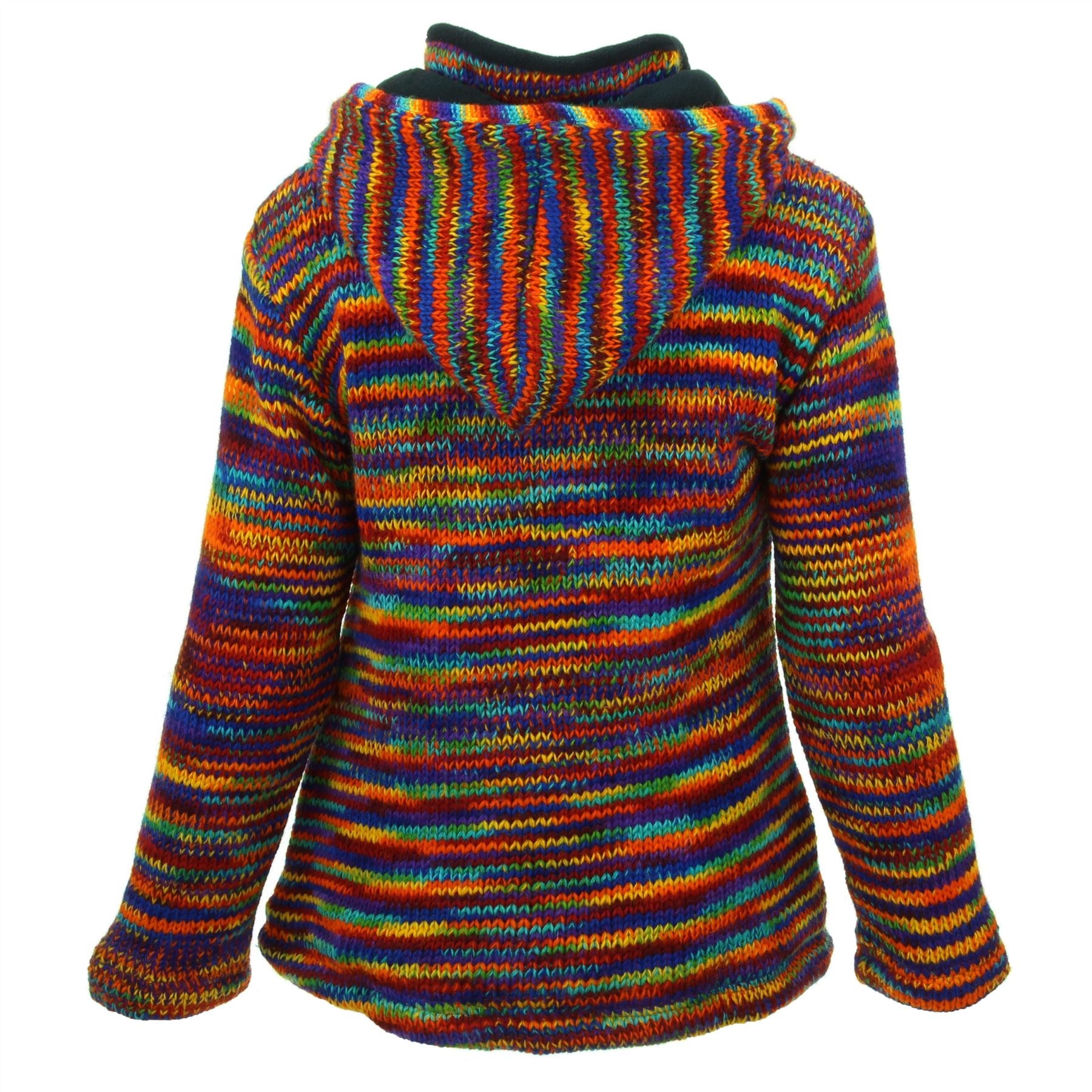 Handmade wool knit hooded zip jacket designed in a ladies fit with flared waist, a warm fleece lining, side pockets, inside pocket, and a removeable zipped hood for a flexible look. A practical hoodie cardigan, great for laying up throughout the colder months and keeping warm around the fire during cool summer evenings.
