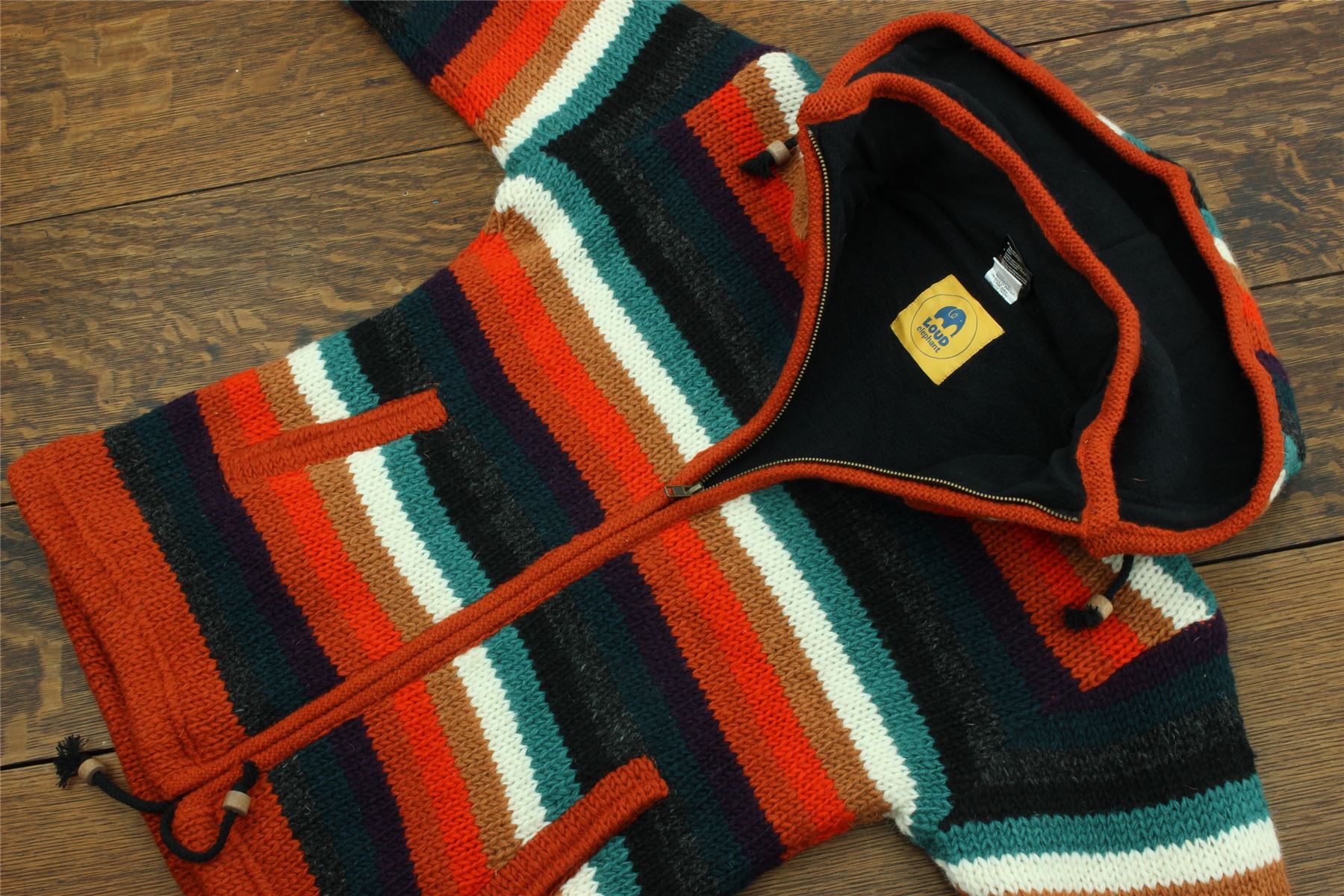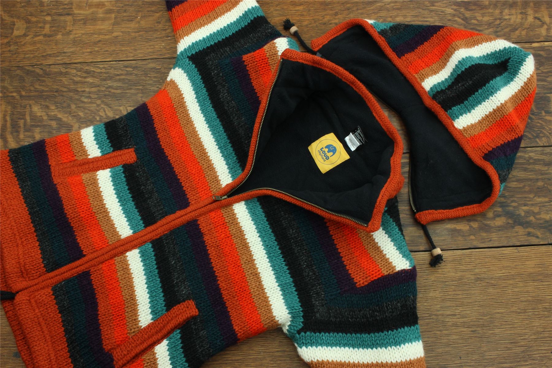 Hand Knitted Wool Hooded Jacket Cardigan Ladies Cut - Stripe Anu