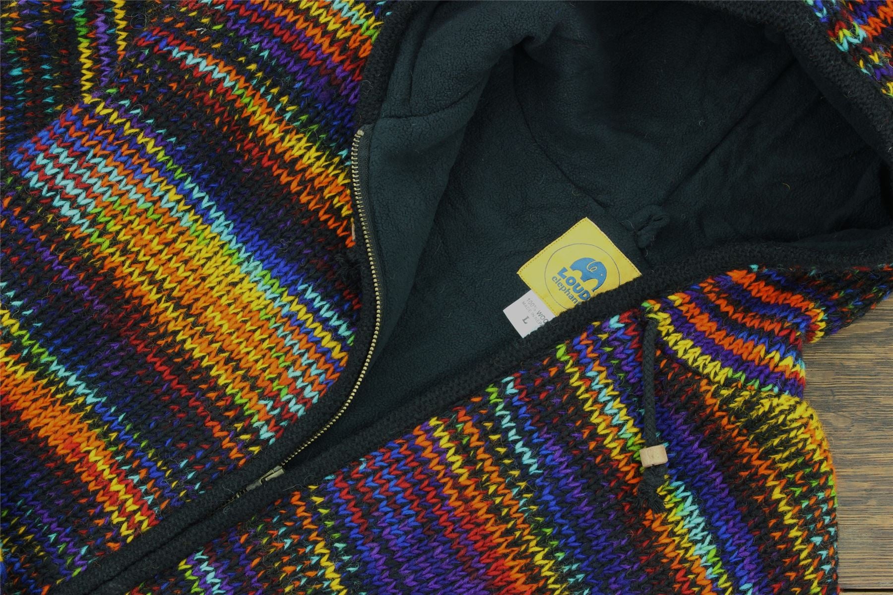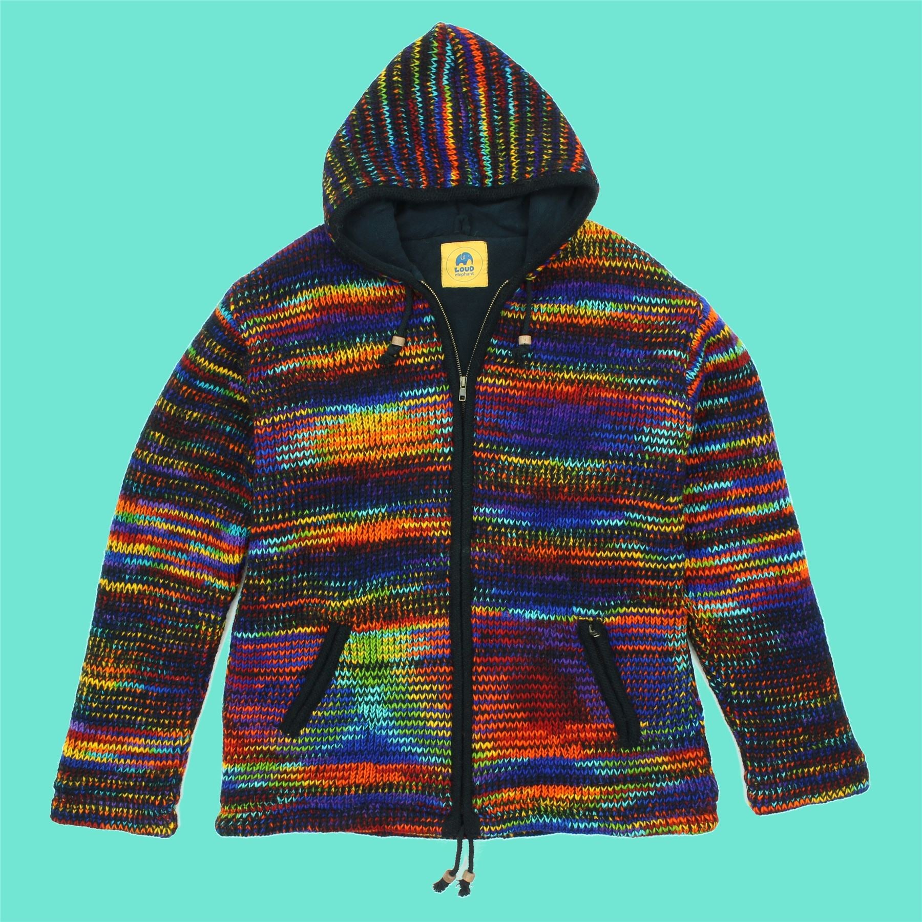 Handmade wool knit hooded zip jacket with a warm fleece lining, zip side pockets, and an inside pocket. A practical hoodie cardigan, great for laying up throughout the colder months and keeping warm around the fire during cool summer evenings.