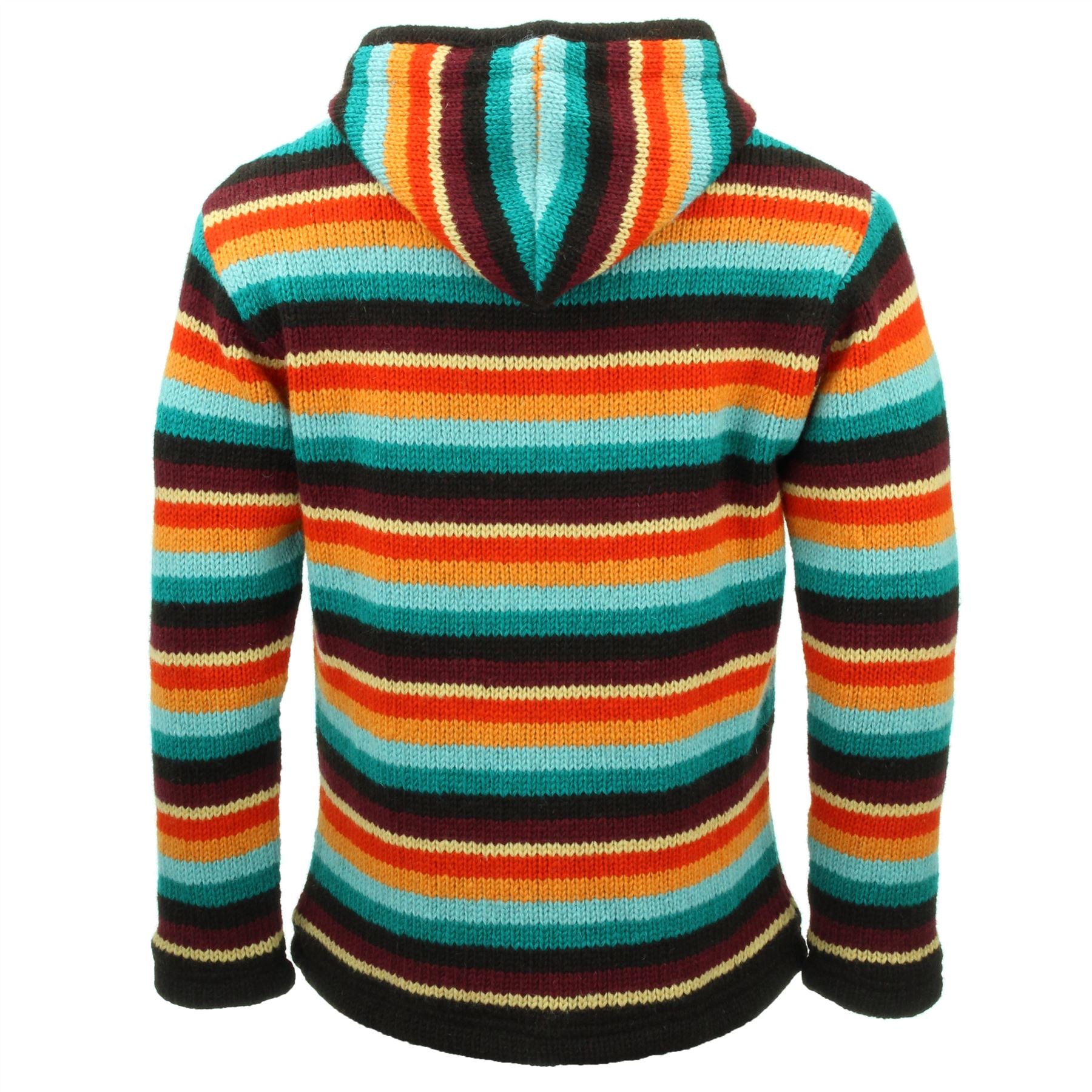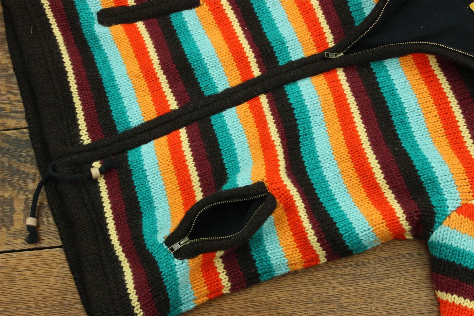 Hand Knitted Wool Hooded Jacket Cardigan - Stripe Retro D