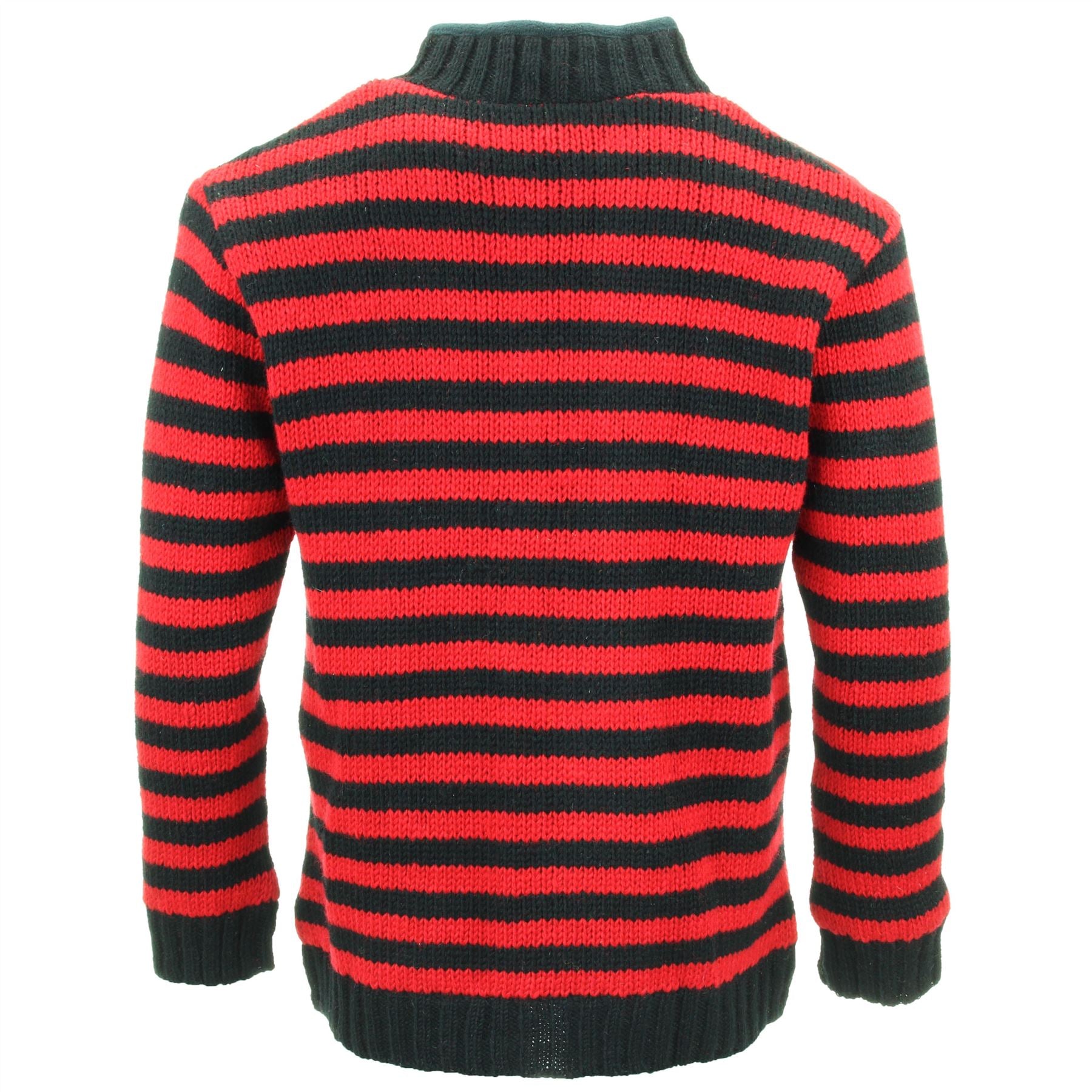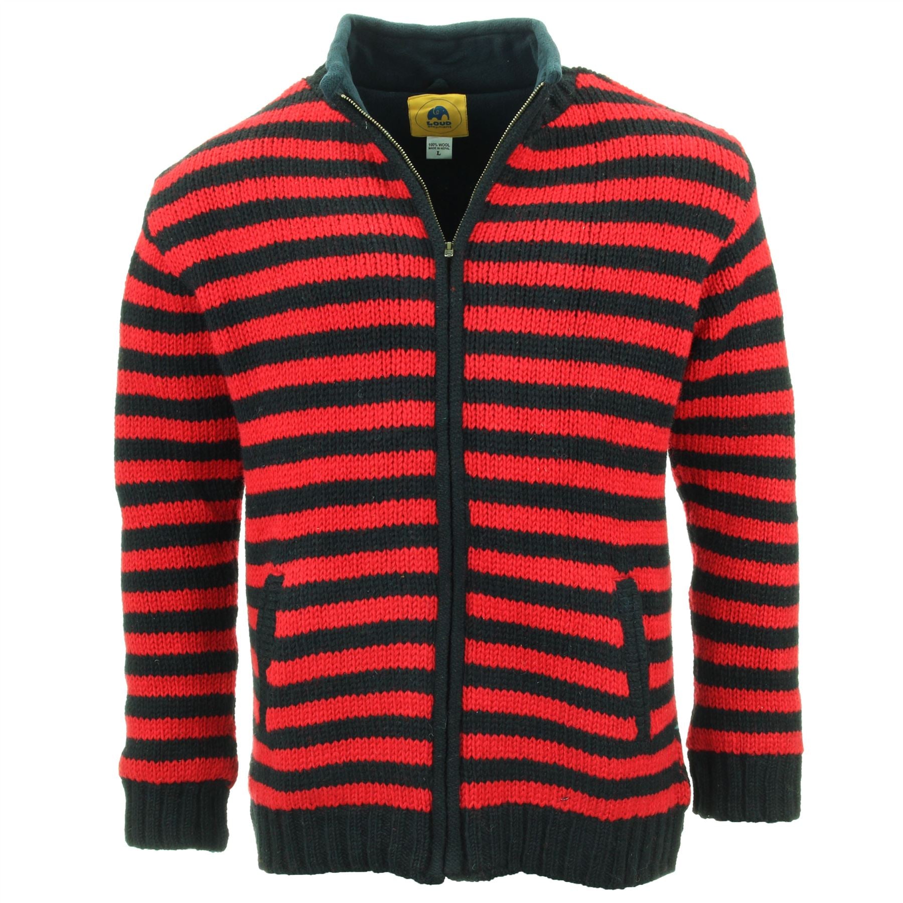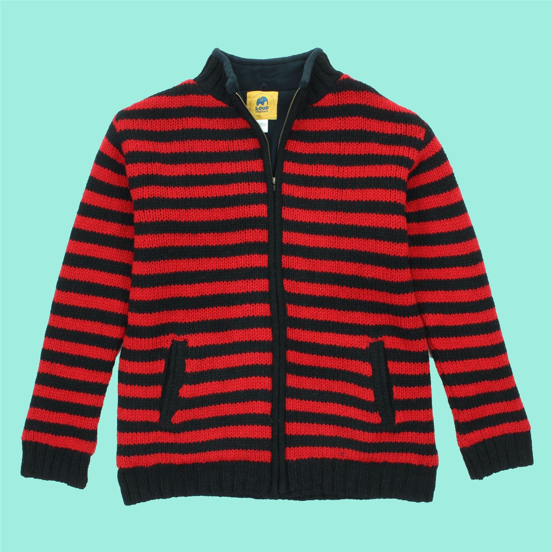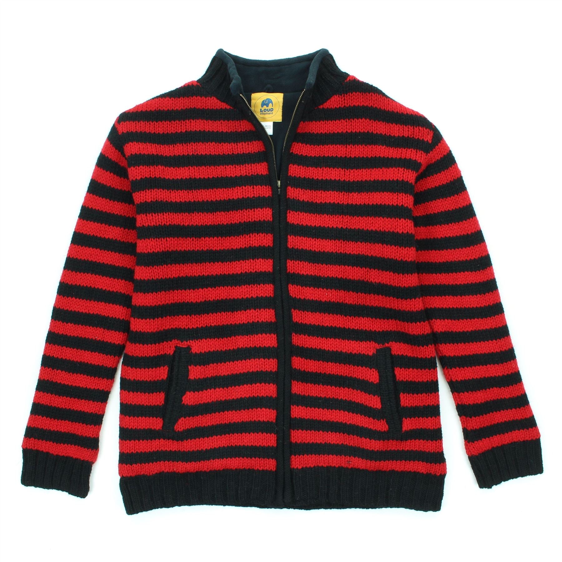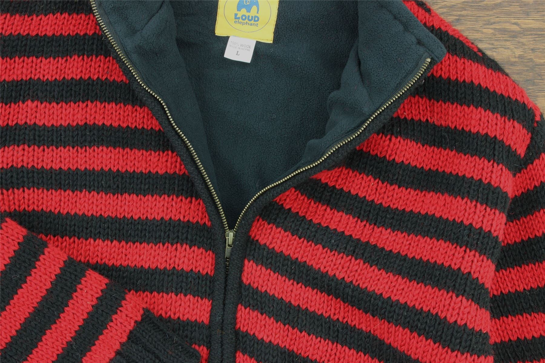 Hand Knitted Wool Jacket Cardigan - Stripe Red Black