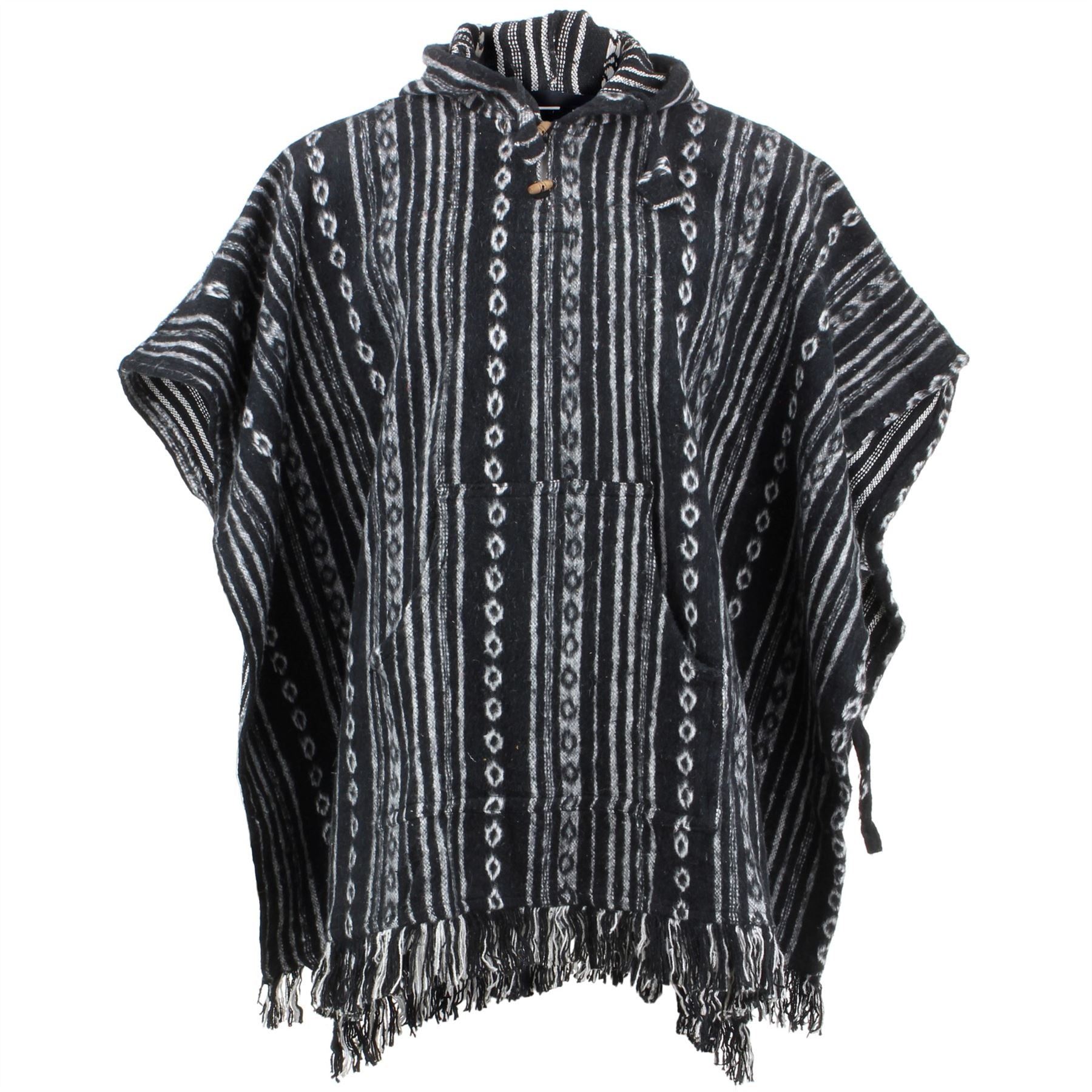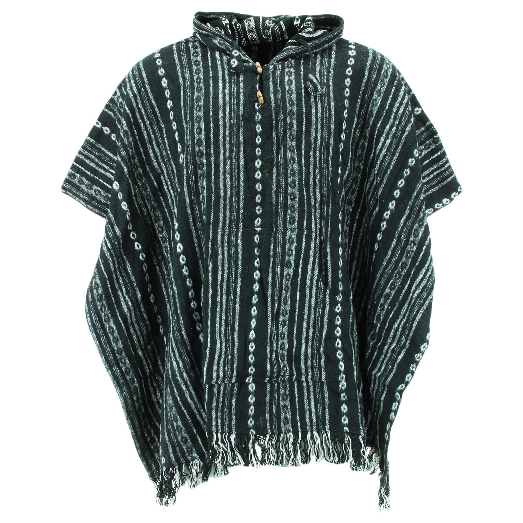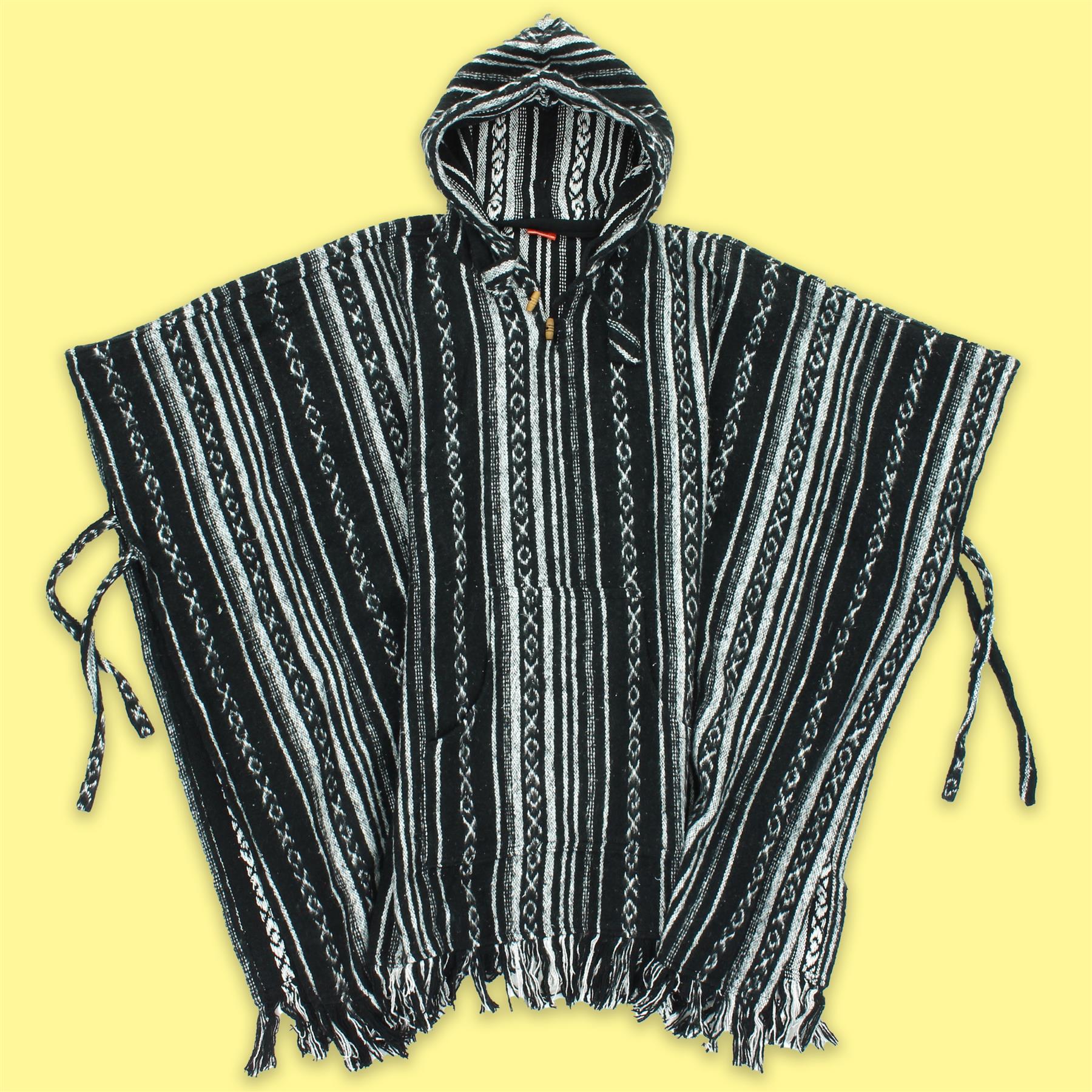 Woven cotton poncho with a soft brushed finish featuring open sides with waist ties on either side.