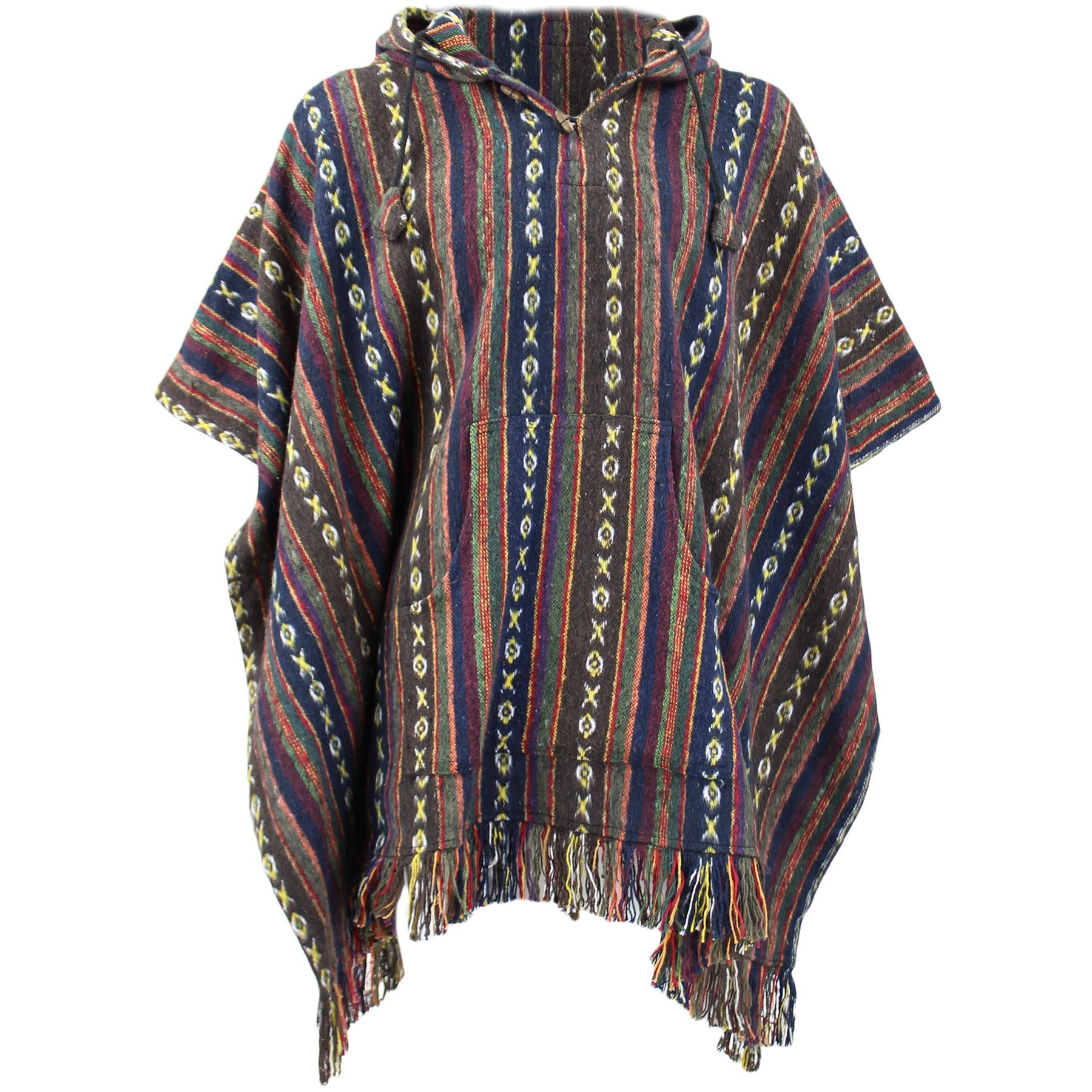 Brushed Cotton Hooded Poncho - Brown