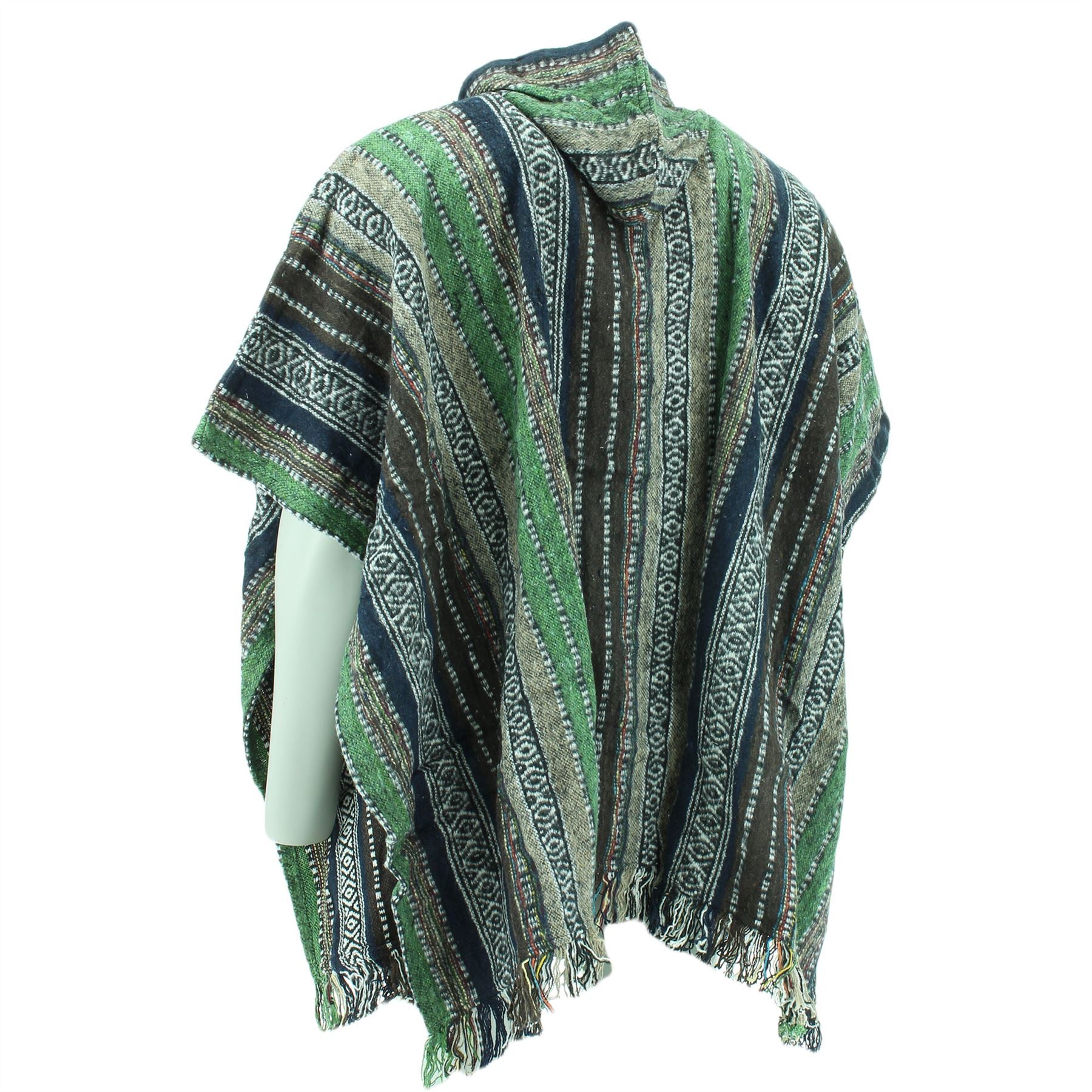 Brushed Cotton Hooded Poncho - Green