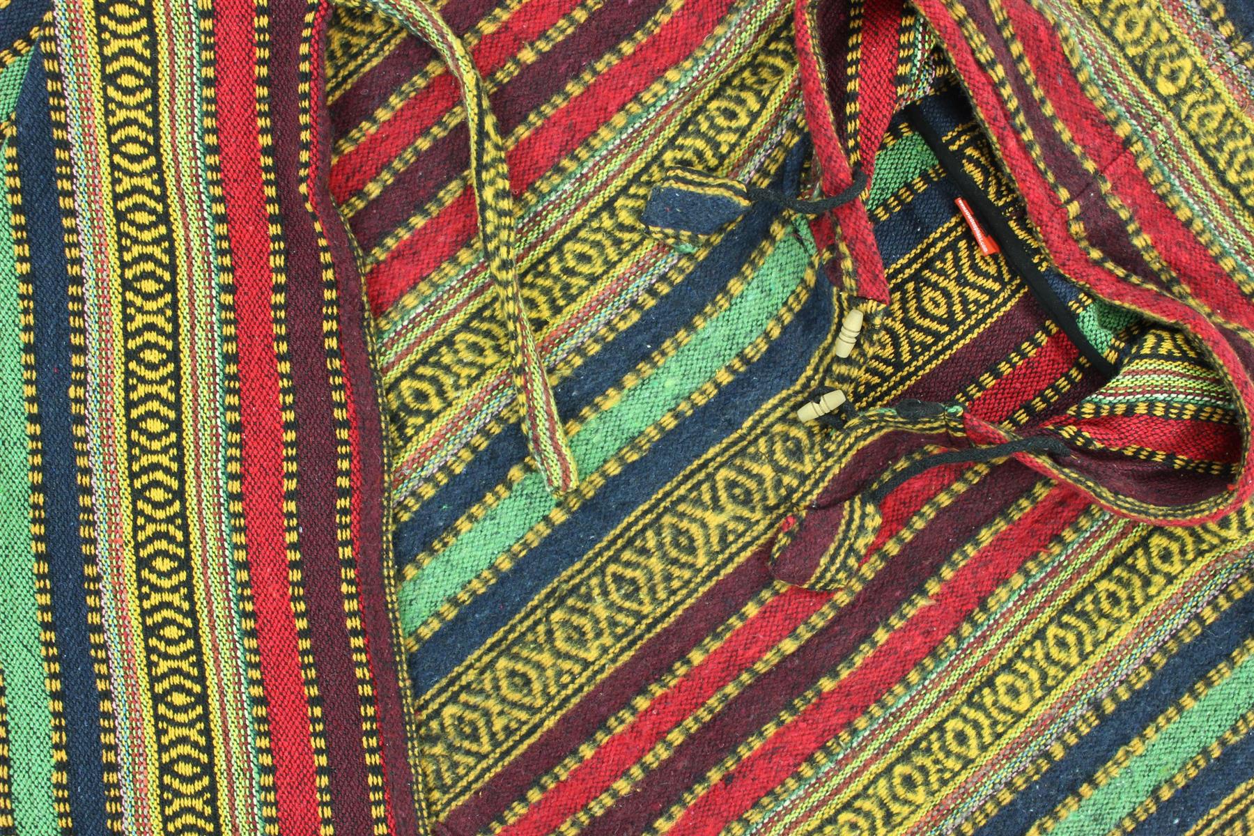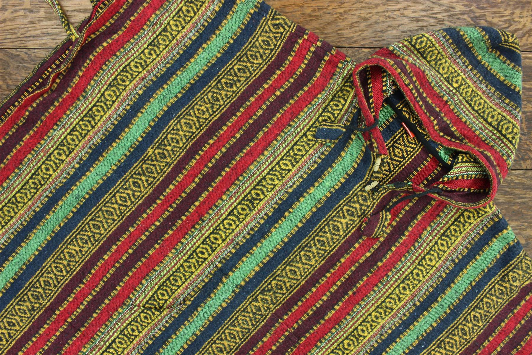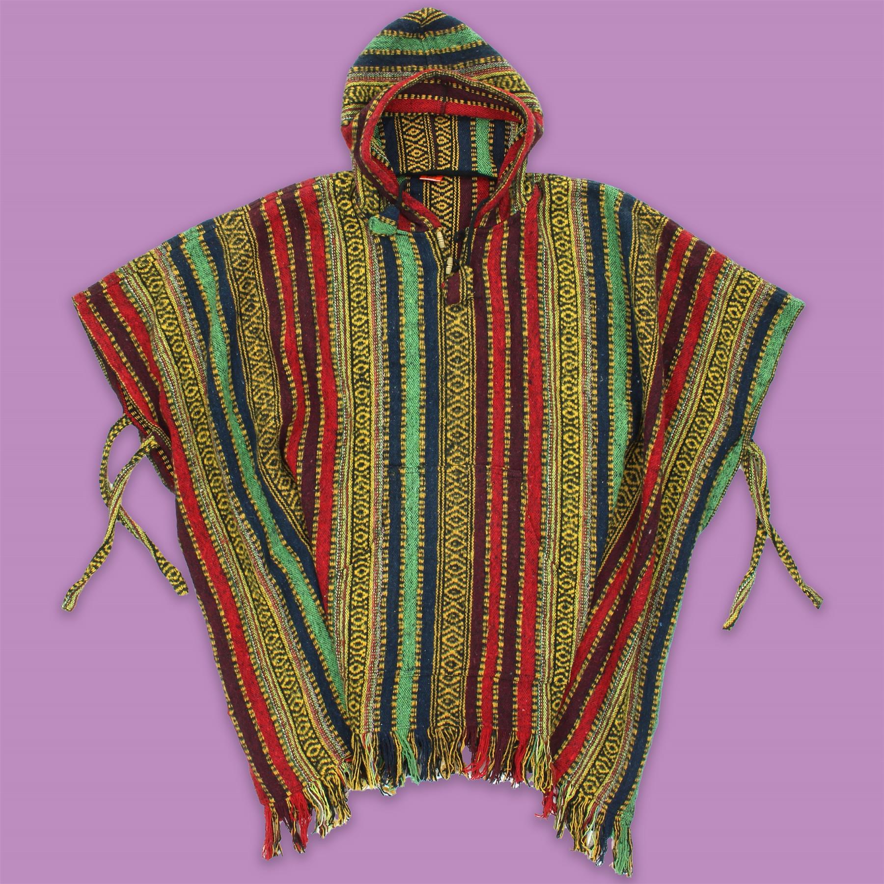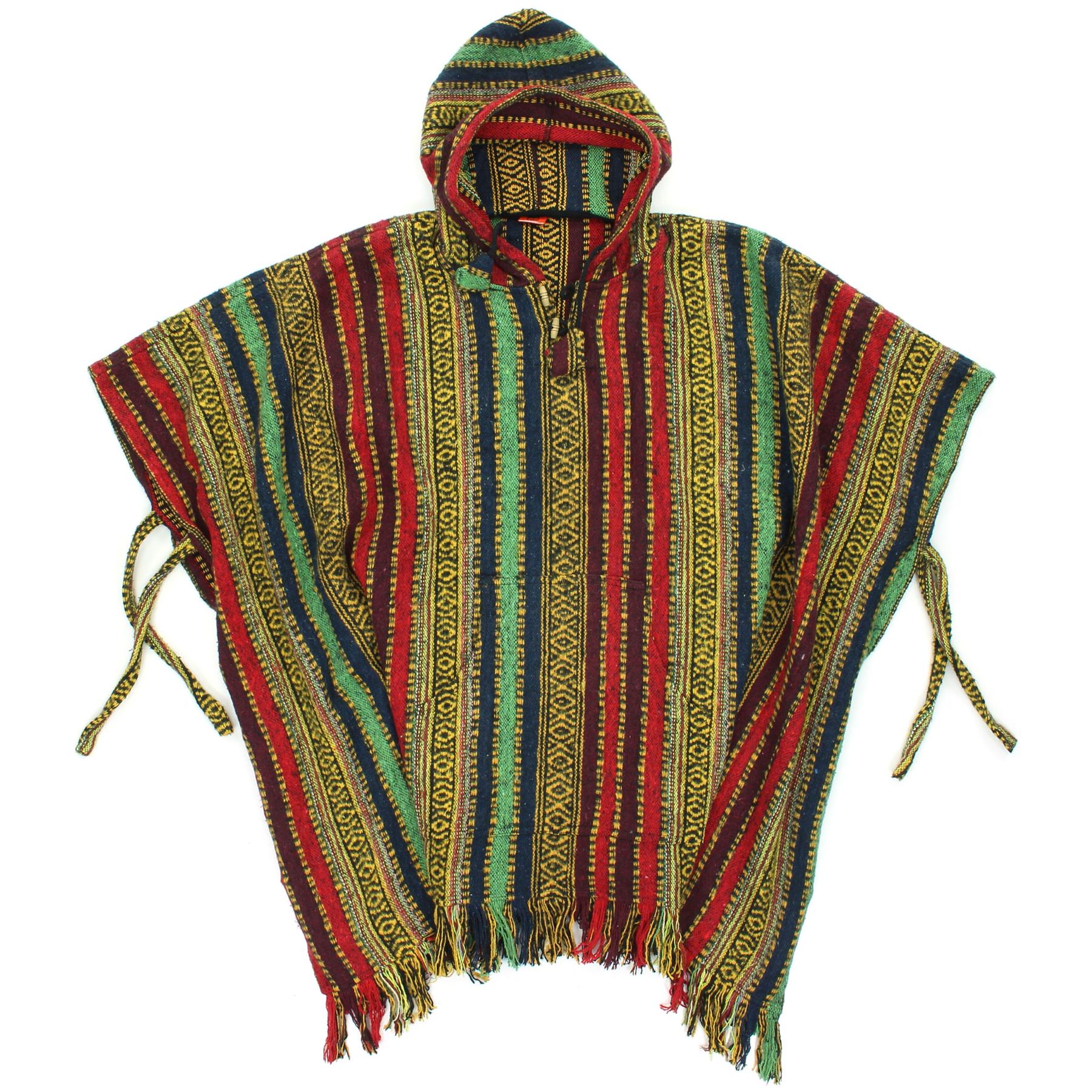 Brushed Cotton Hooded Poncho - Red Green