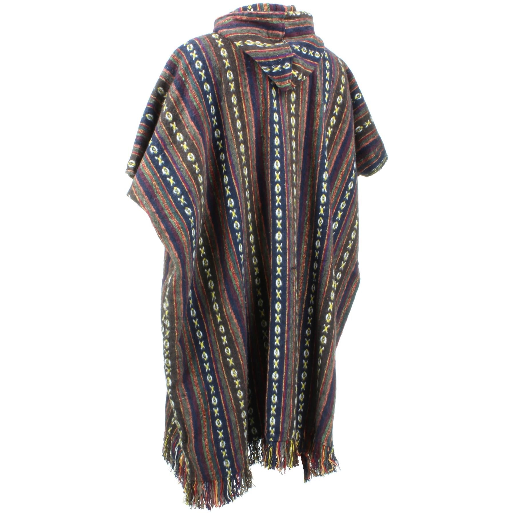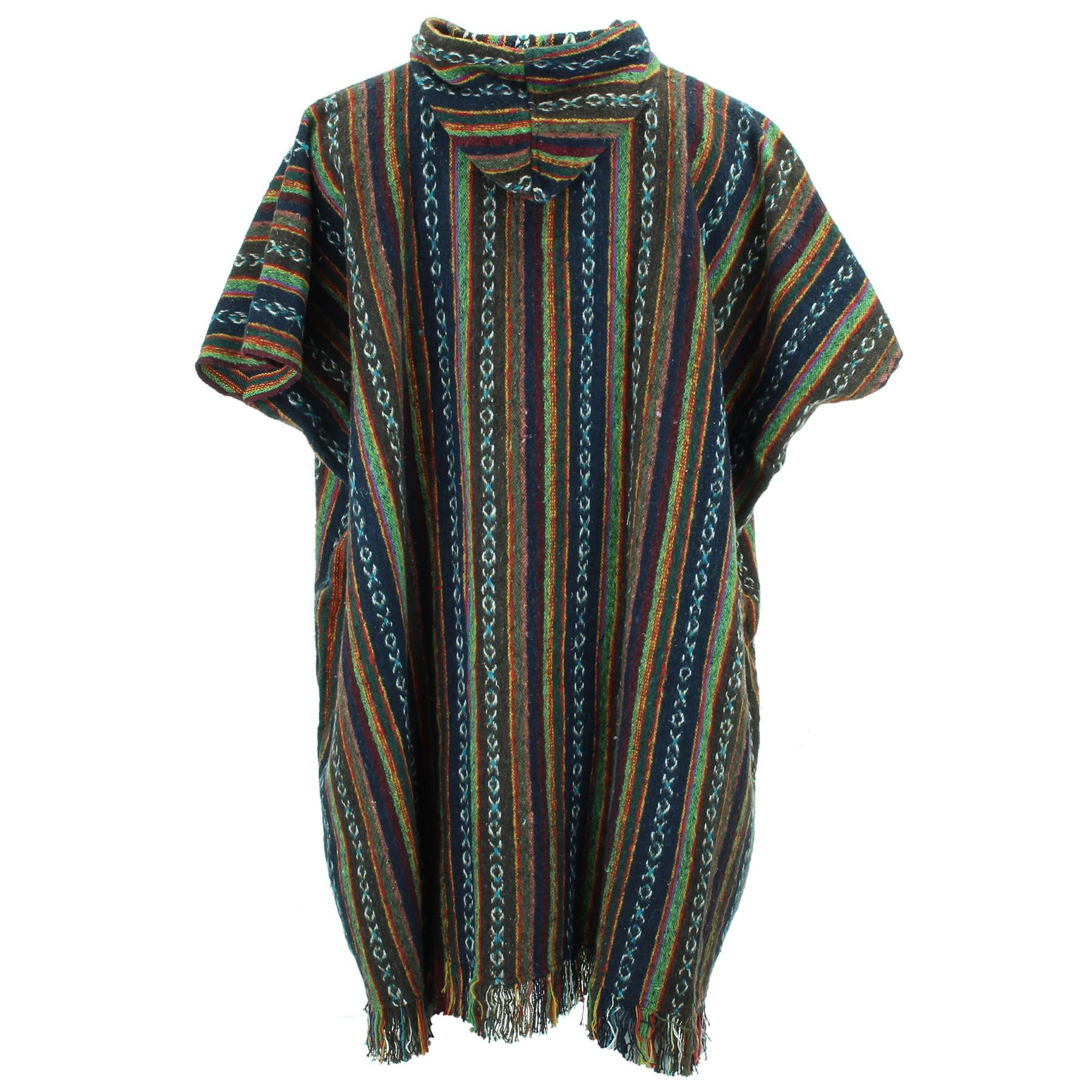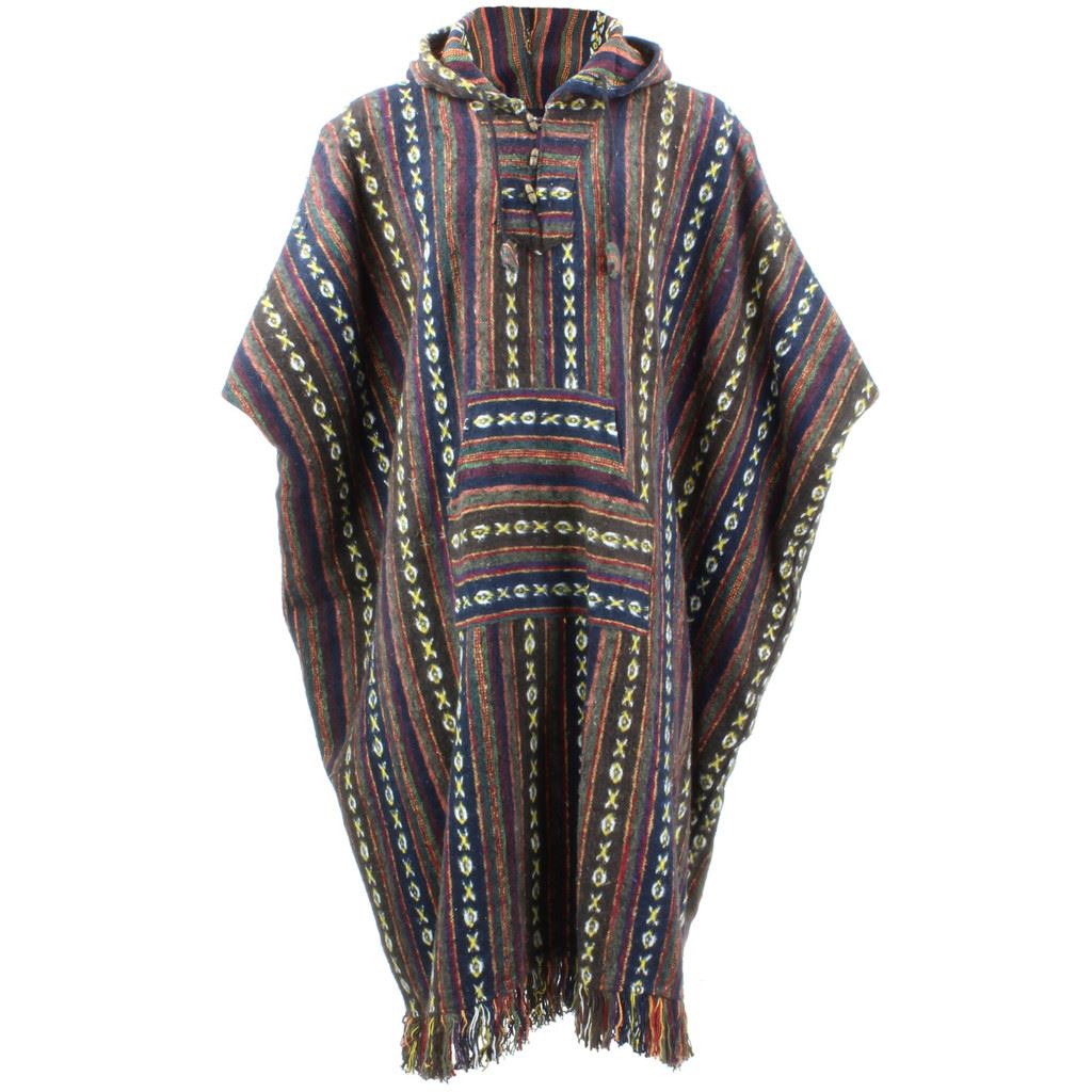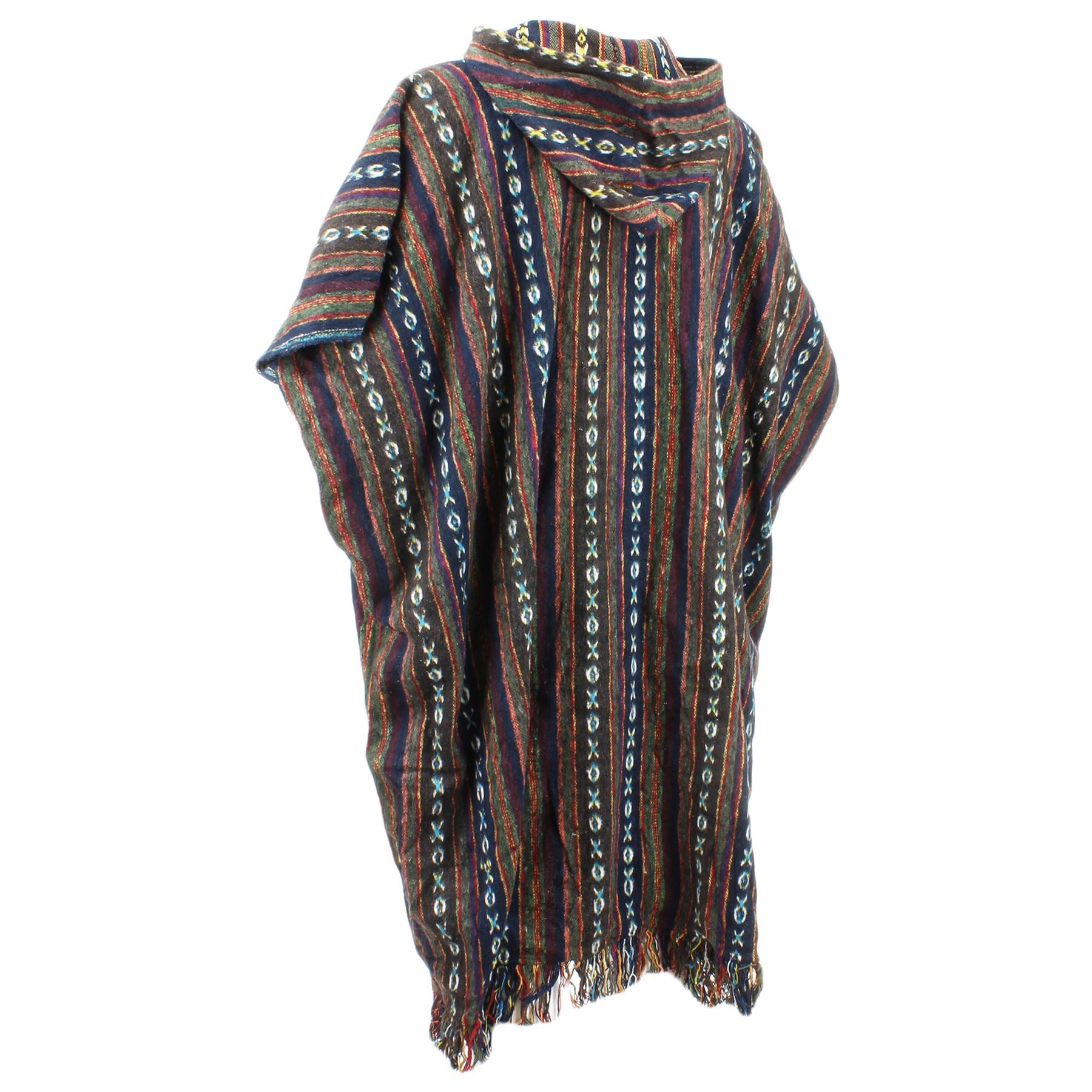 Long woven cotton poncho with a soft brushed finish, featuring holes for your arms and enclosed down the sides for extra warmth.