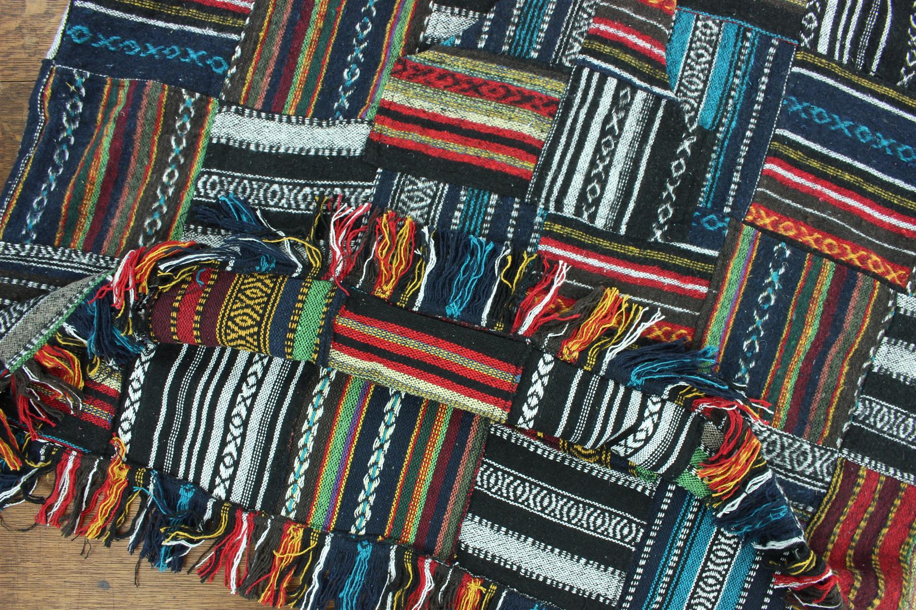Brushed Cotton Long Hooded Poncho - Patchwork