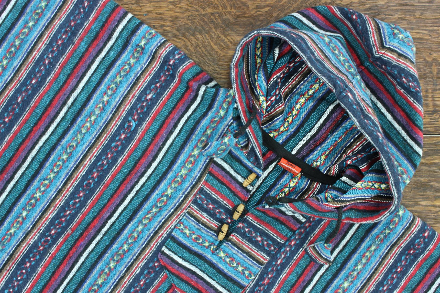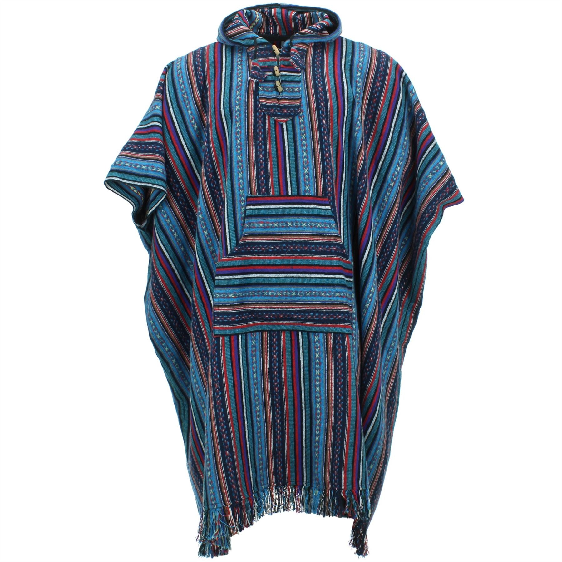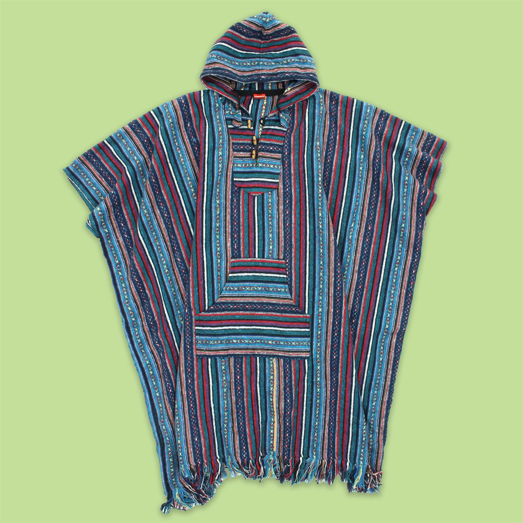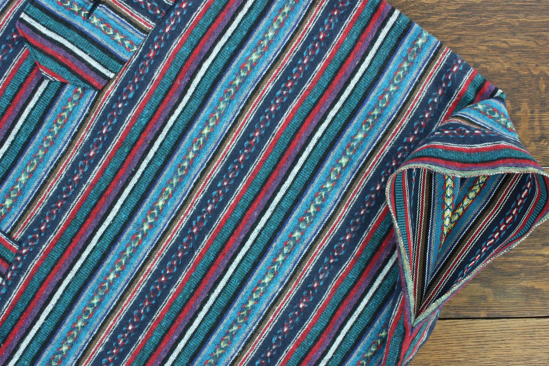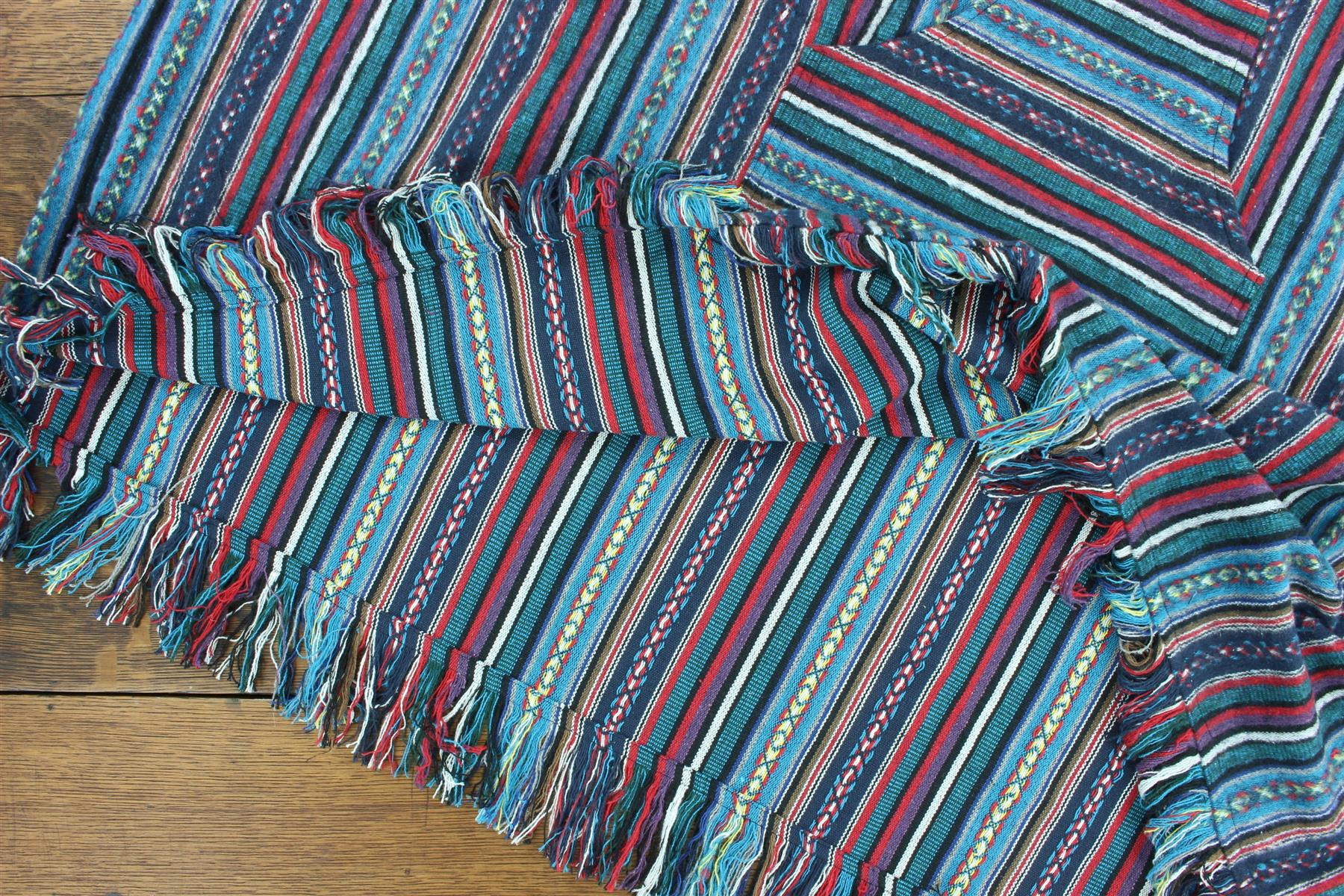 Long woven cotton poncho with a soft brushed finish, featuring holes for your arms and enclosed down the sides for extra warmth.