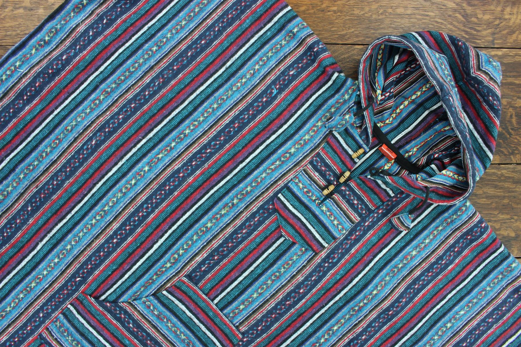 Brushed Cotton Long Hooded Poncho - Purple Sky