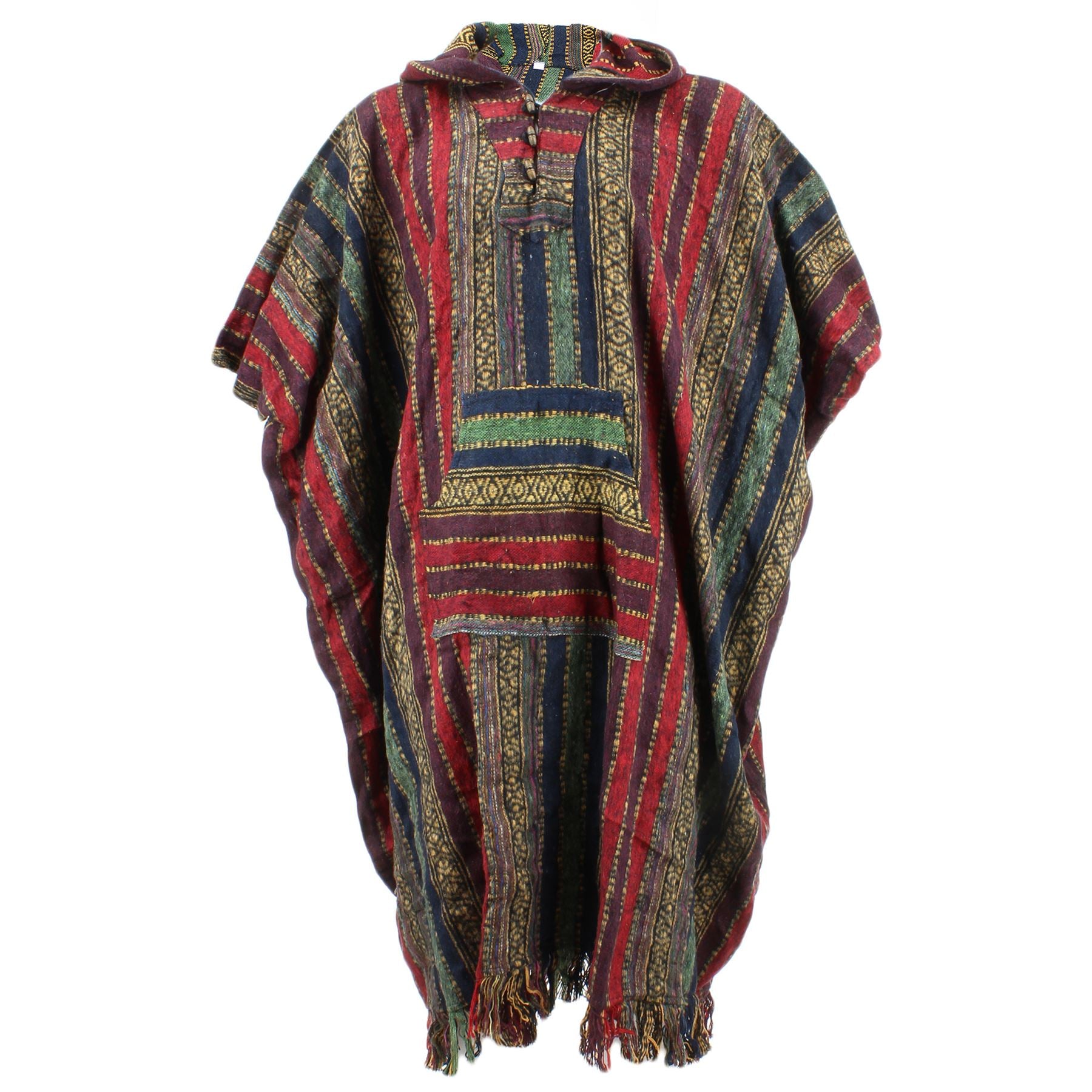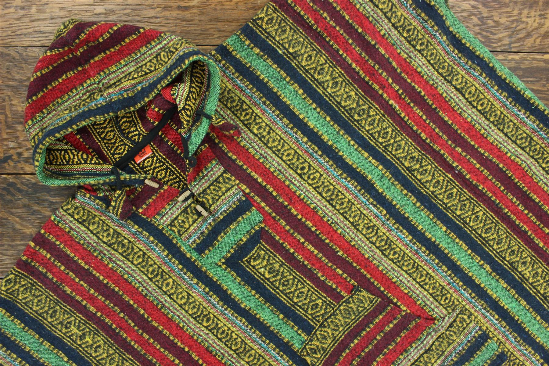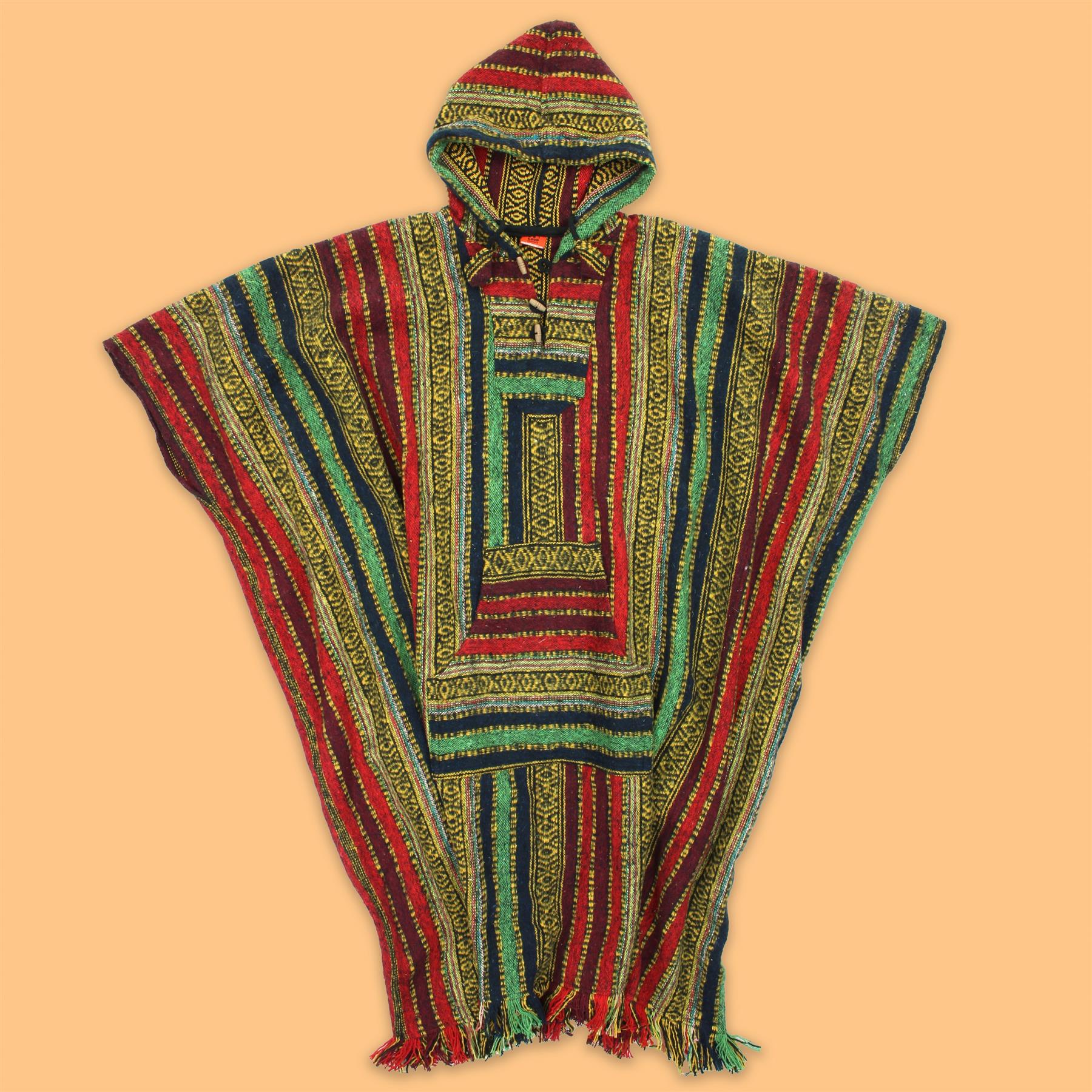 Long woven cotton poncho with a soft brushed finish, featuring holes for your arms and enclosed down the sides for extra warmth.