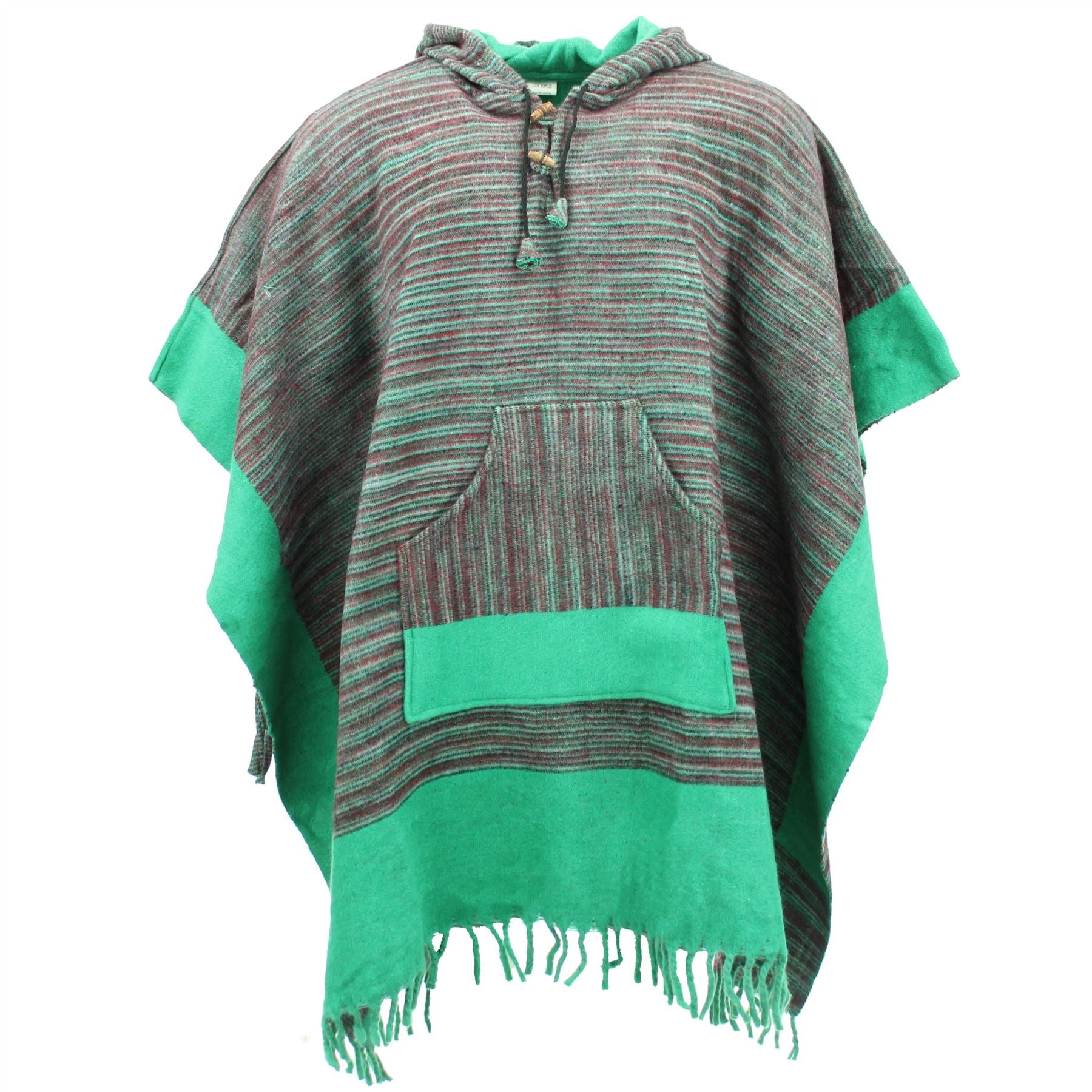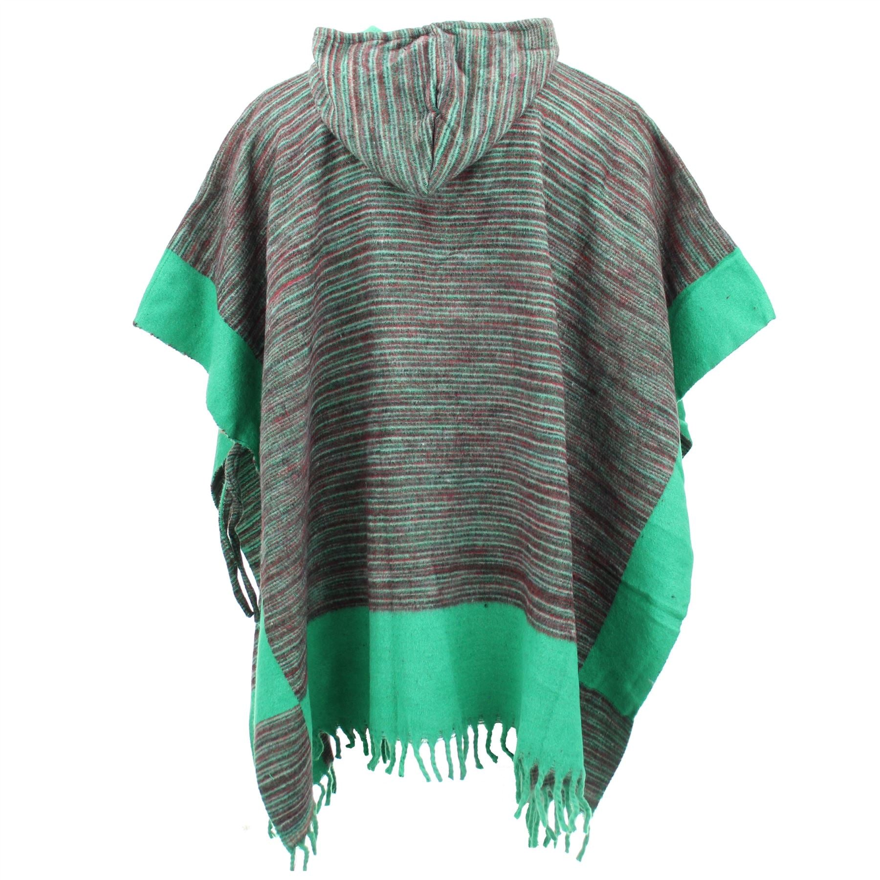 Soft Vegan Wool Hooded Tibet Poncho - Red Grey & Light Green