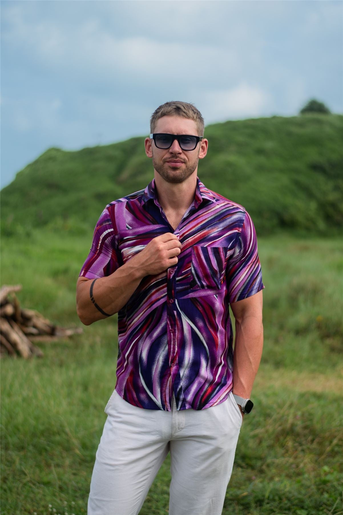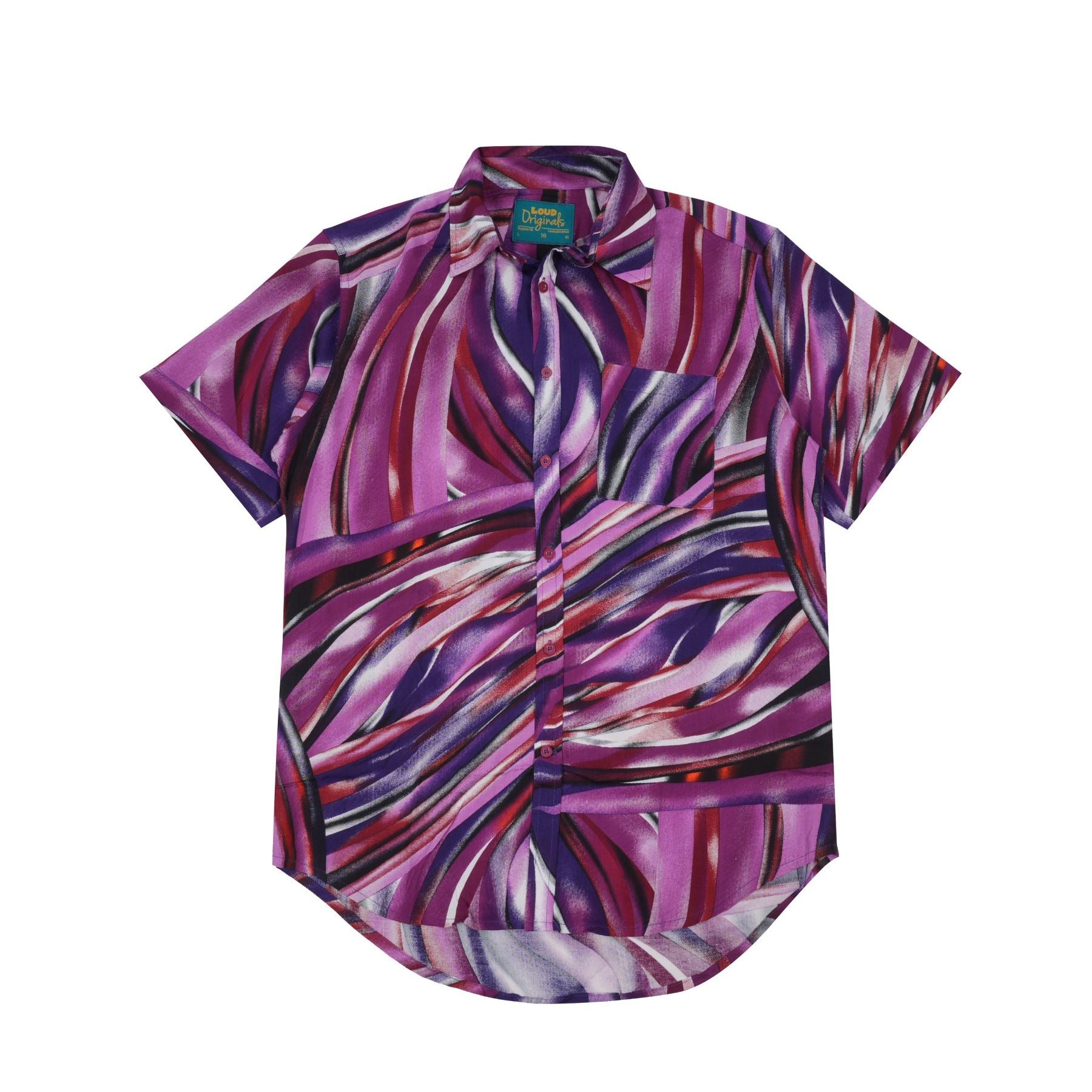 Men's regular fit casual dress shirt with short sleeves, classic collar, chest pocket and curved hem.