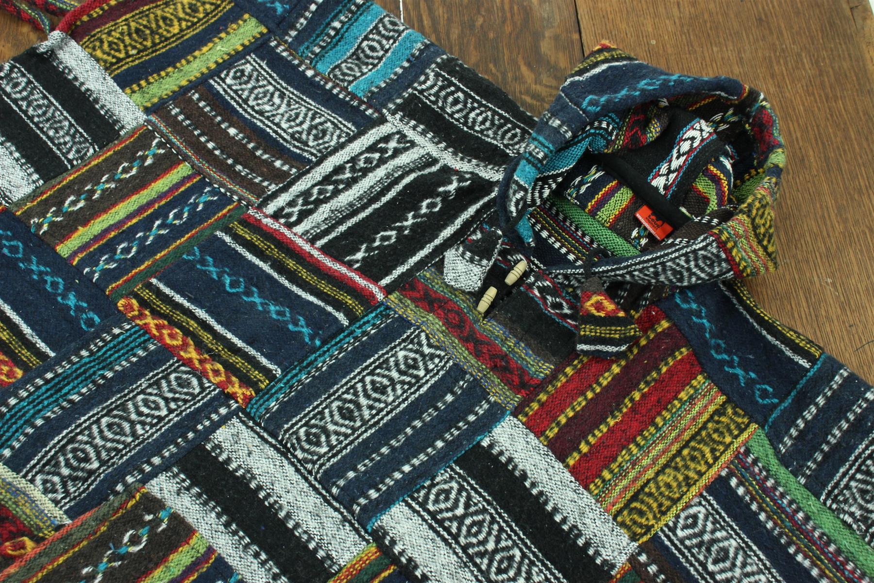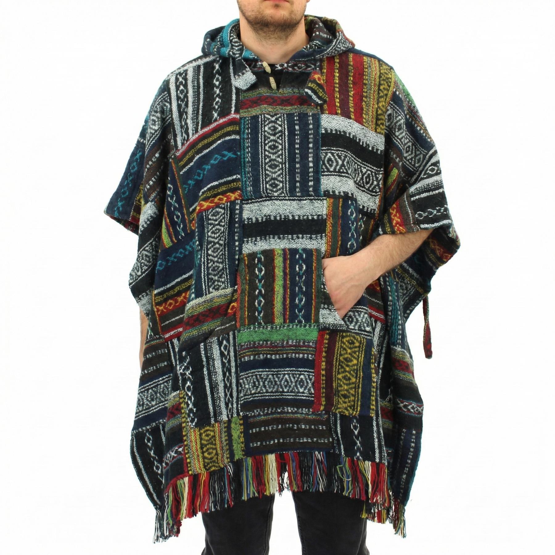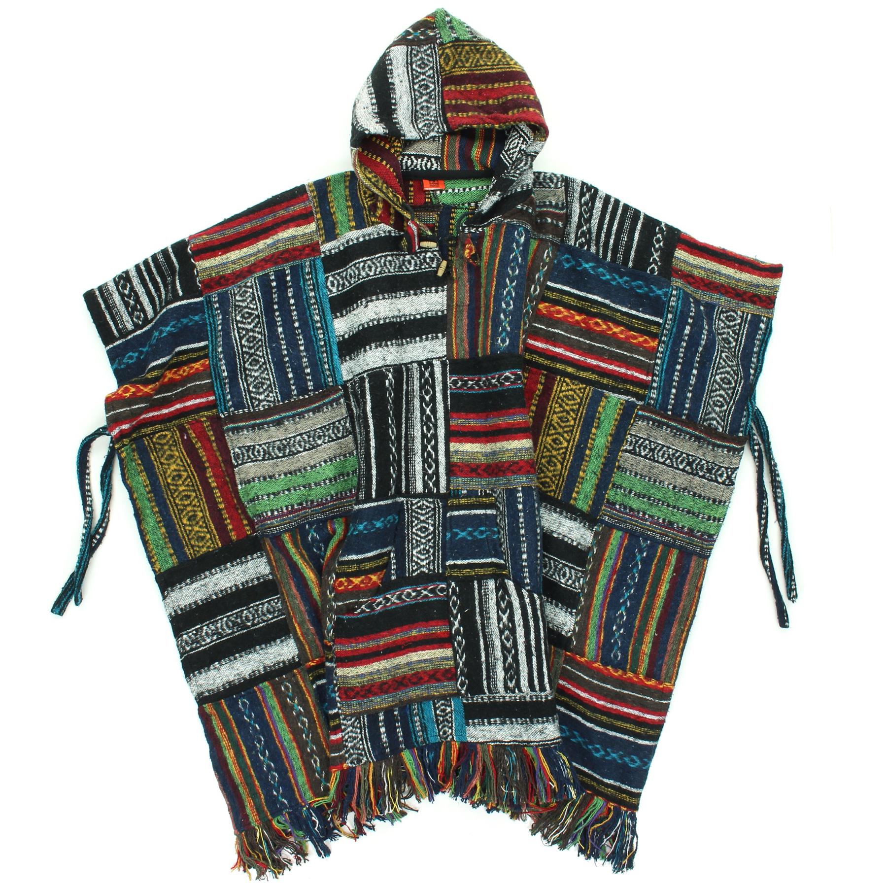 Brushed Cotton Hooded Poncho - Patchwork