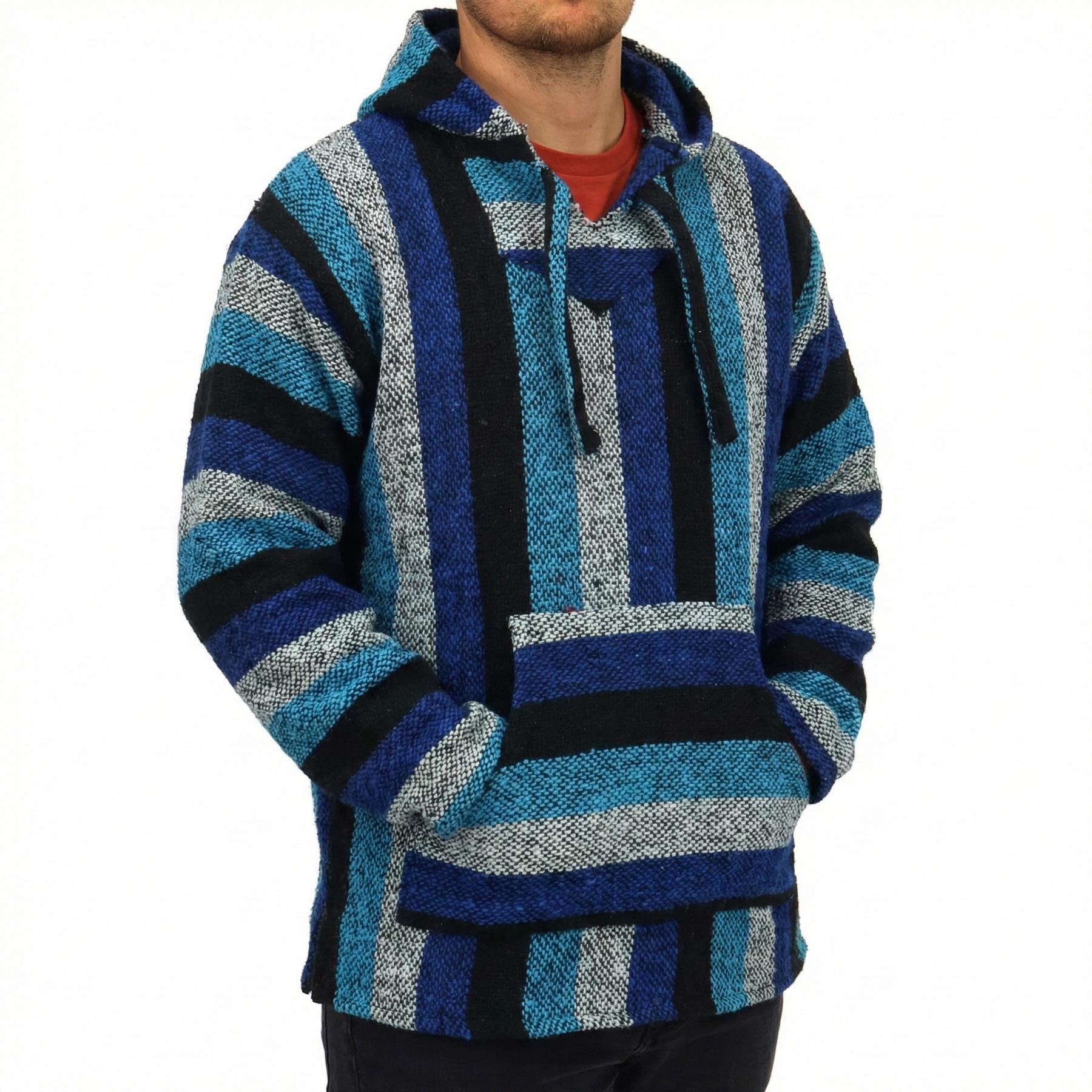 Recycled Mexican Baja Jerga Hoody - Blue Mix