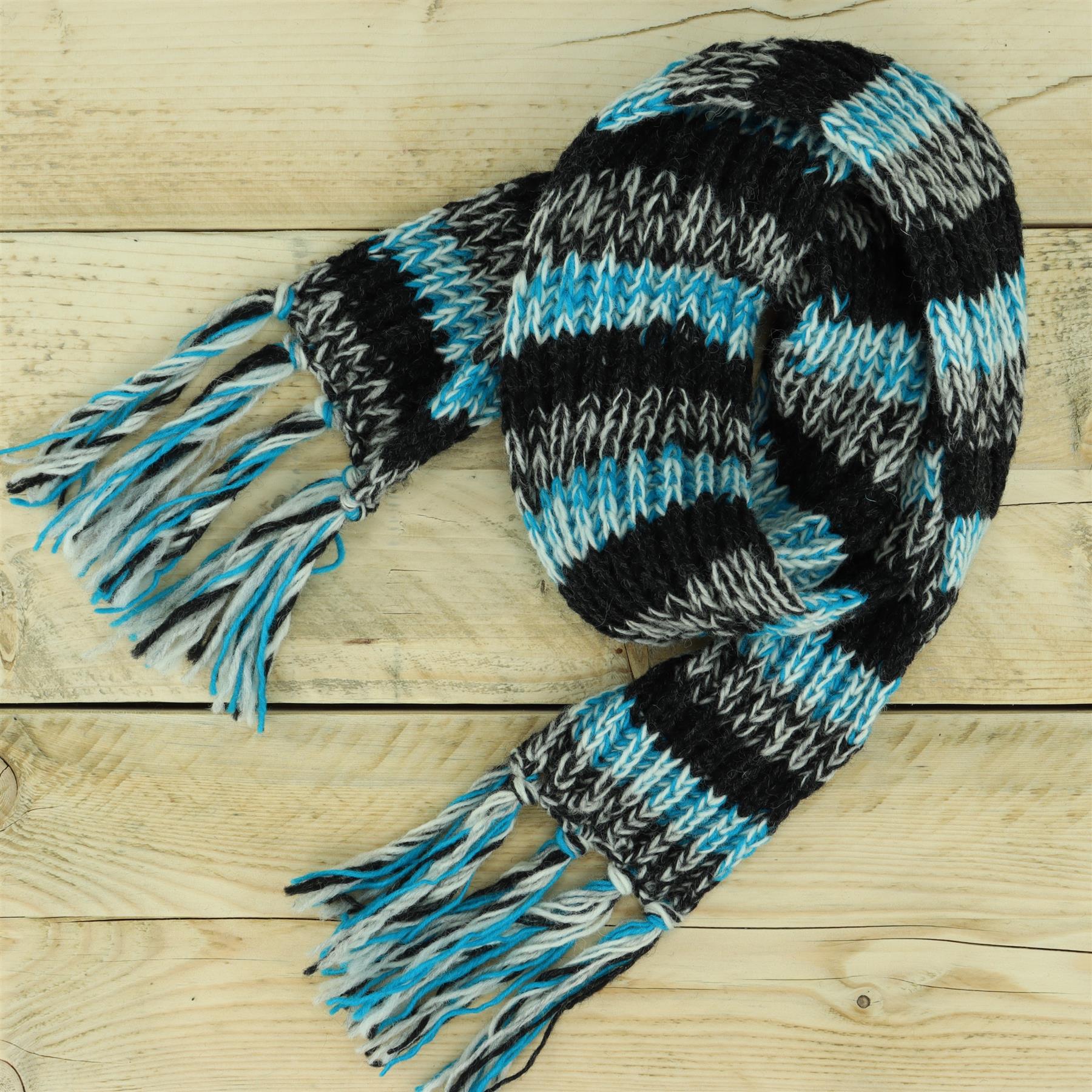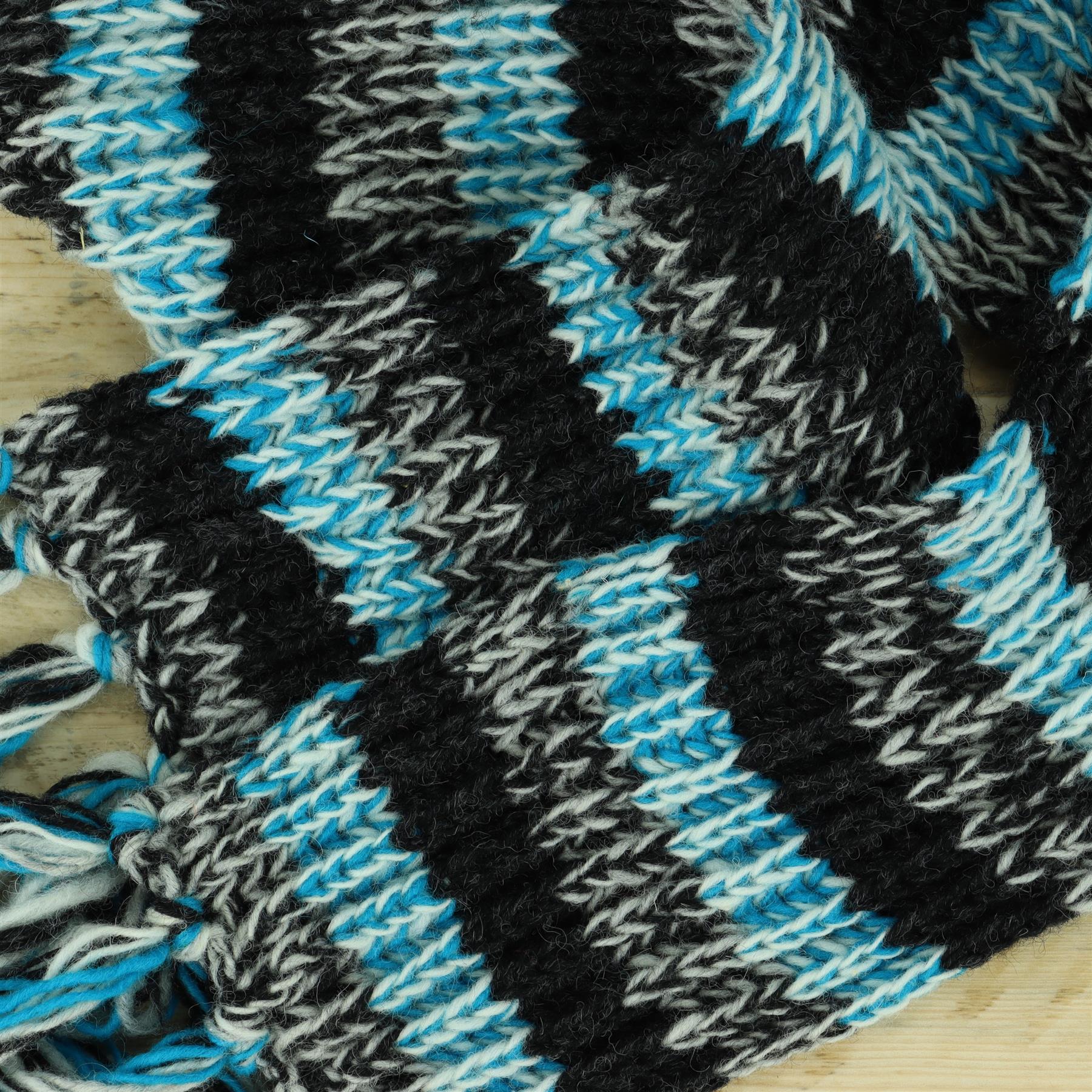 Hand Knitted Wool Scarf - SD Light Blue Charcoal