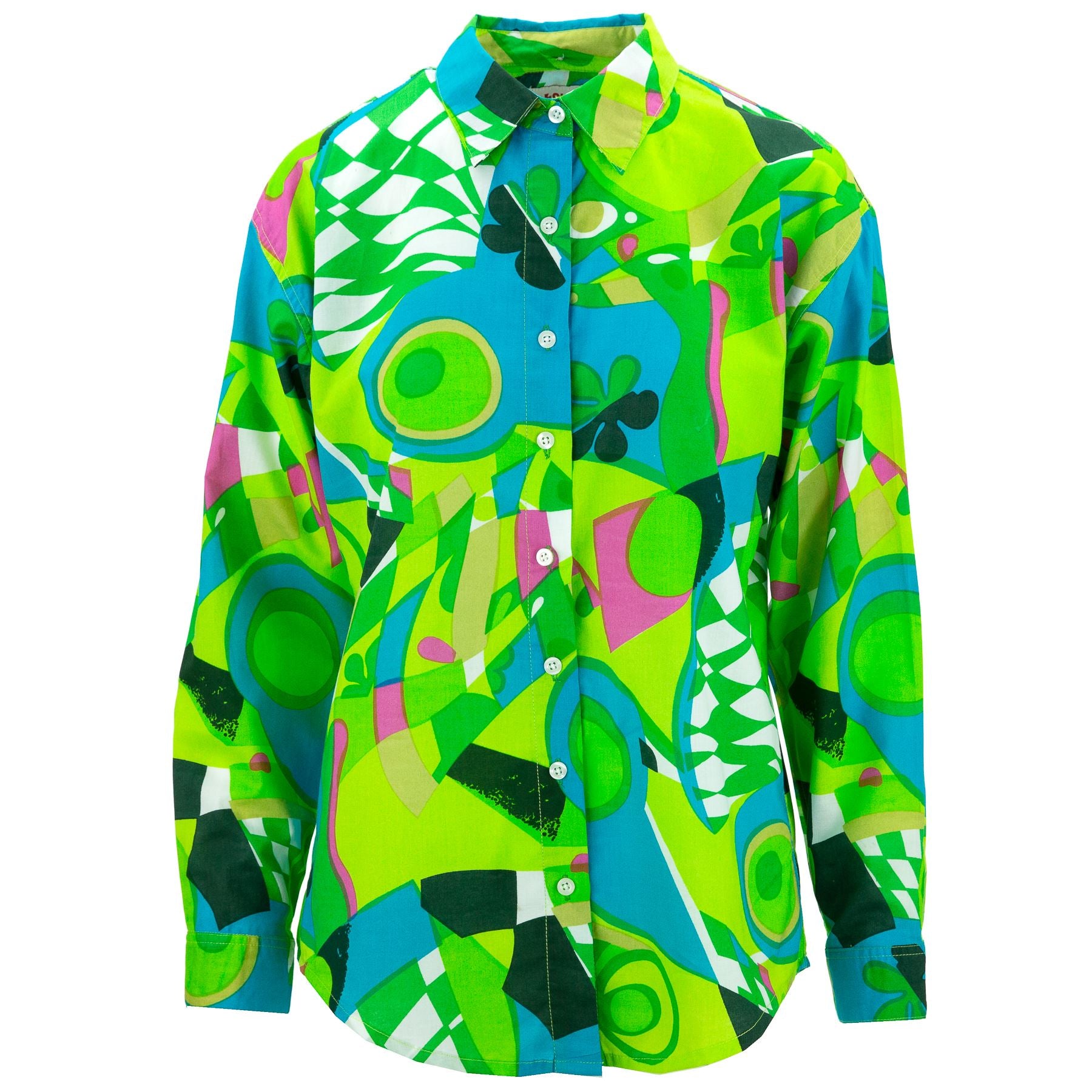 Our womens shirt has a buttoned front and cuffs with soft darts at the waist. One button at centre back of the collar. Can be worn loose or tucked in - a real head turner in vibrant prints.